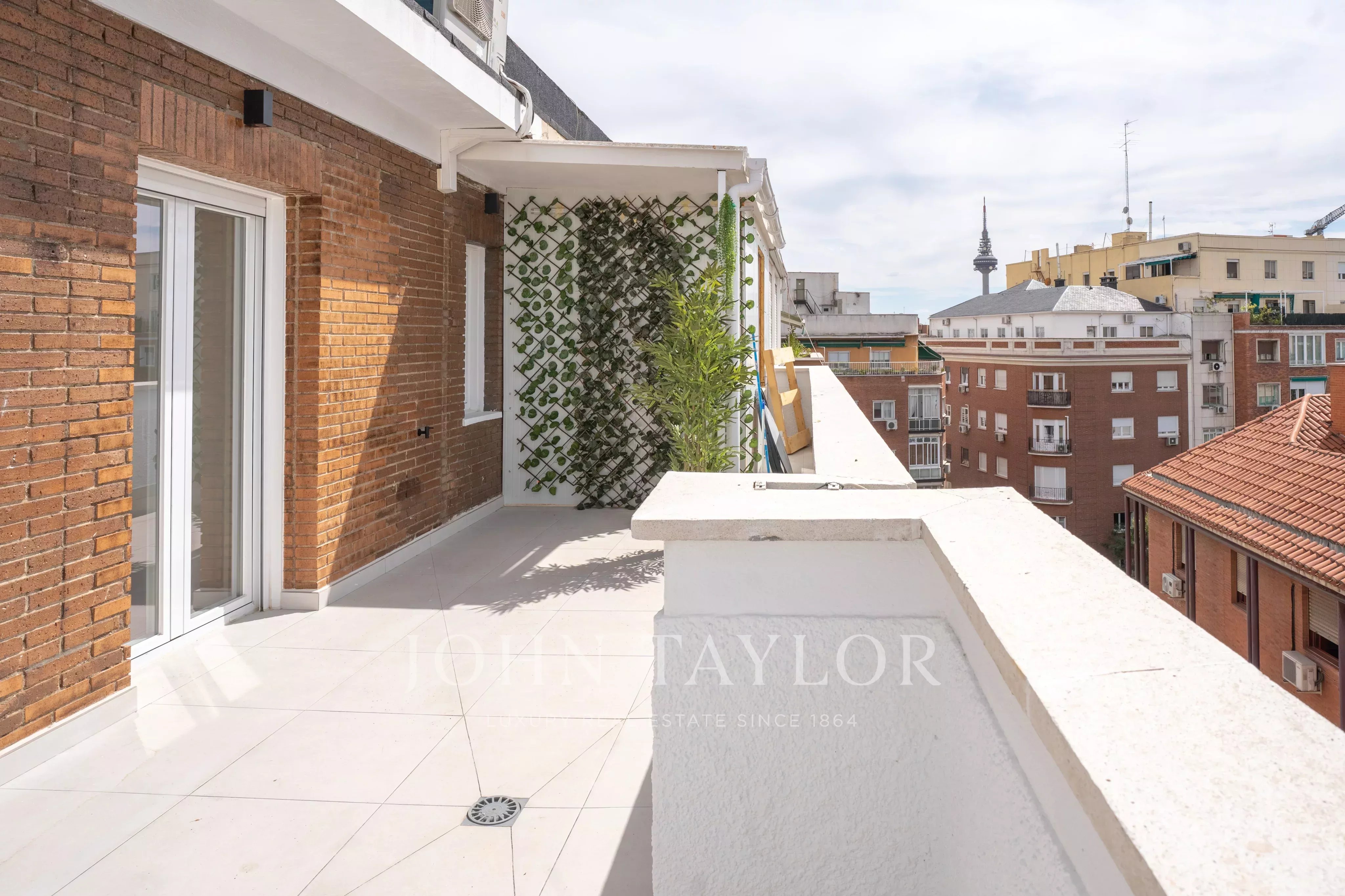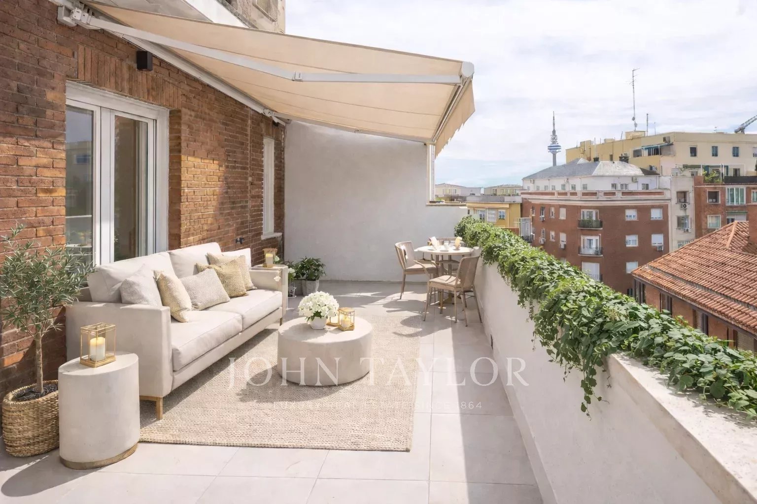La propriété dispose d'une spectaculaire terrasse privée de 28 m², orientée sud-ouest, qui garantit une excellente lumière naturelle tout au long de la journée et d'agréables vues ouvertes sur la ville de Madrid, ce qui en fait un authentique espace de plaisir et de tranquillité.