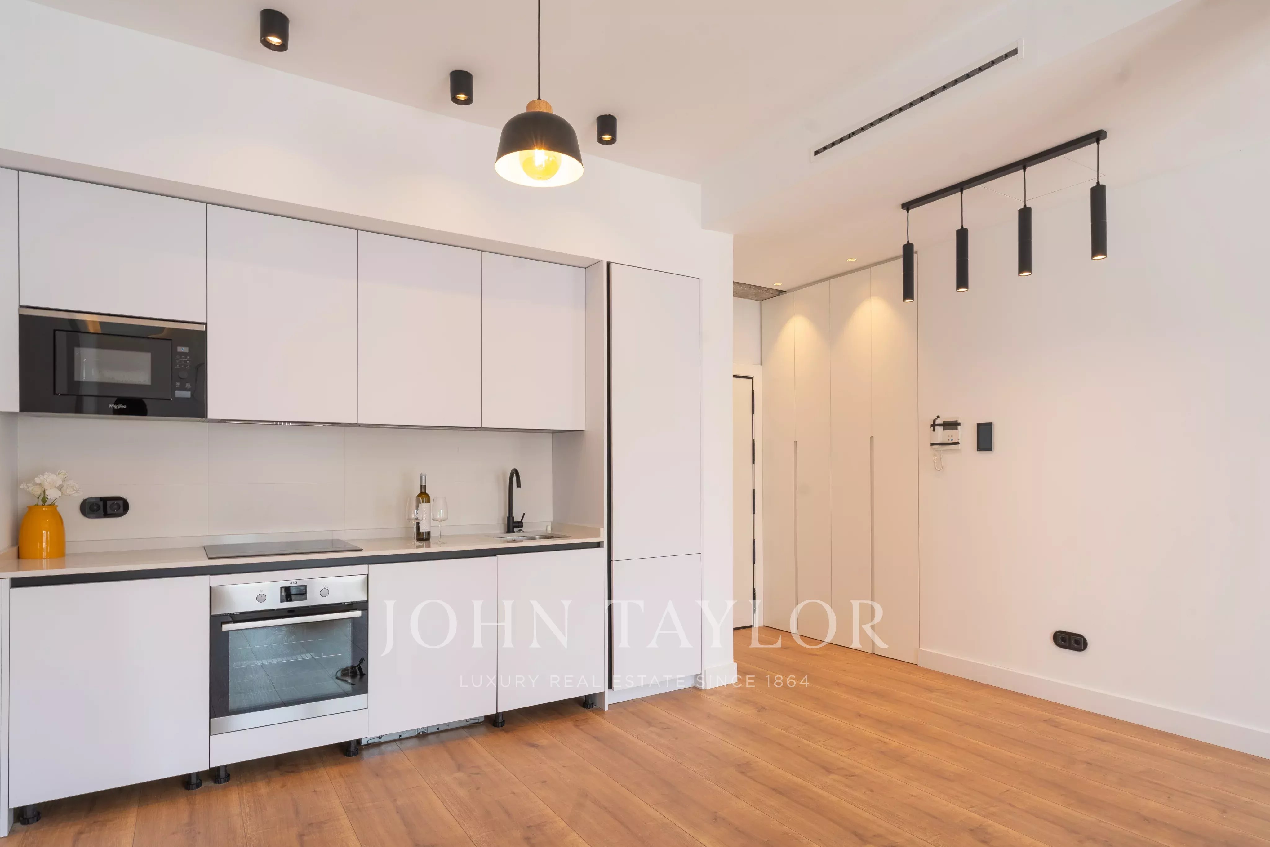 Situé dans un immeuble représentatif avec un hall d'entrée majestueux, un portier et deux ascenseurs, qui offrent un niveau élevé de confort et de sécurité.