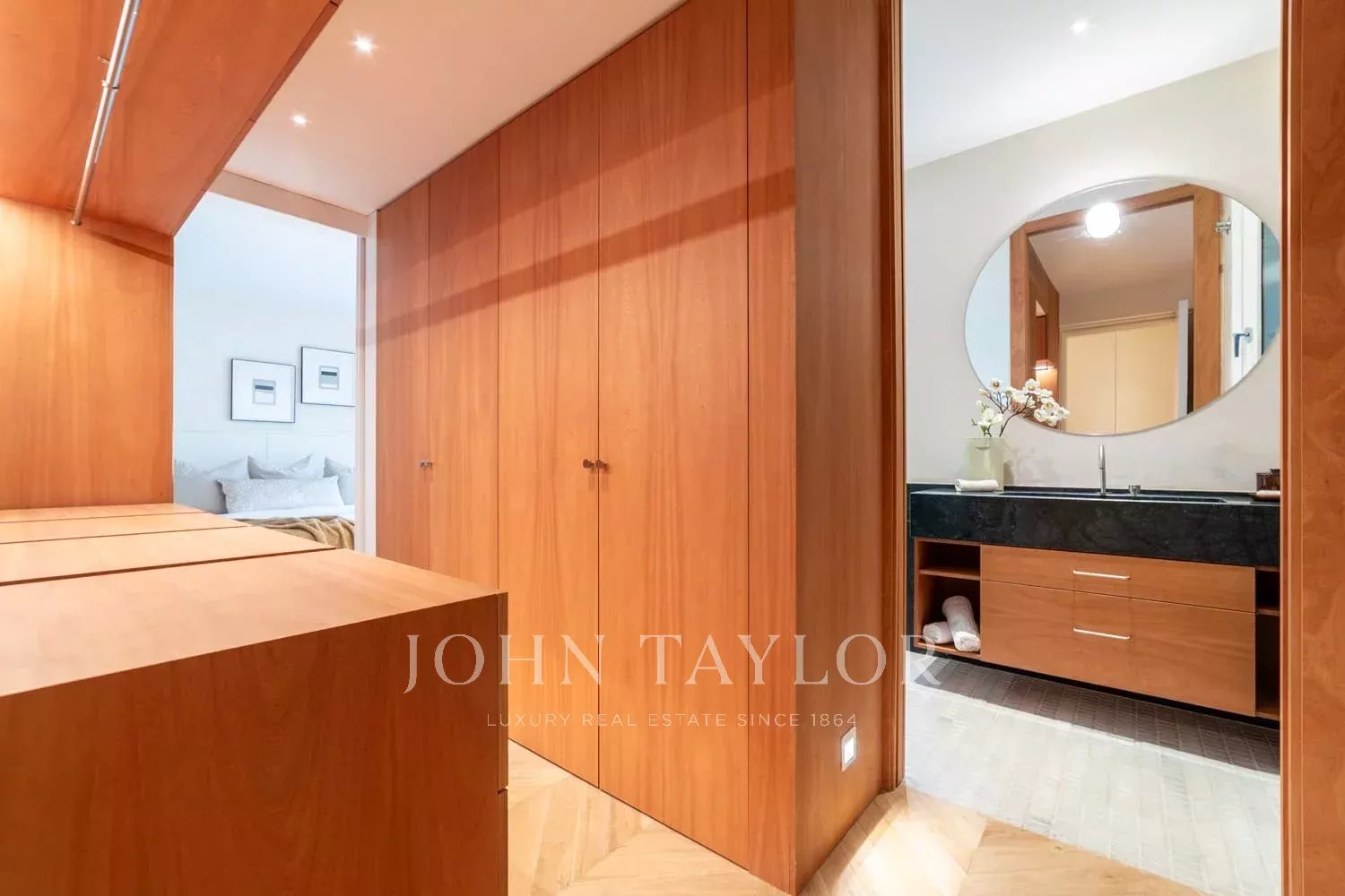 L'agencement a été soigneusement pensé pour offrir confort et fonctionnalité : grand salon, salle à manger séparée, cuisine indépendante entièrement équipée, deux chambres en-suite, dont une avec dressing, ainsi que des toilettes pour les invités. La propriété est équipée d'armoires encastrées, de chauffage et d'air conditionné, garantissant un confort maximal tout au long de l'année.