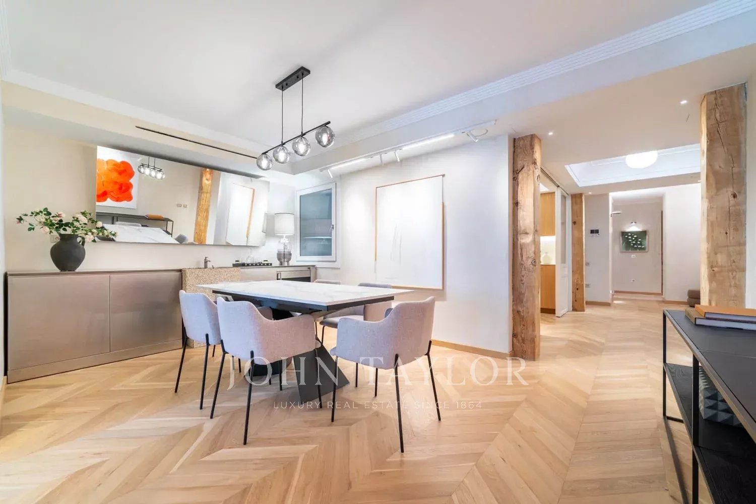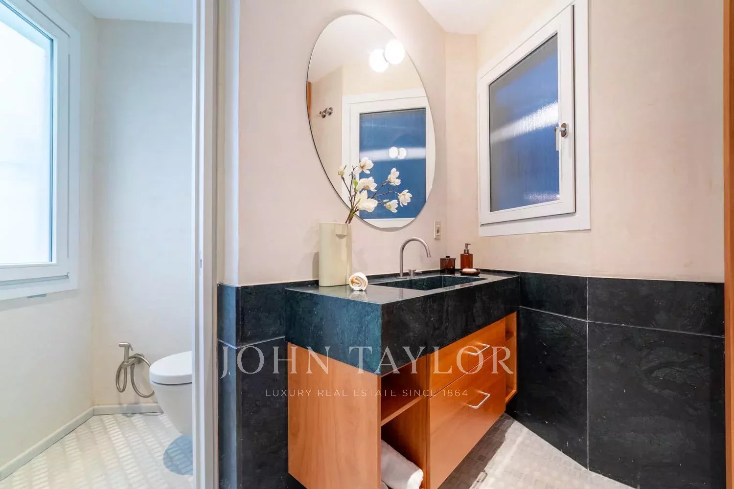 La propriété, d'une superficie de 175 m², a été entièrement rénovée à neuf, alliant le charme de l'architecture classique à un design intérieur contemporain et sophistiqué. Elle bénéficie d'une excellente orientation ouest, ce qui apporte une abondance de lumière naturelle dans les pièces principales.