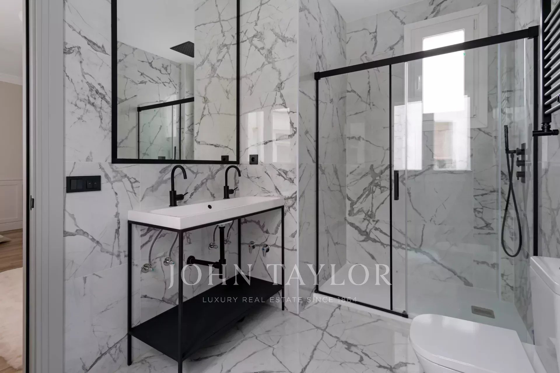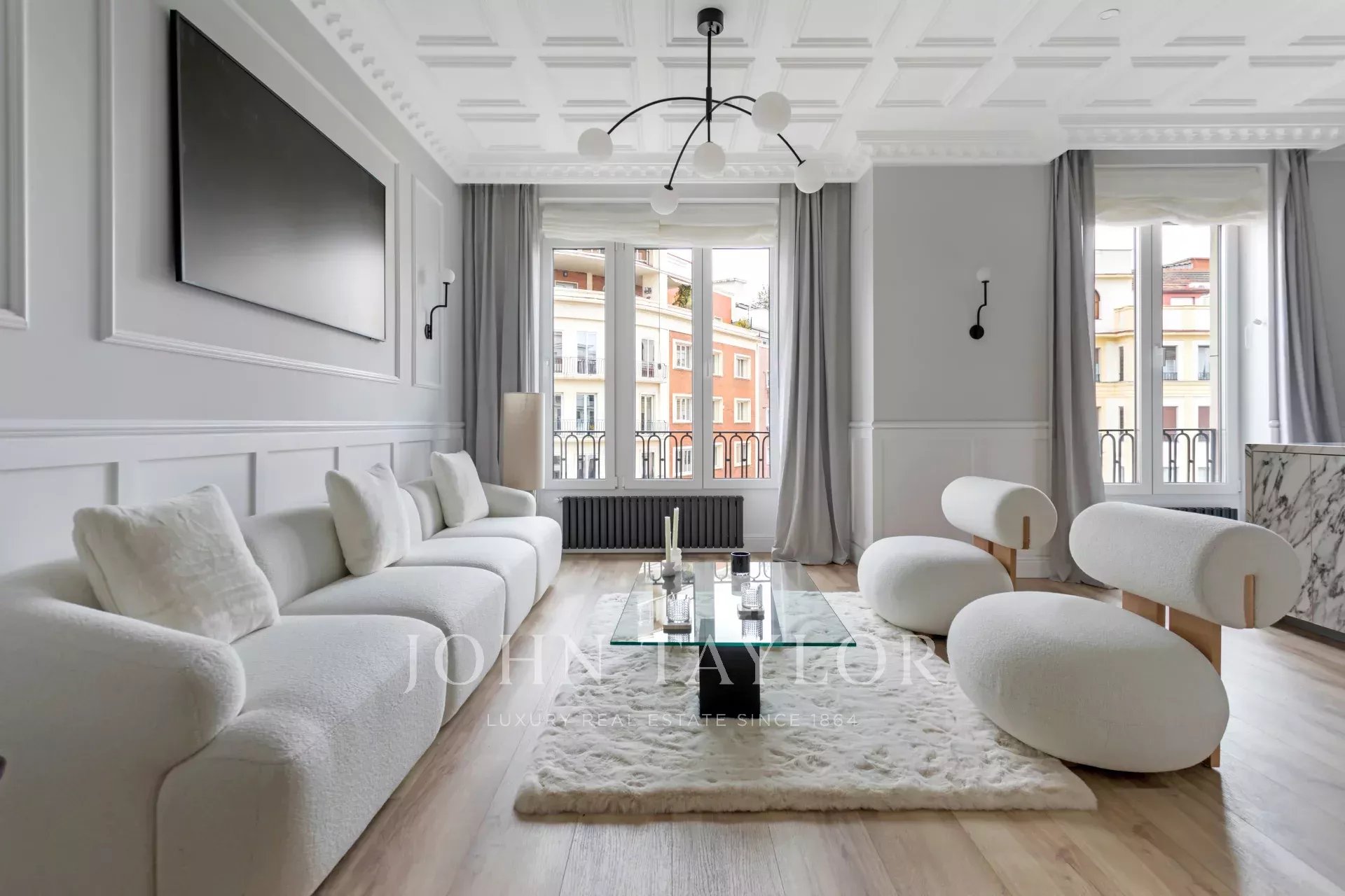 Cet appartement fantastique est équipé de stores électriques et d'un système de climatisation avec contrôle indépendant de la température dans chaque pièce.