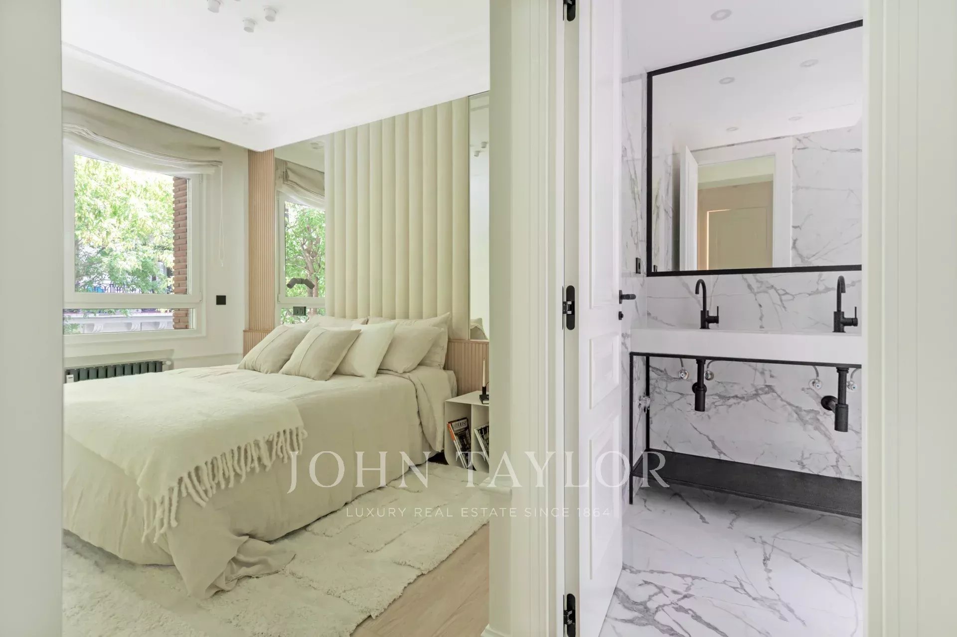 Il dispose de deux chambres spacieuses, toutes deux dotées d'une salle de bains et de grandes armoires encastrées.