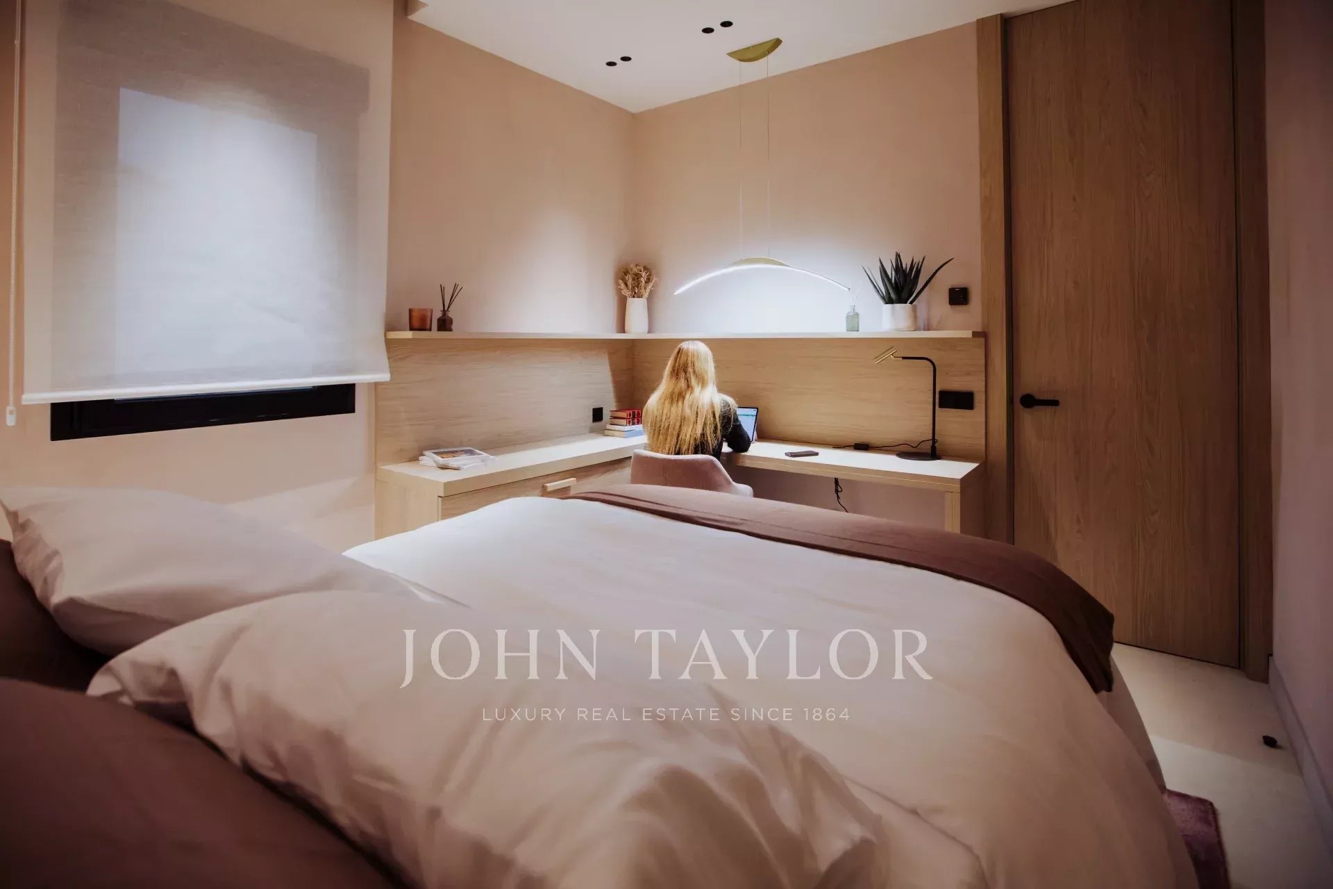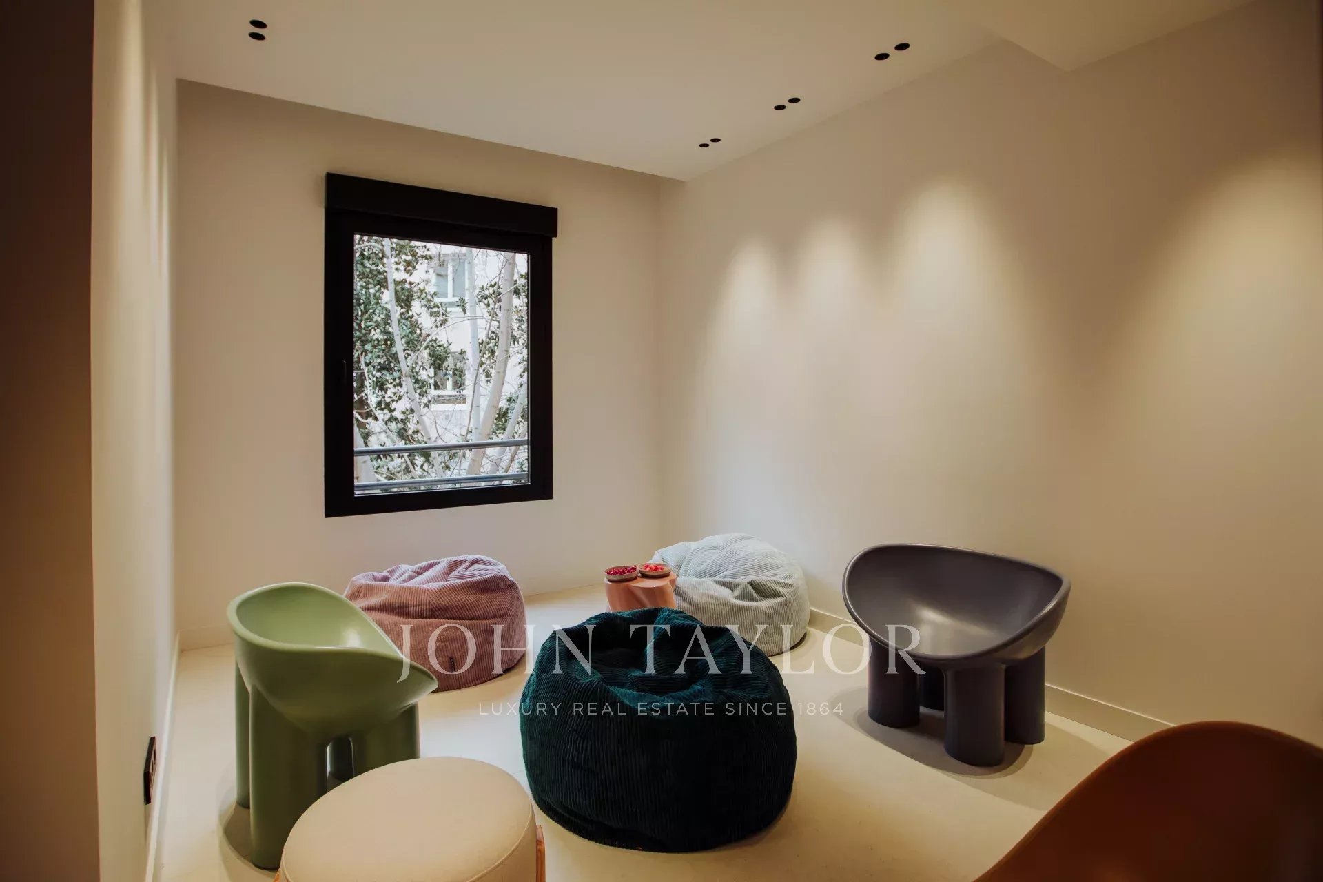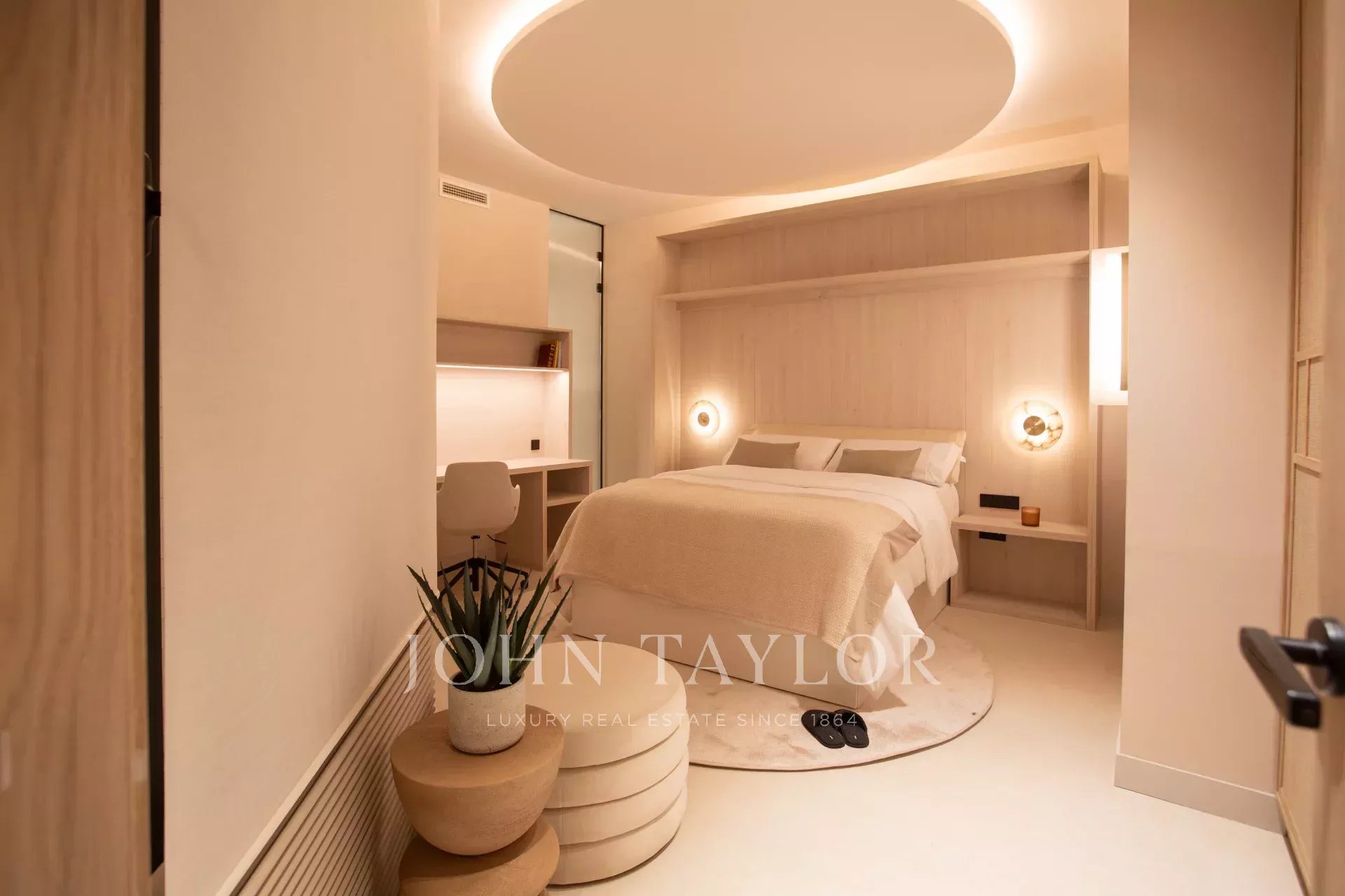 L'espace nuit comprend pas moins de cinq autres chambres, toutes dotées d'une salle de bains attenante avec fenêtre et d'un espace de travail. L'une d'entre elles donne sur une cour calme et paysagée offrant une vue agréable. Le bureau, équipé d'un grand écran pour les vidéoconférences, et le salon, qui dispose d'un projecteur dissimulé, donnent sur la cour. Une autre des chambres dispose d'une entrée séparée, ce qui la rend idéale pour les chambres du personnel ou des invités. Il y a également une buanderie séparée avec trois machines à laver et trois sèche-linge.