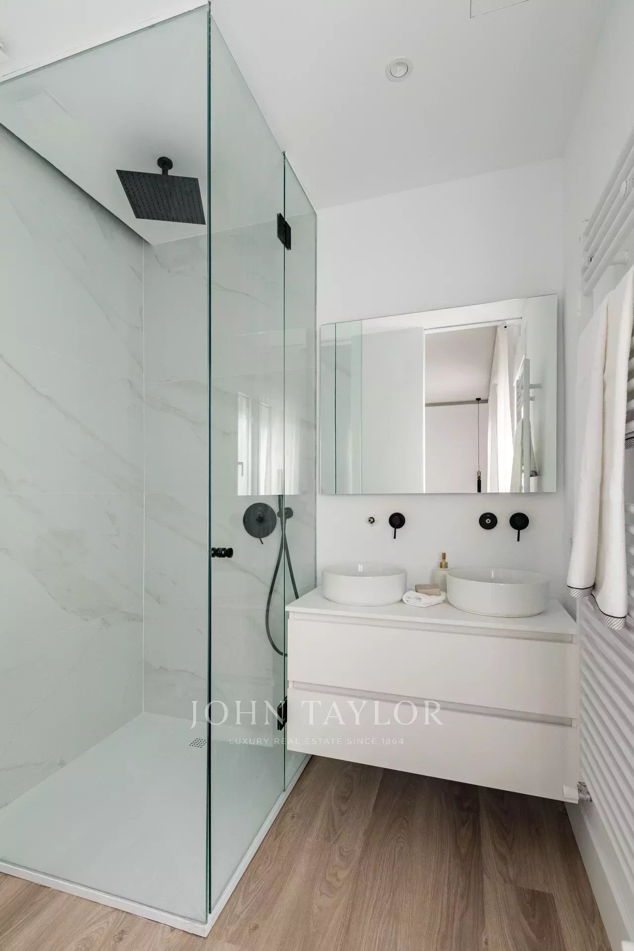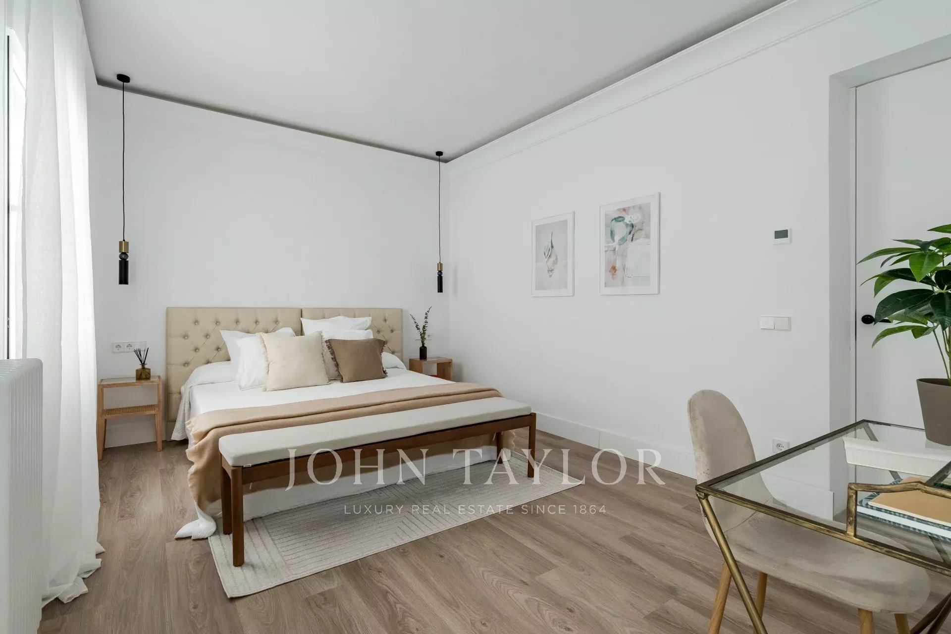 L'appartement dispose de deux chambres avec salle de bains en suite, d'un salon et d'une toilette pour les invités.