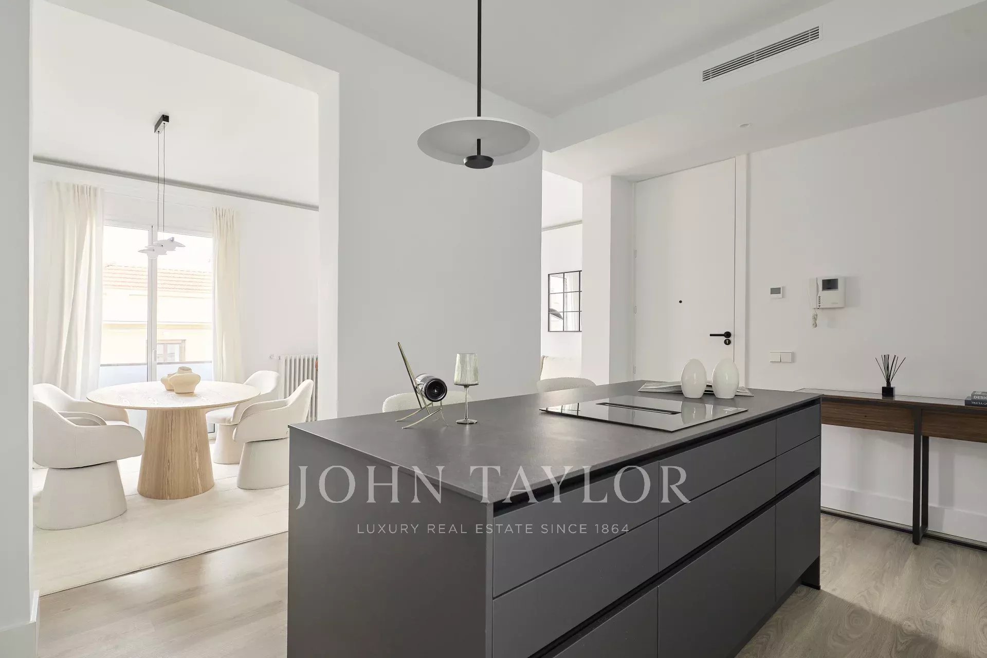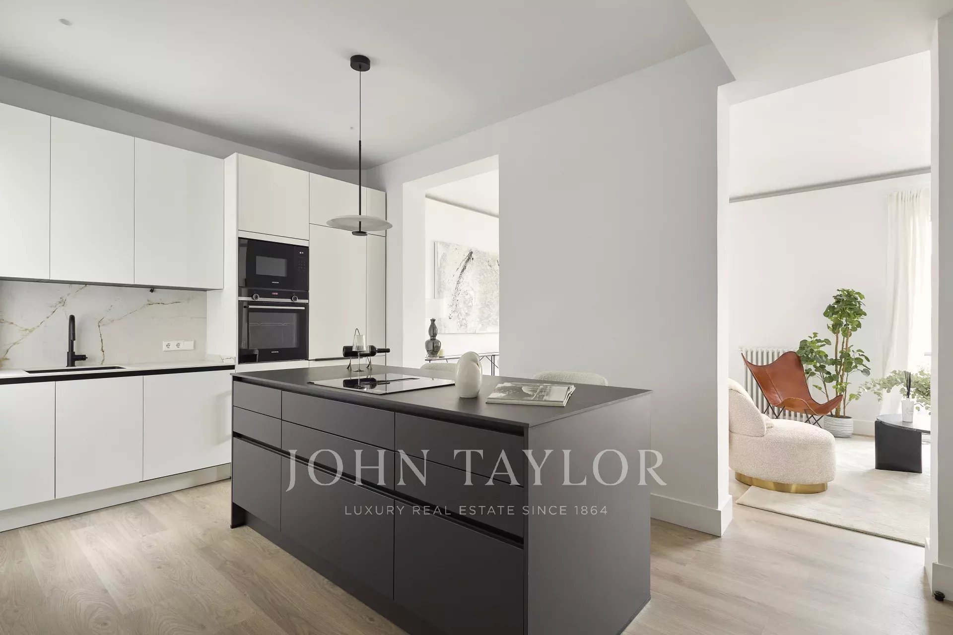 L'espace extérieur est occupé par le salon et la salle à manger, d'une superficie de 42 m² et fantastiquement éclairé grâce à son orientation sud avec deux balcons. Juste à côté se trouve la grande cuisine au design moderne et entièrement équipée.