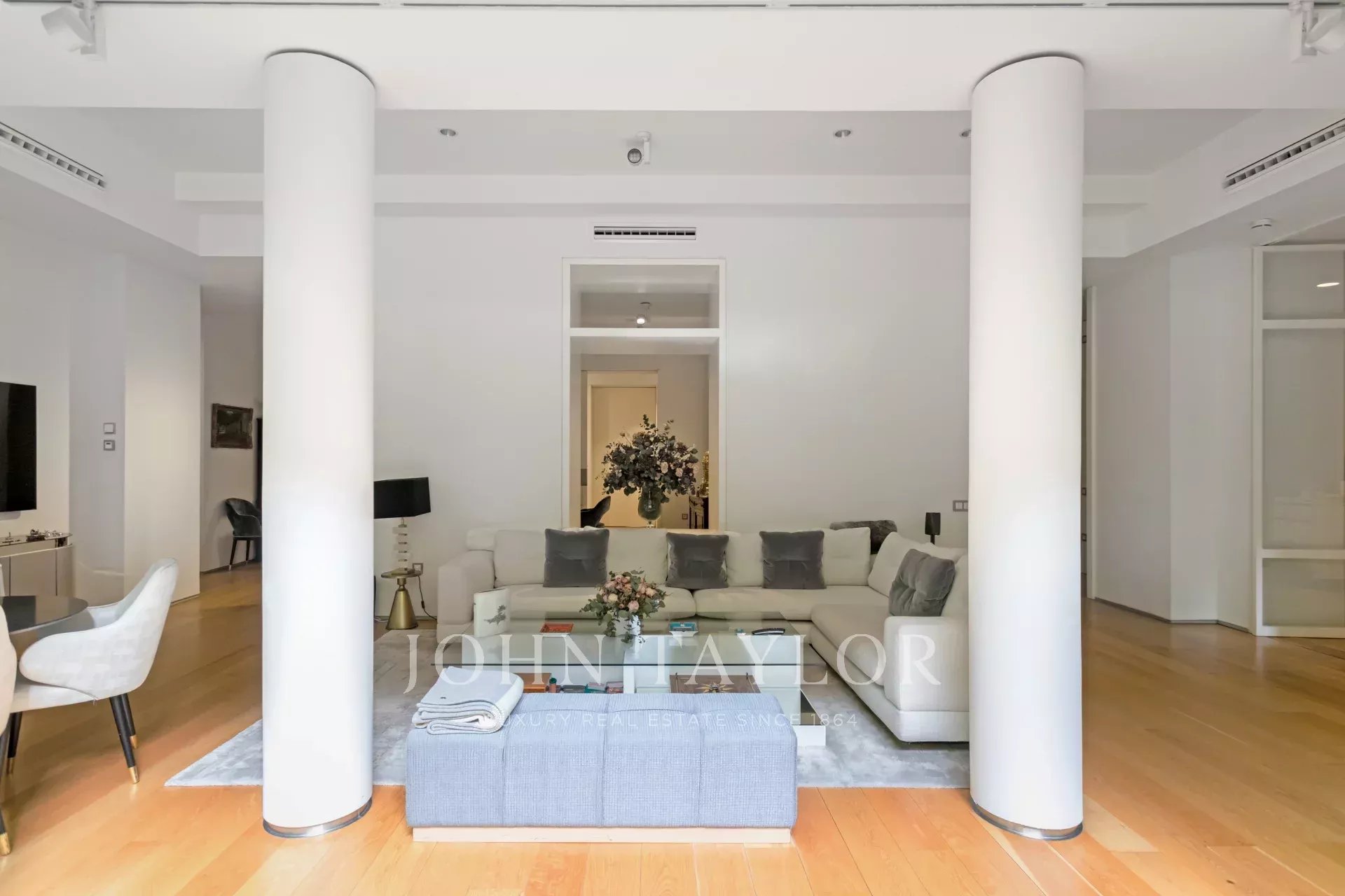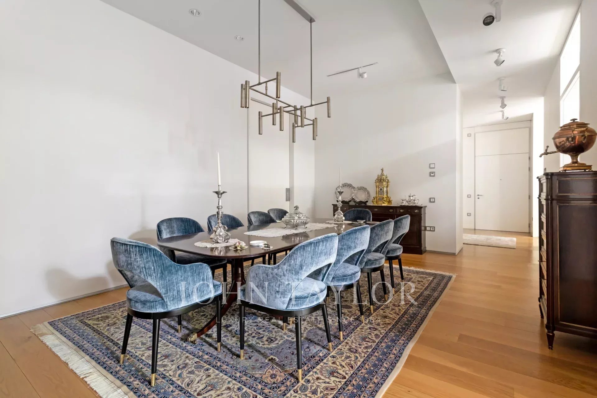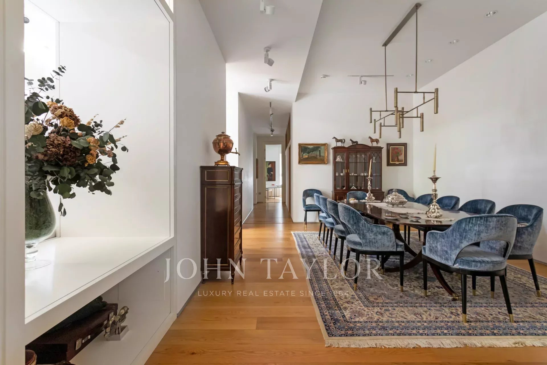 La propriété, orientée sur deux façades, bénéficie d'une lumière naturelle abondante dans toutes ses pièces. Ses huit balcons orientés au sud et à l'ouest, ainsi qu'une grande terrasse et des plafonds de plus de 3,5 mètres de hauteur, confèrent un air de sophistication et d'espace à chaque coin.