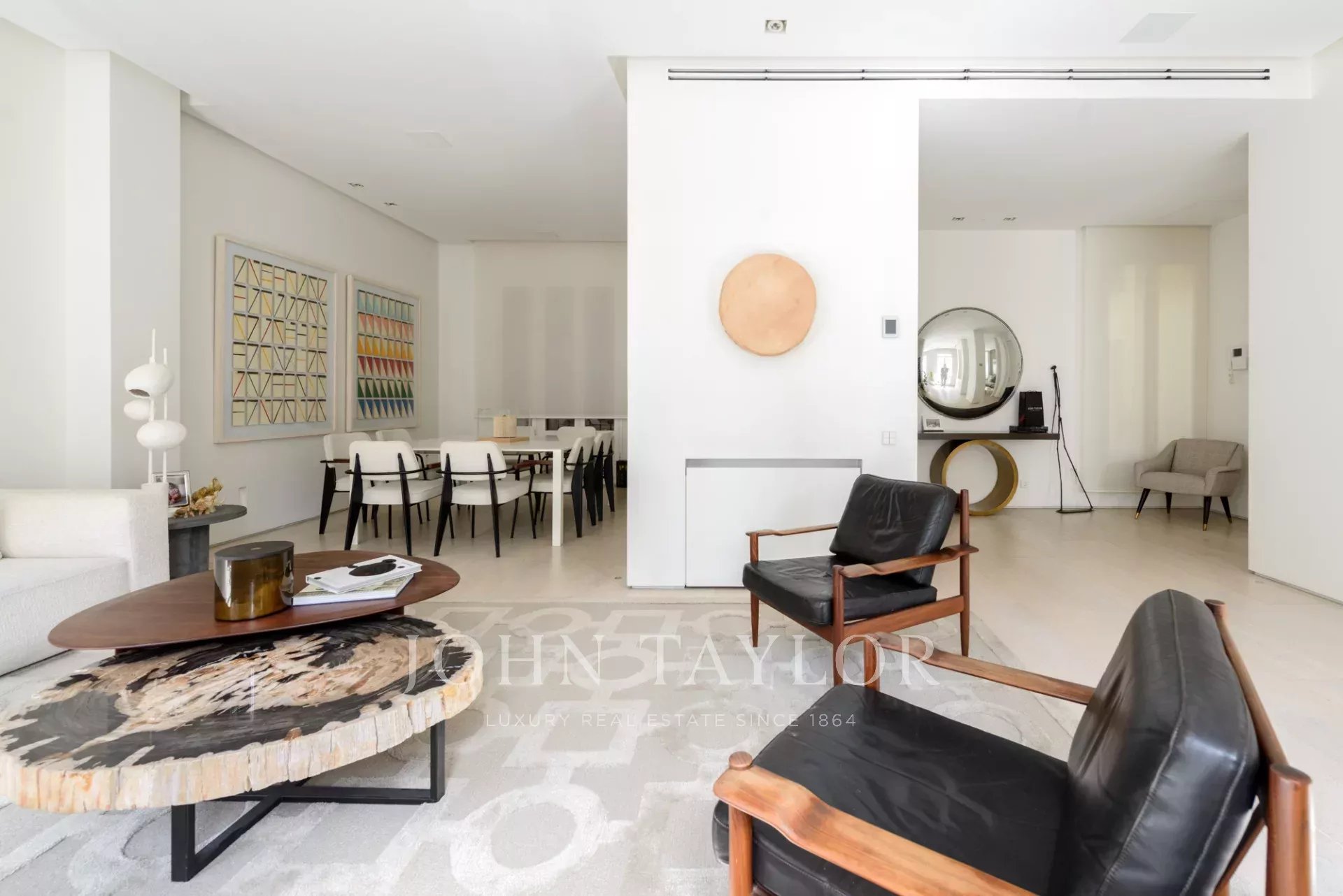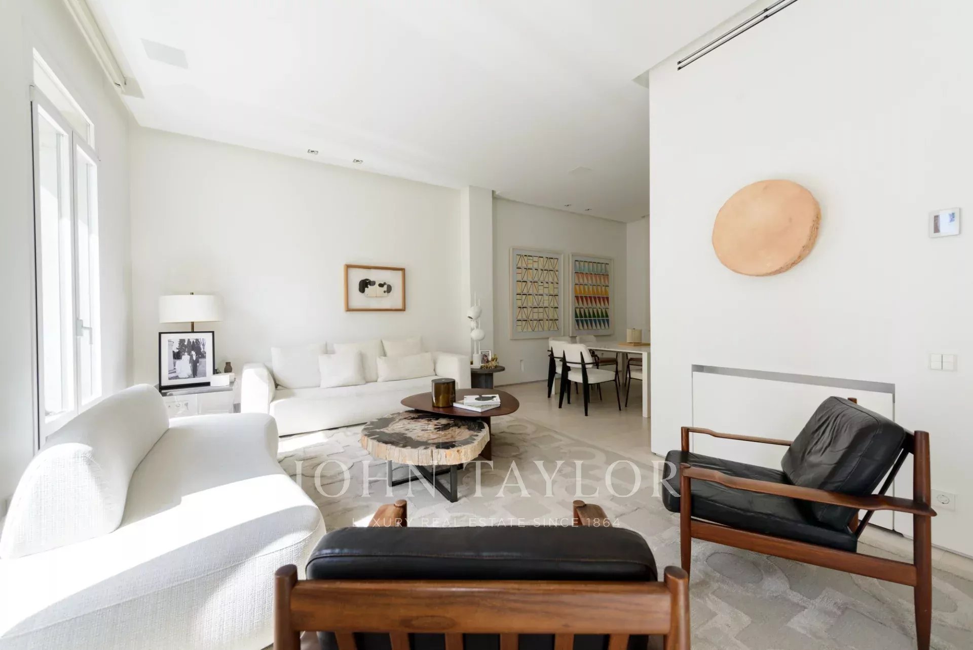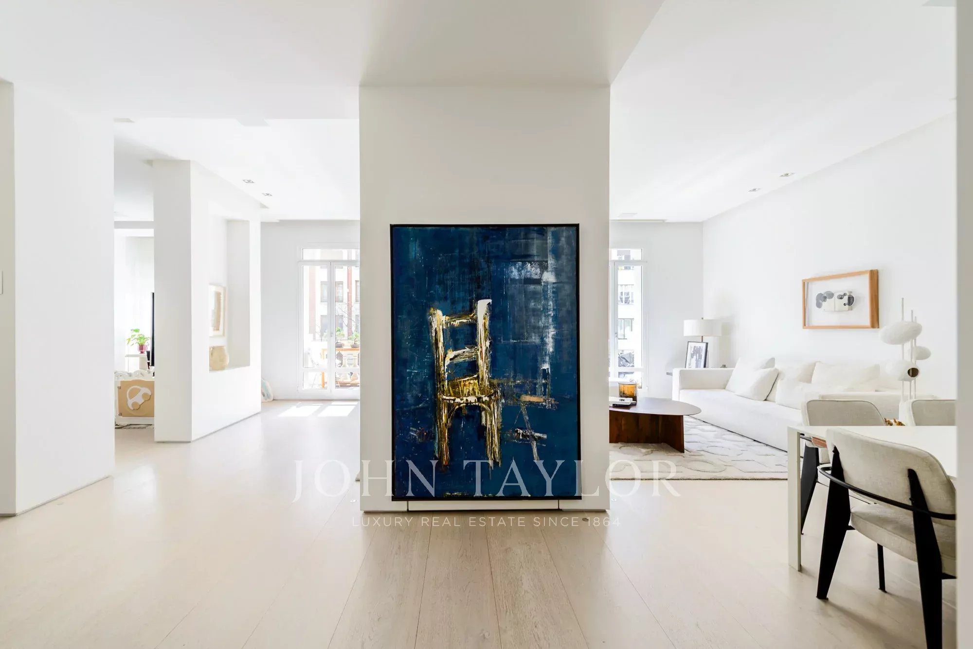 Le salon principal est un espace lumineux et ouvert, orienté vers le sud et donnant accès à quatre impressionnants balcons surdimensionnés. Le salon est relié à la salle à manger et au couloir.