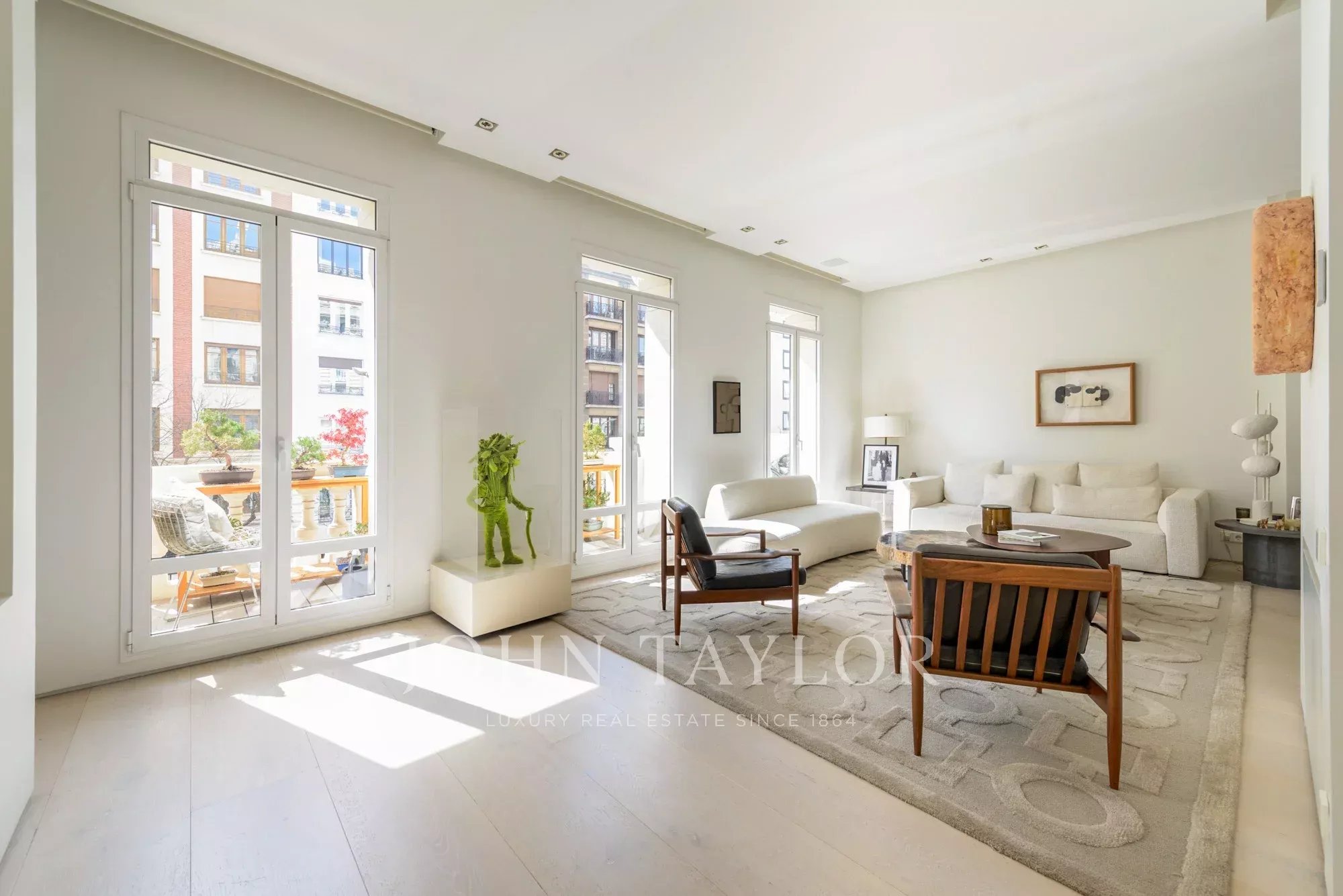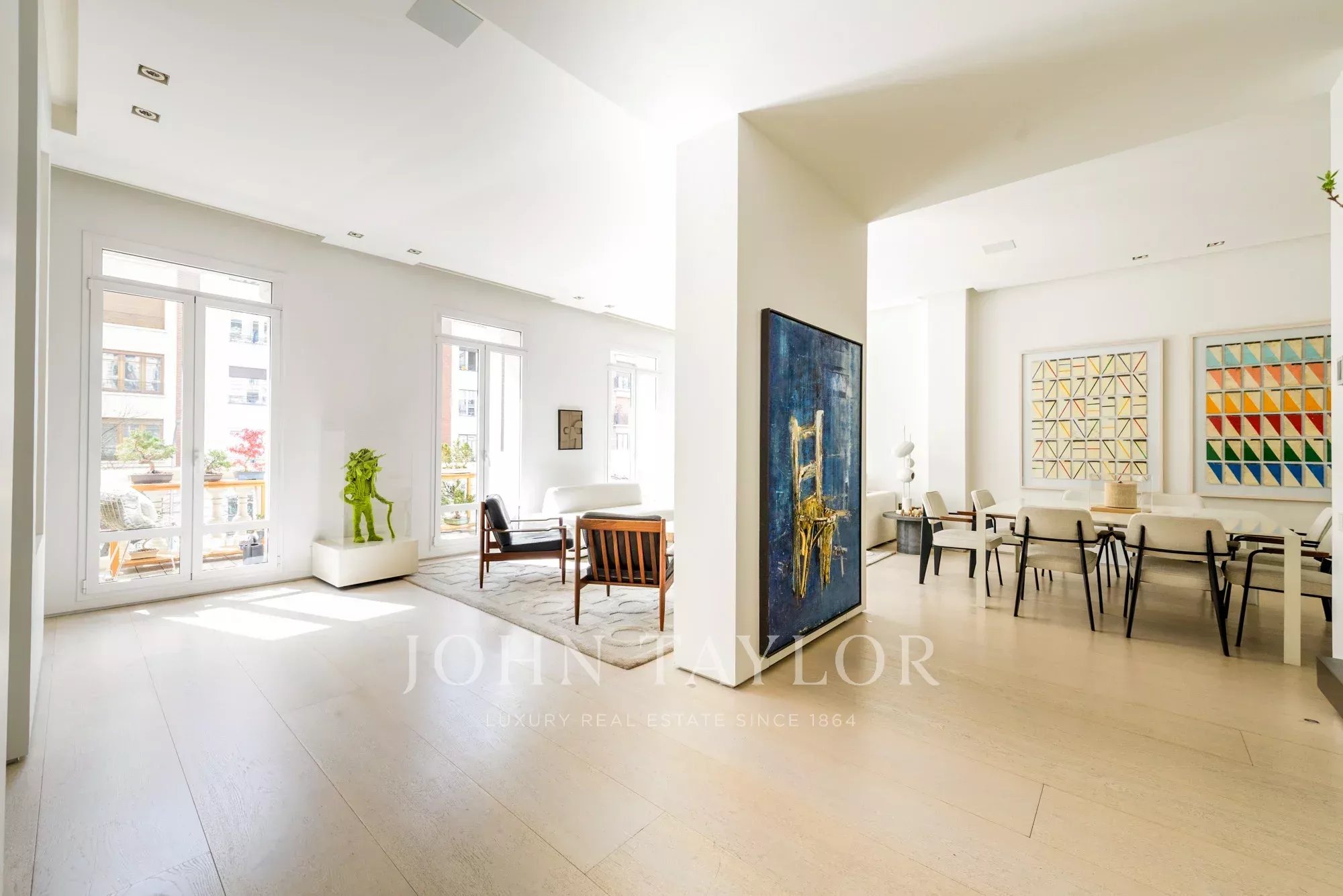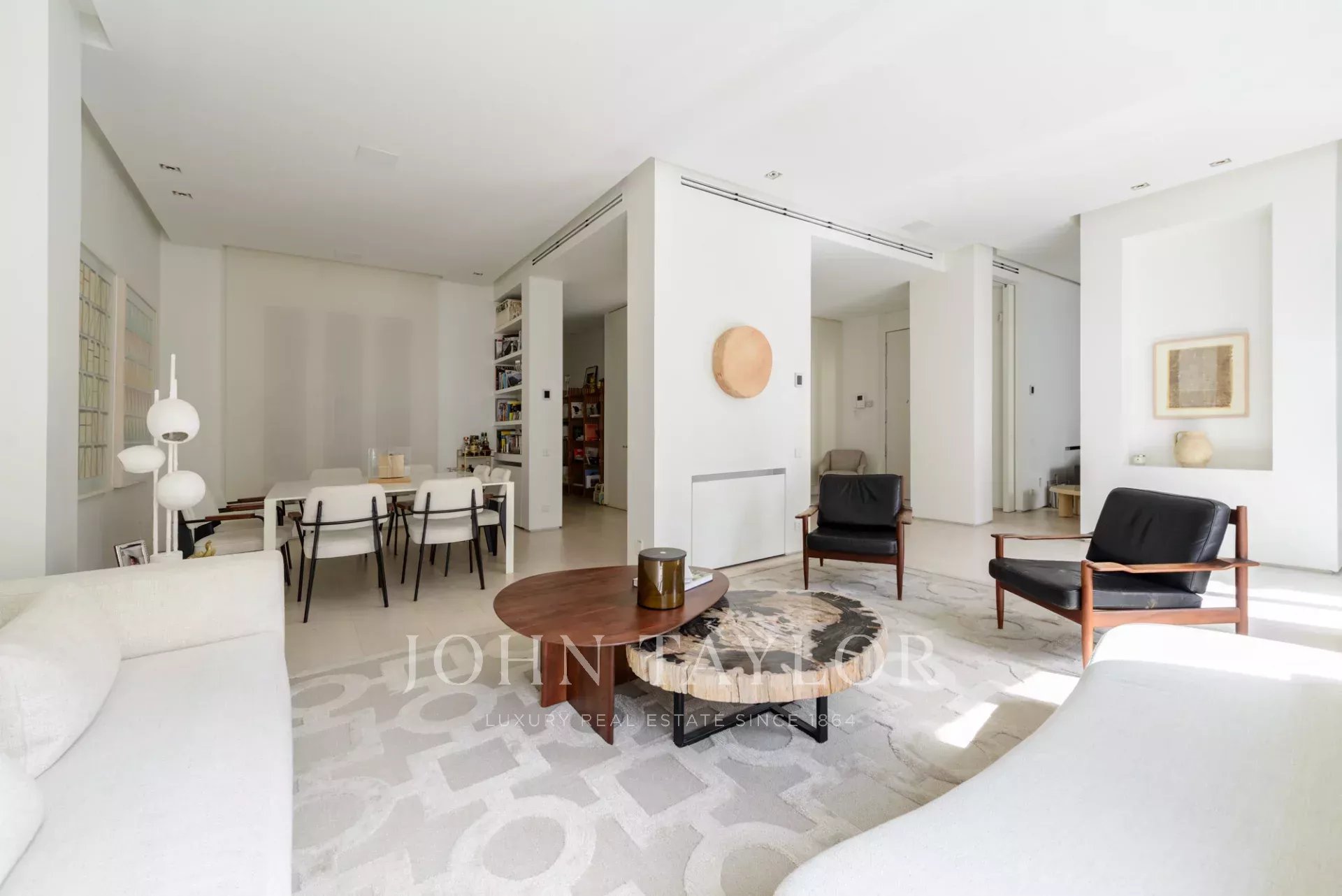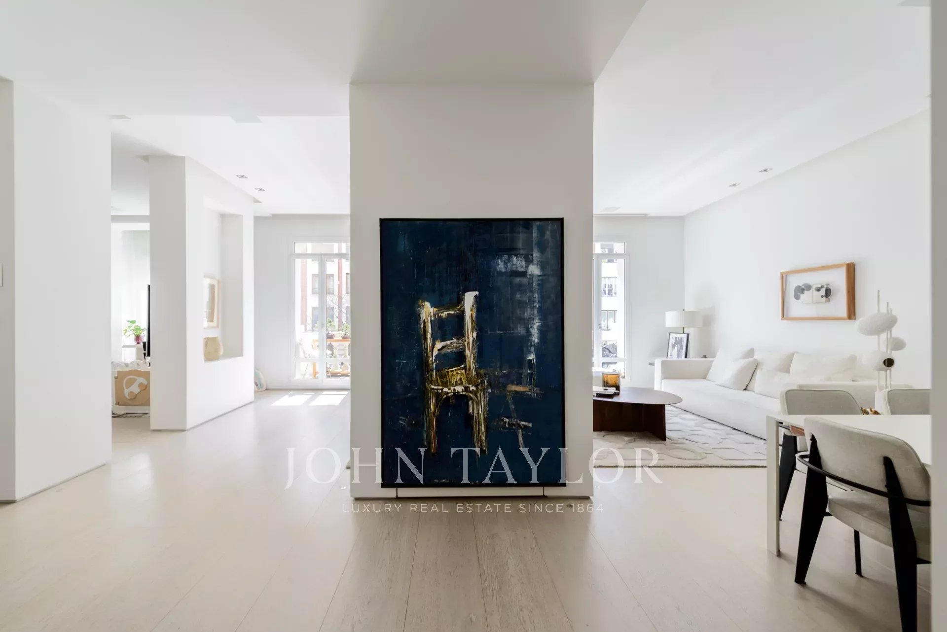 Le salon principal est un espace lumineux et ouvert, orienté vers le sud et donnant accès à quatre impressionnants balcons surdimensionnés. Le salon est relié à la salle à manger et au couloir.