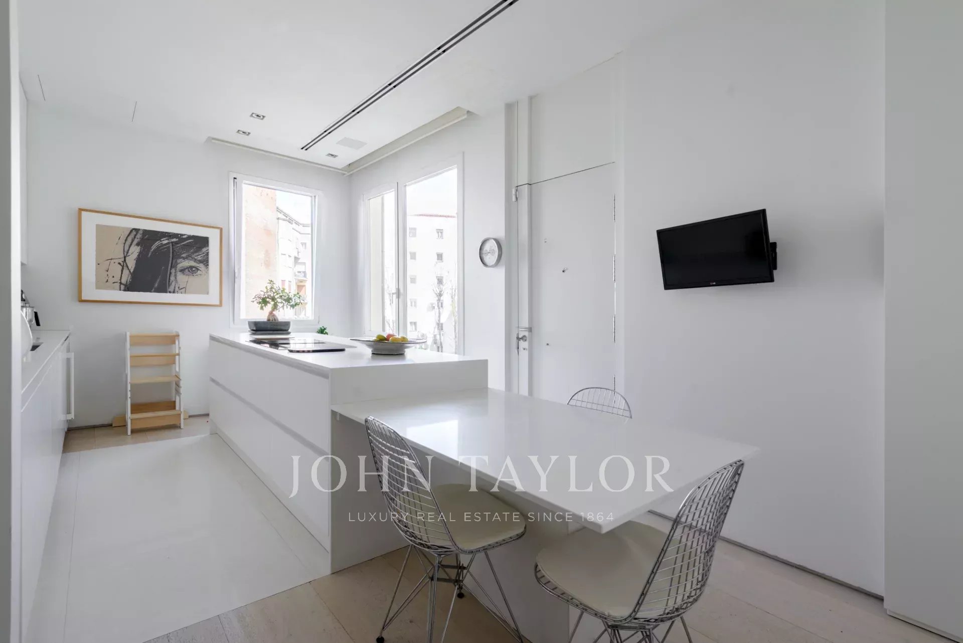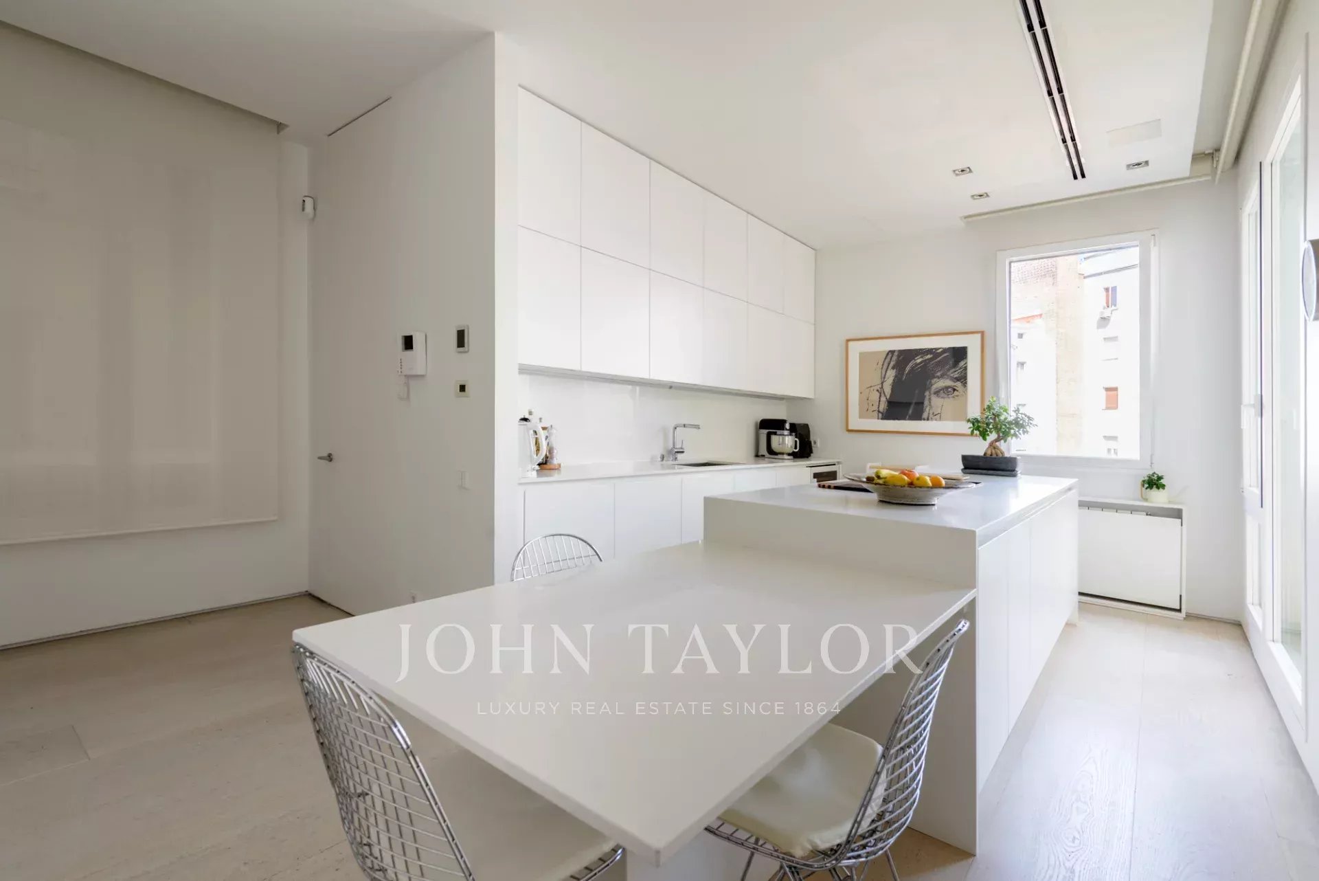 Cette propriété unique est située à côté du parc Retiro, dans un bâtiment spectaculaire à la façade classique. Nous soulignons particulièrement ses quatre balcons et la hauteur imposante de ses plafonds qui donnent de l'espace et du caractère à chaque pièce. La rénovation a été réalisée par une équipe renommée de designers espagnols, et chaque détail a été conçu sur mesure pour cet appartement, y compris les élégantes portes allant du sol au plafond, qui renforcent l'impression de sophistication.