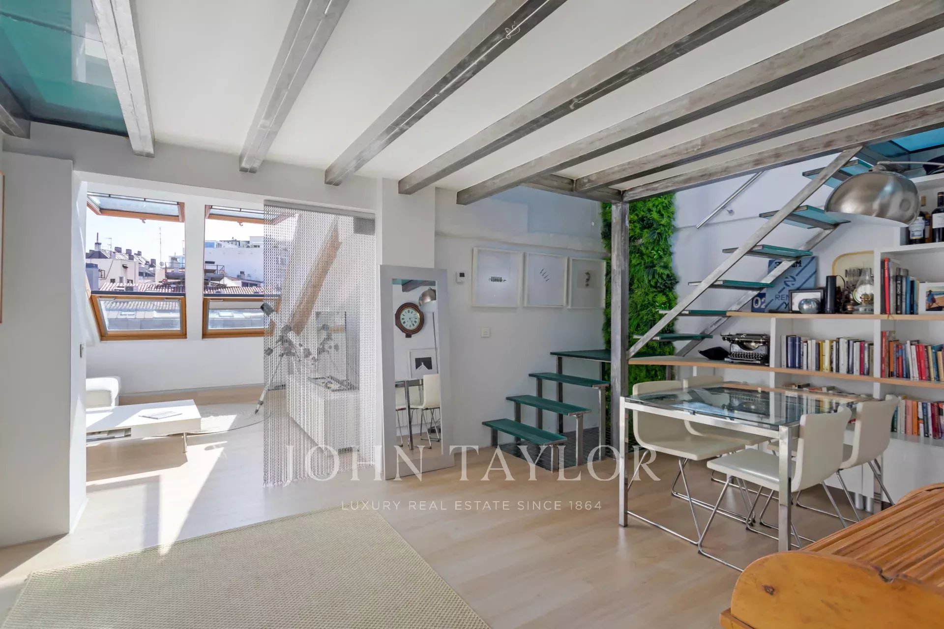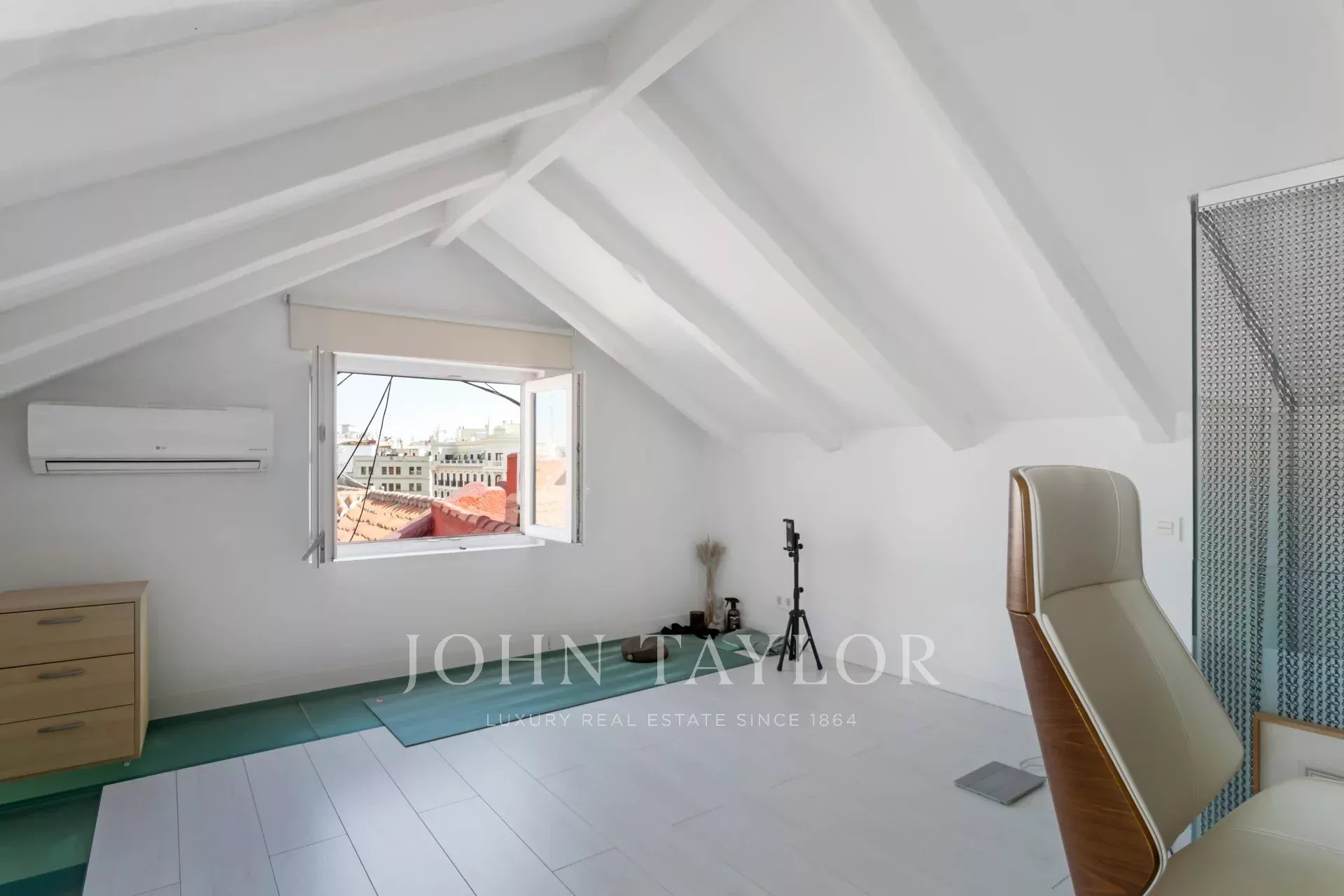 Le salon et la chambre disposent de fenêtres de toit donnant sur la rue Alcalá, d'où l'on peut admirer de beaux bâtiments classiques et une partie du parc du Retiro. Il s'agit d'un penthouse pour les amoureux du soleil et de la lumière naturelle.