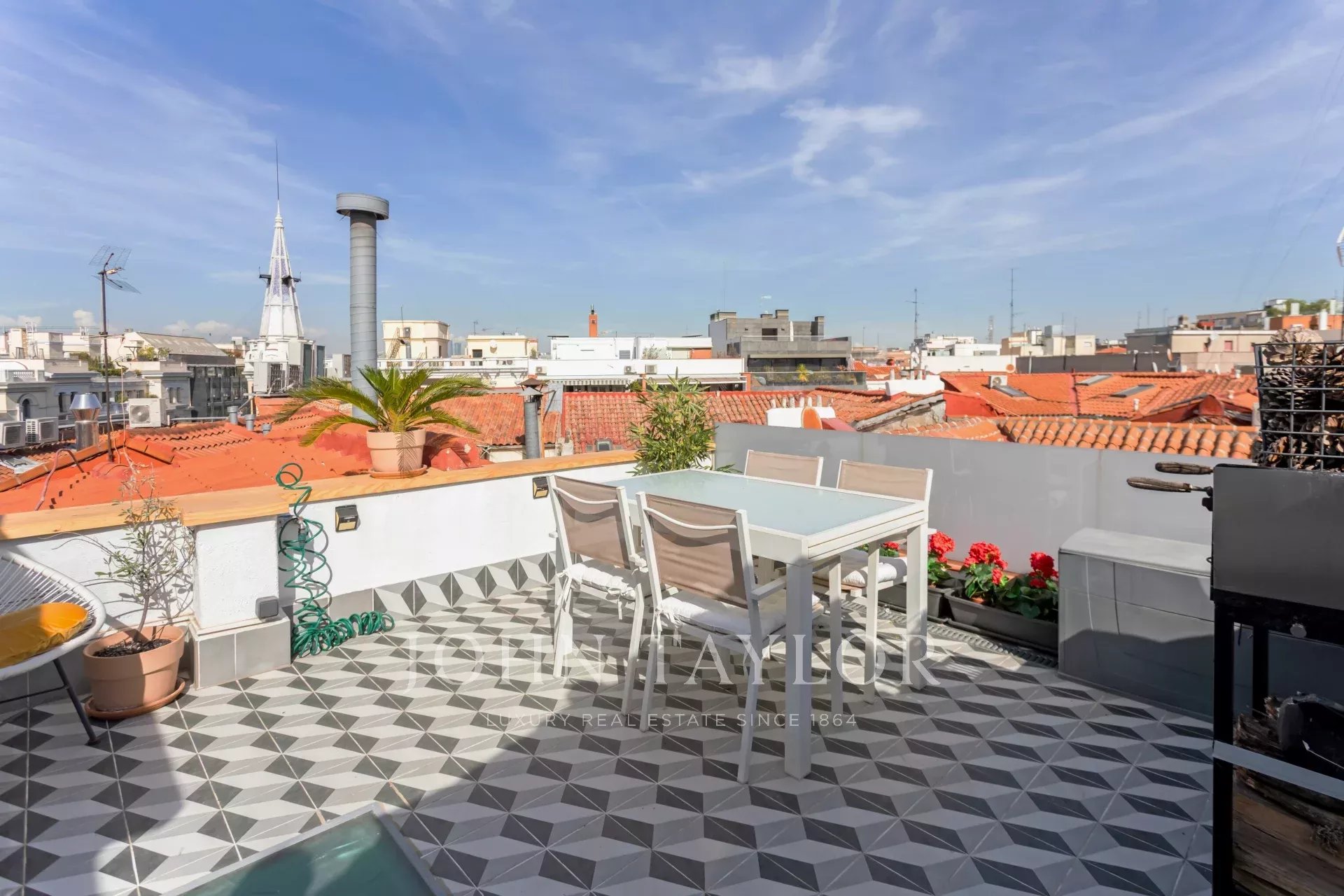 Nous présentons en exclusivité ce penthouse unique avec terrasse et vue sur les dômes et les toits les plus emblématiques du quartier de Salamanca, à une minute de marche du parc du Retiro.