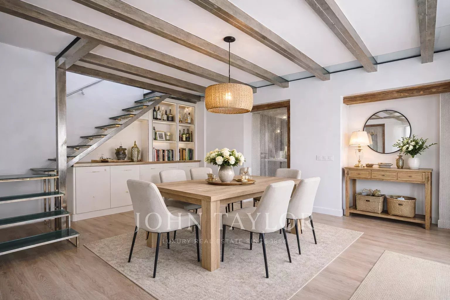 Sa distribution, ainsi que les particularités de la propriété, confèrent à chaque pièce un charme particulier et des vues uniques.
