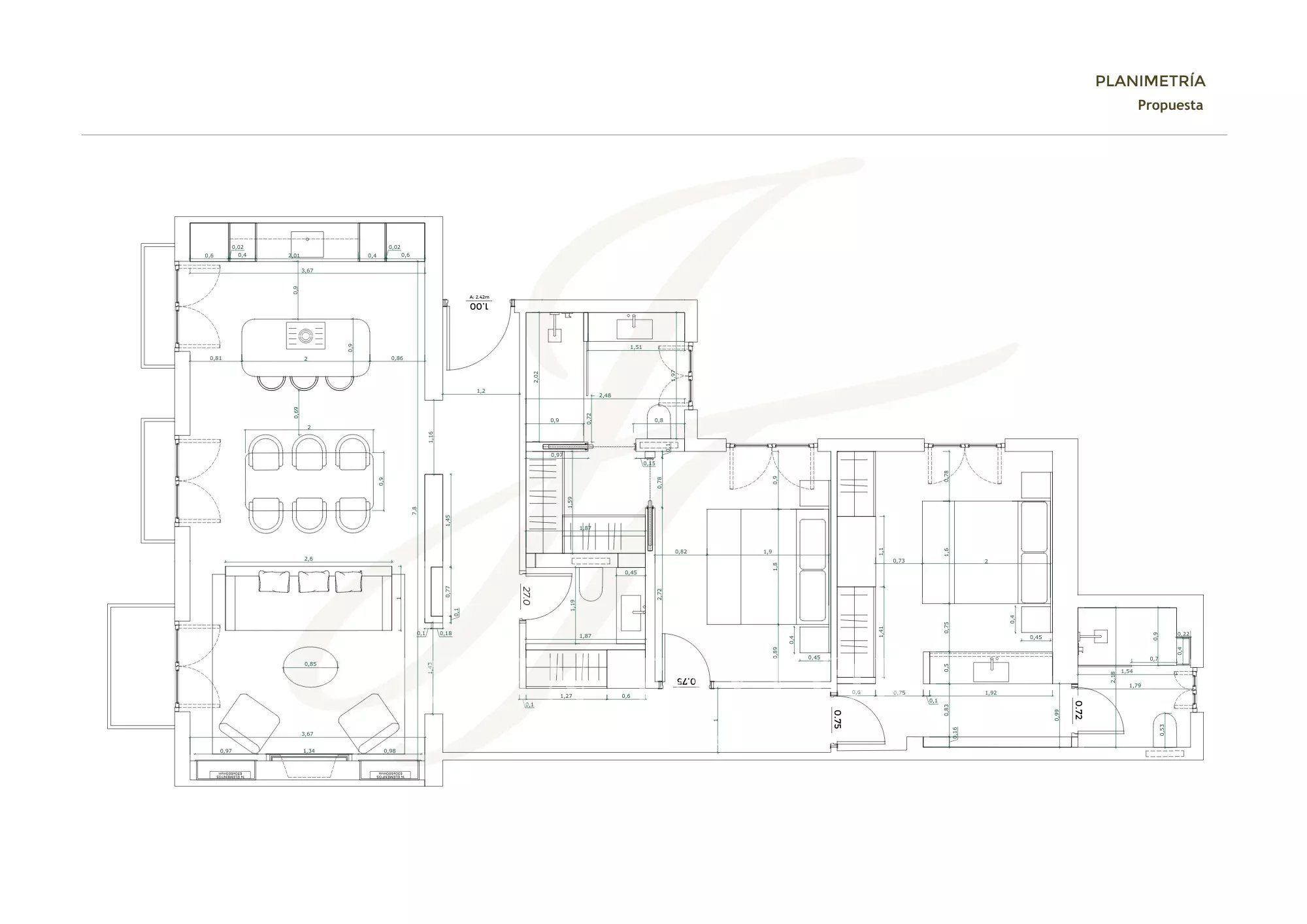 Avec 118 m² et des plafonds de 3,15 mètres de hauteur, la propriété se distingue par son élégance architecturale et ses trois balcons orientés à l'ouest, qui apportent de la lumière naturelle et un caractère majestueux à la propriété. Elle compte actuellement deux chambres, deux salles de bains complètes et un WC, offrant une base idéale pour une redistribution contemporaine qui maximise ses espaces et sa luminosité.