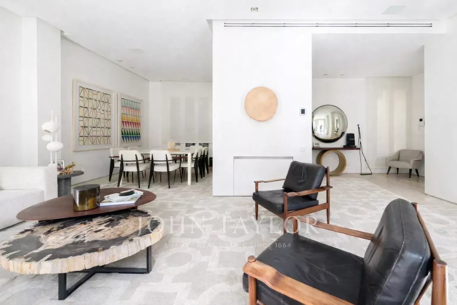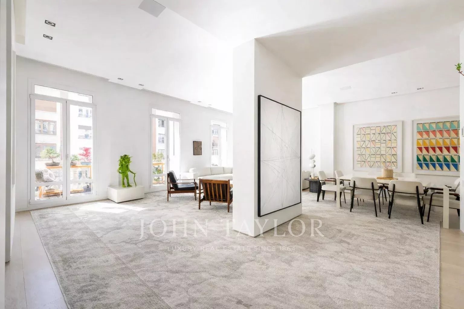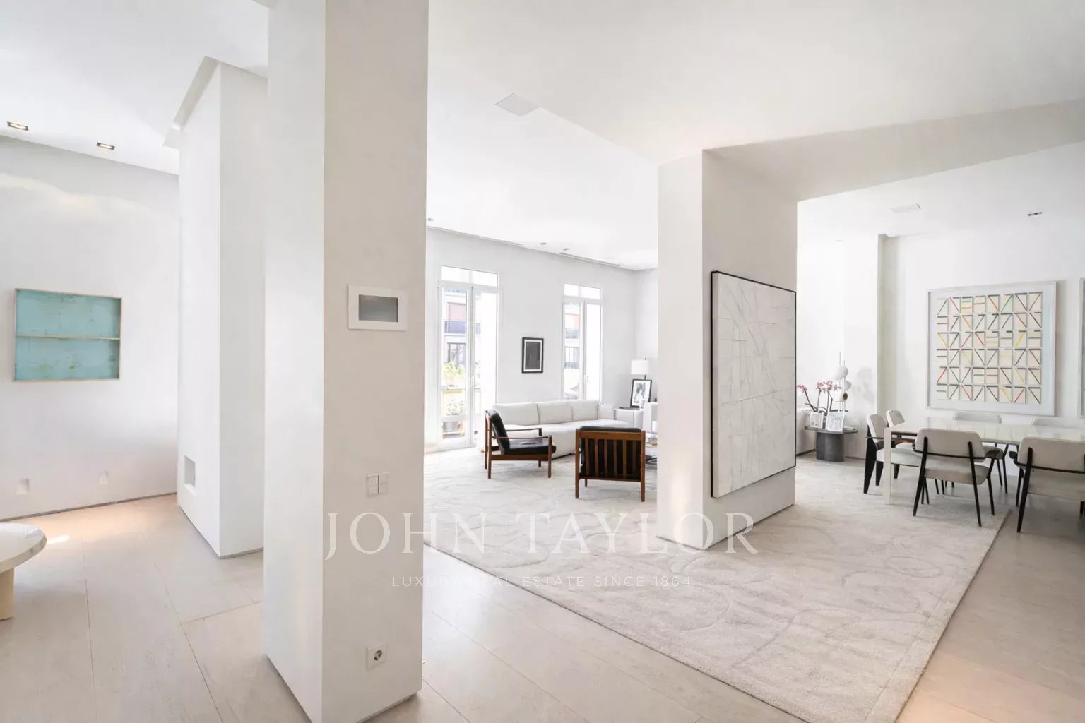 Le salon principal est un espace lumineux et ouvert, orienté vers le sud et donnant accès à quatre impressionnants balcons surdimensionnés. Le salon est relié à la salle à manger et au couloir.