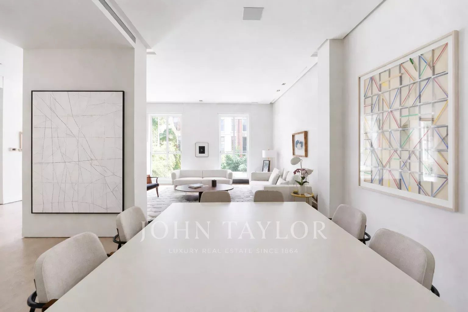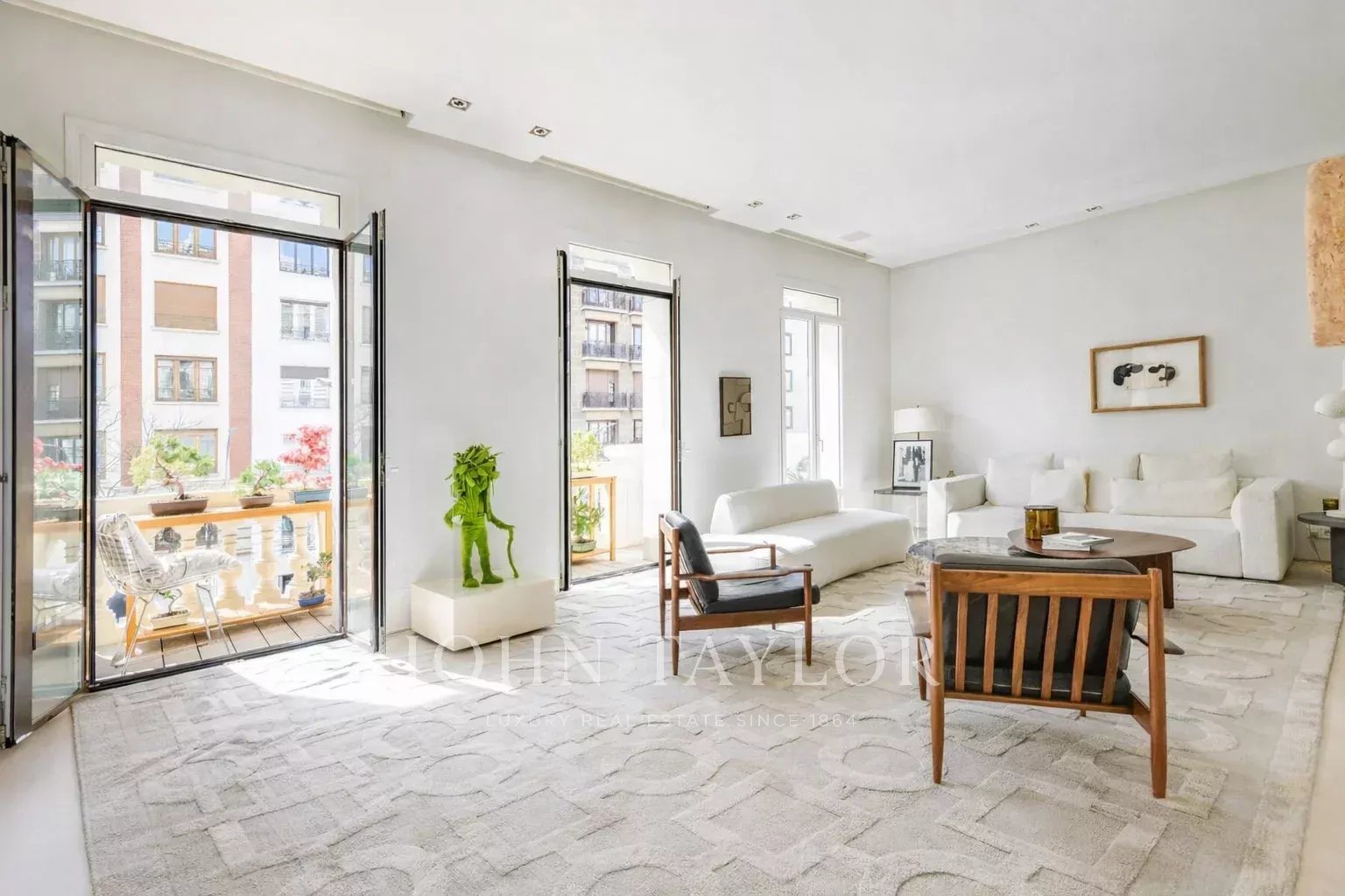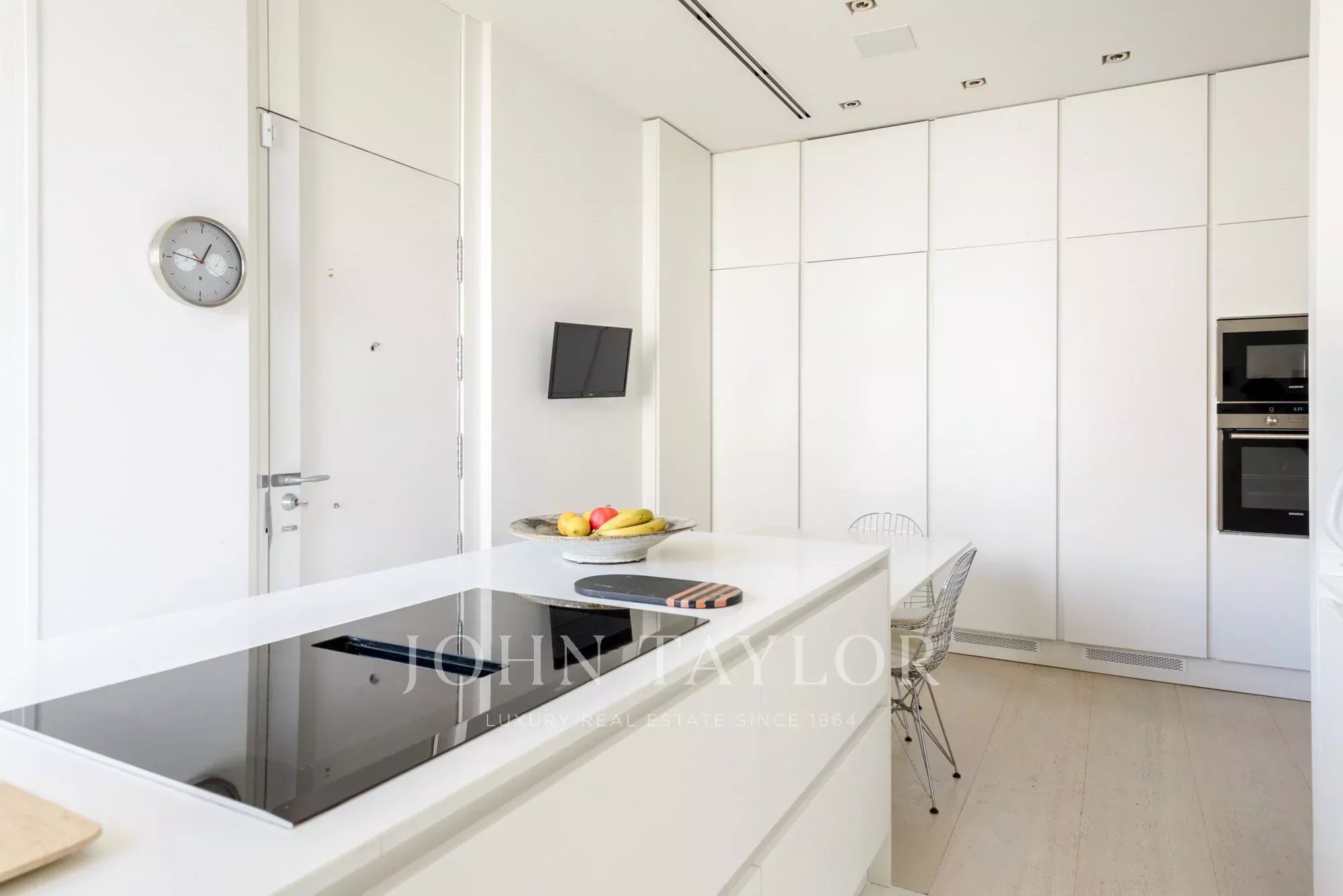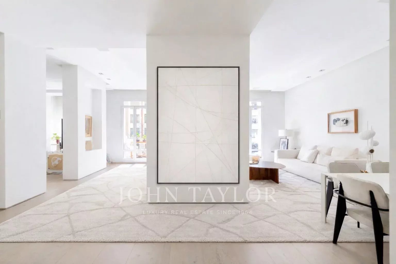 Le salon principal est un espace lumineux et ouvert, orienté vers le sud et donnant accès à quatre impressionnants balcons surdimensionnés. Le salon est relié à la salle à manger et au couloir.