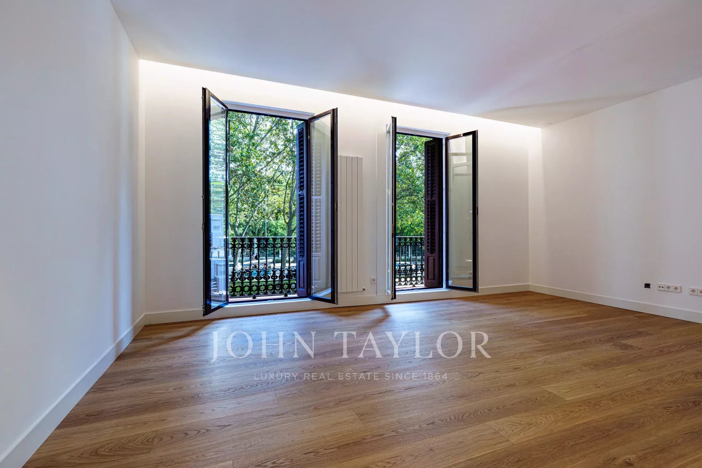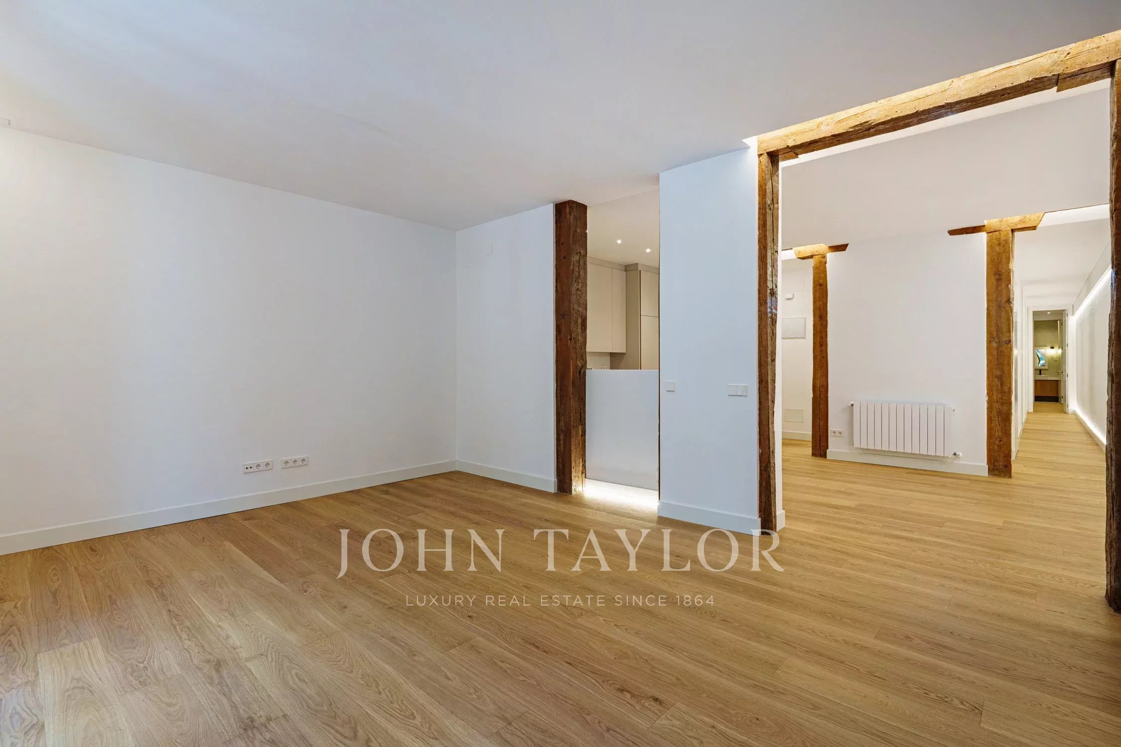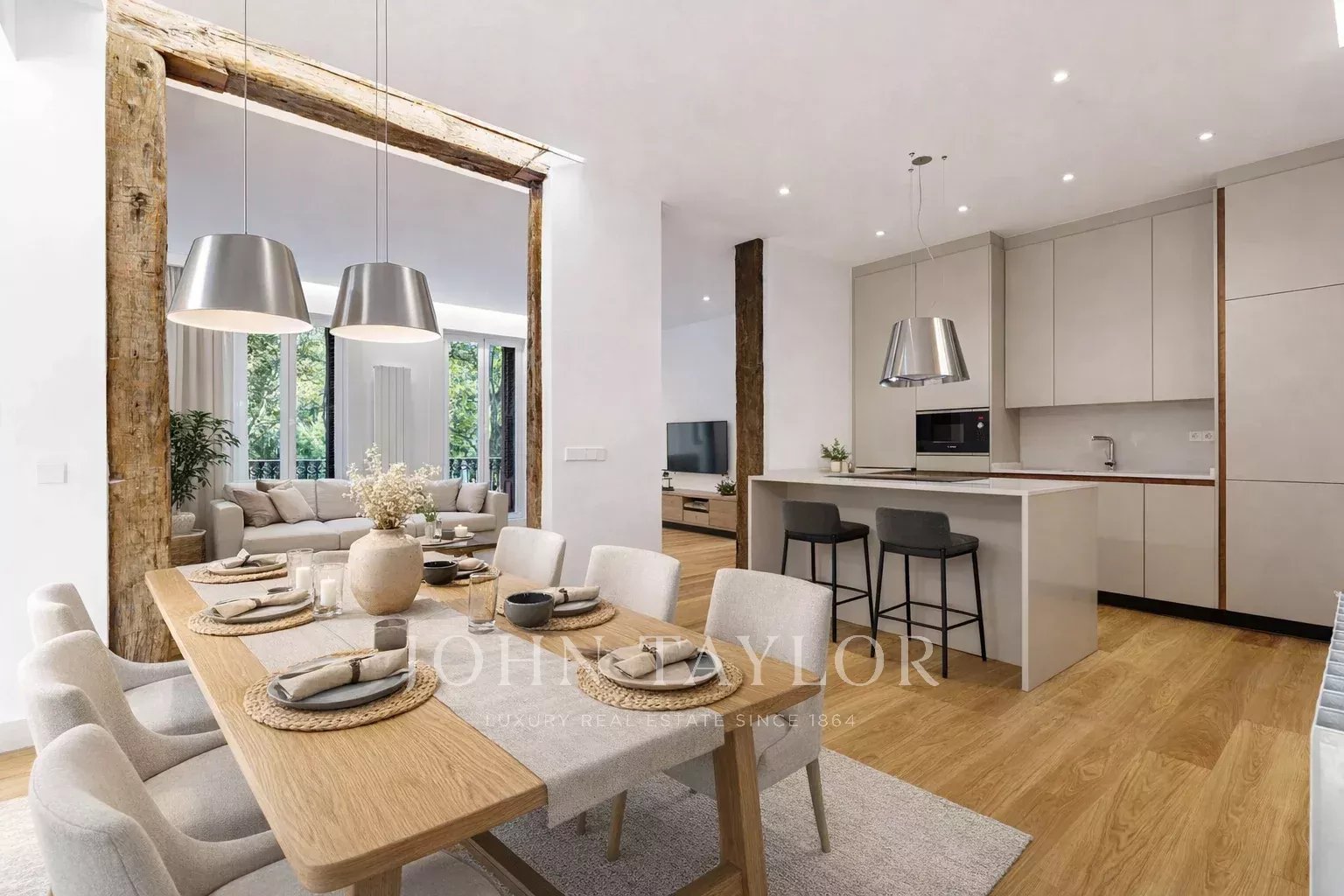 Situé dans le quartier de Cortes, cet élégant appartement de 152 m² offre une interprétation sophistiquée de la vie dans le centre de Madrid. Un espace où l'espace, la lumière naturelle et la qualité de construction définissent une expérience résidentielle sereine et intemporelle.