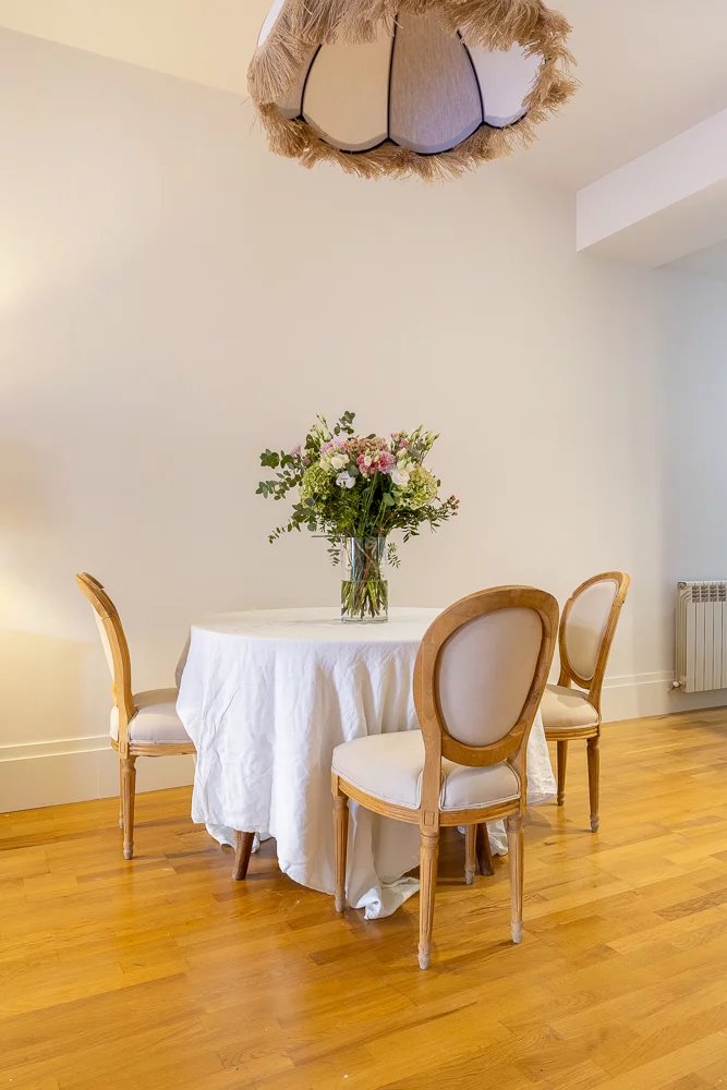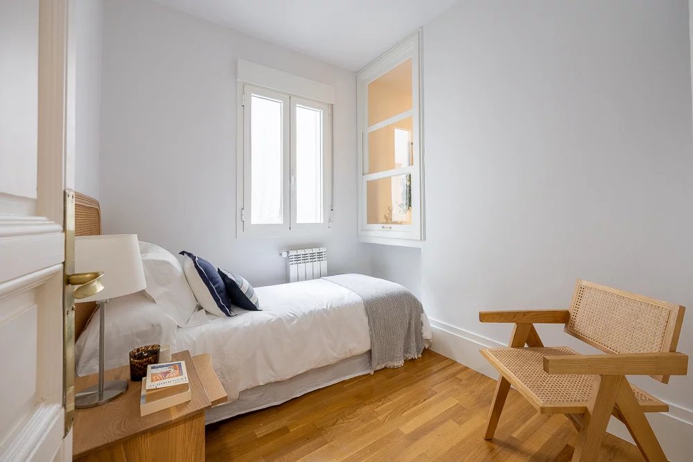 Cette propriété est située au premier étage d'un immeuble classique de 1910, dans une rue calme du quartier animé de Justicia, à proximité de la Plaza de las Salesas et du Paseo de Recoletos.
