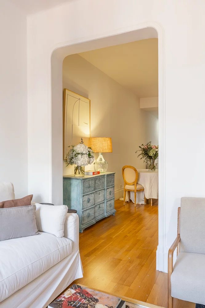 La surface construite est de 154 m². La salle de séjour est lumineuse grâce à ses deux balcons donnant sur la rue. A côté se trouve la salle à manger avec la cuisine ouverte récemment rénovée et entièrement équipée. Dans la partie nuit, nous trouvons une première chambre avec un lit simple, avec une salle de bain complète séparée, la chambre principale avec sa salle de bain complète en-suite et enfin une troisième chambre avec une autre salle de bain en-suite.