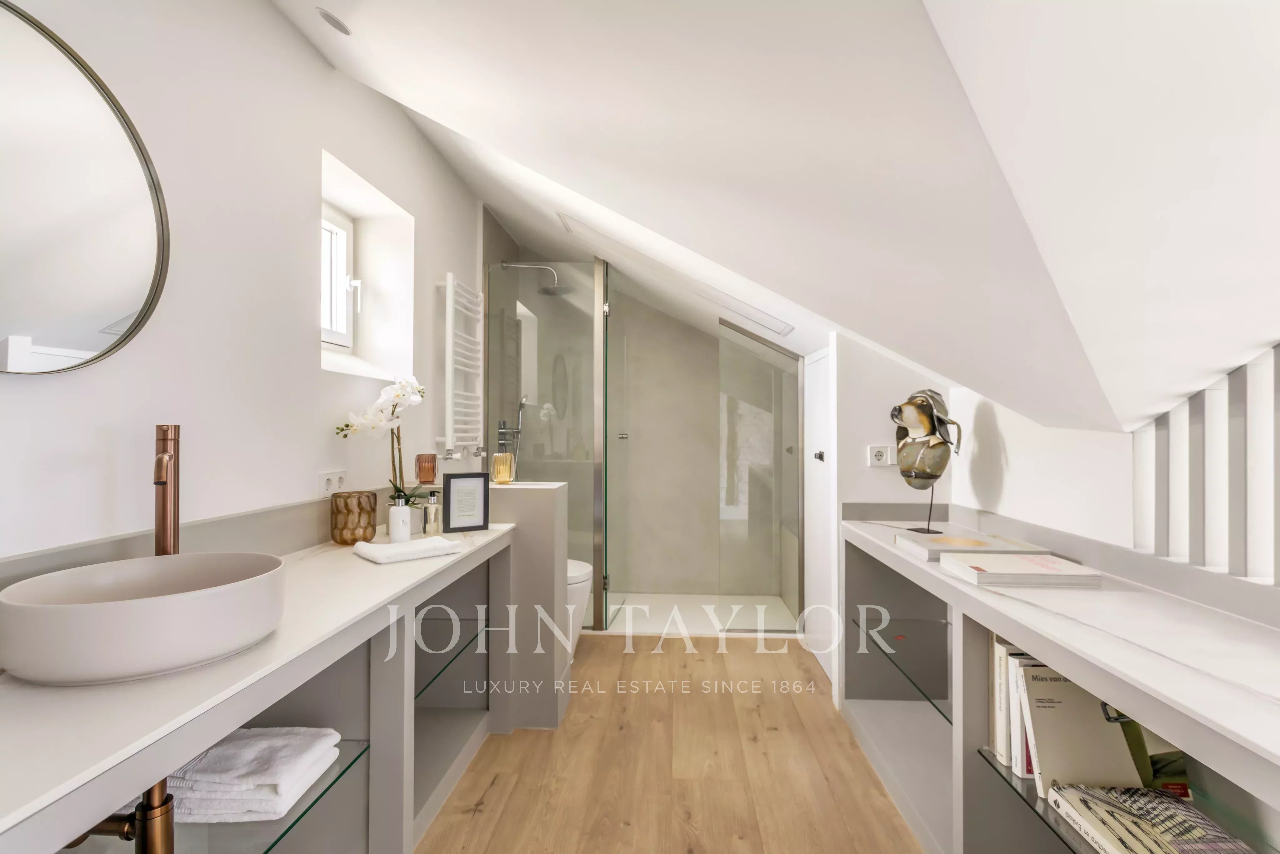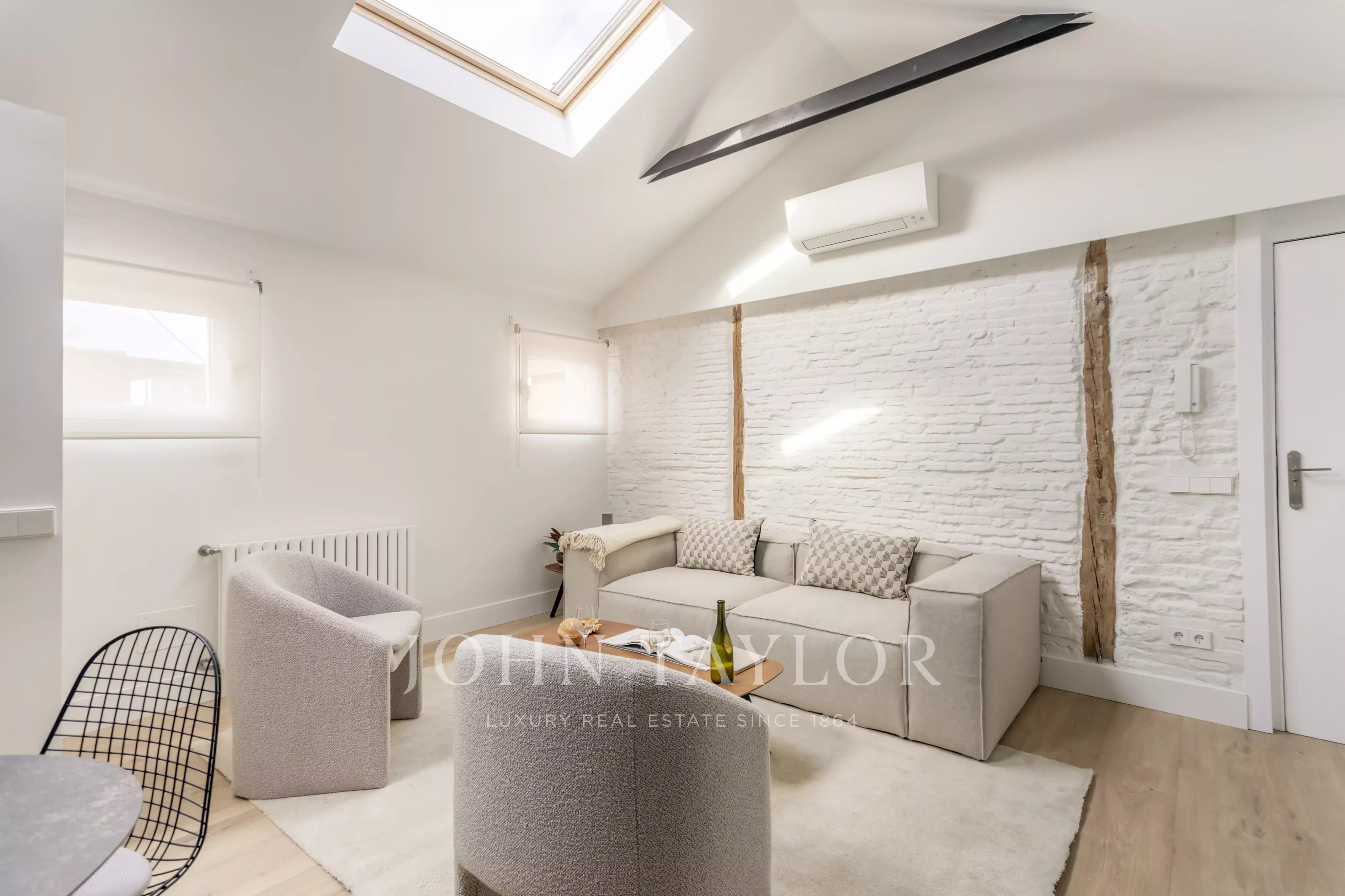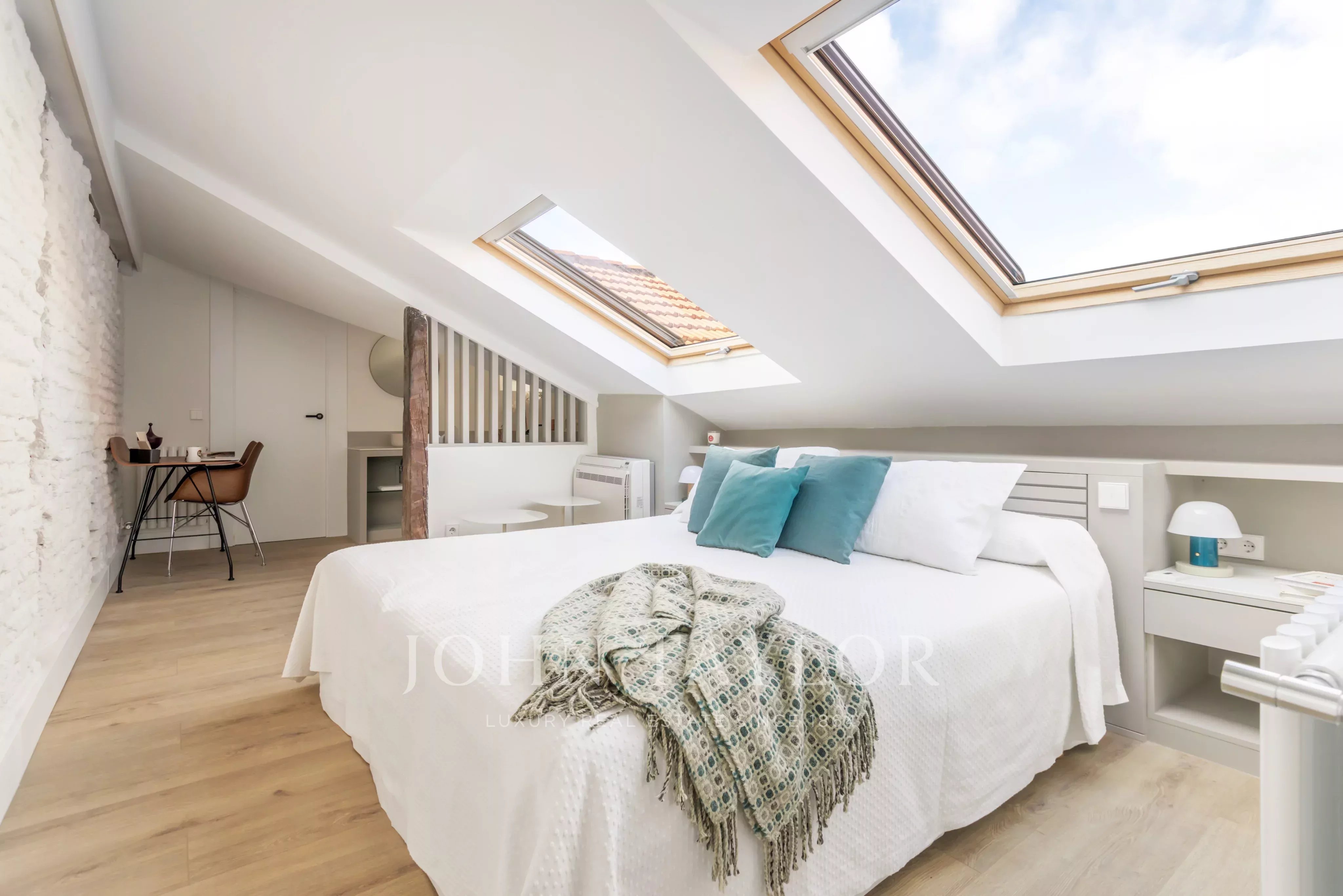 La propriété dispose de deux chambres et de deux salles de bains, avec une disposition équilibrée et fonctionnelle. La rénovation récente intègre des stores automatiques et des systèmes d'ouverture motorisés dans toutes les fenêtres de type Velux, garantissant le confort, l'efficacité et la gestion intuitive de la lumière naturelle dans tous les espaces.