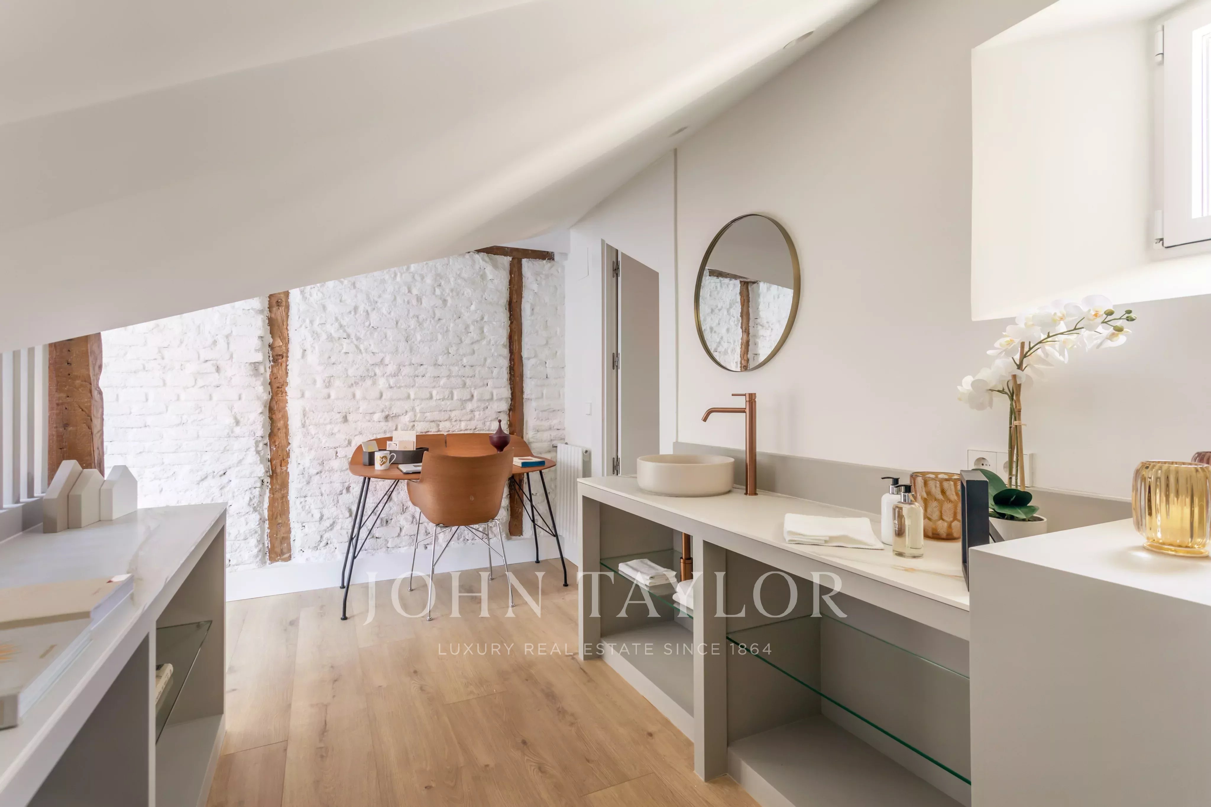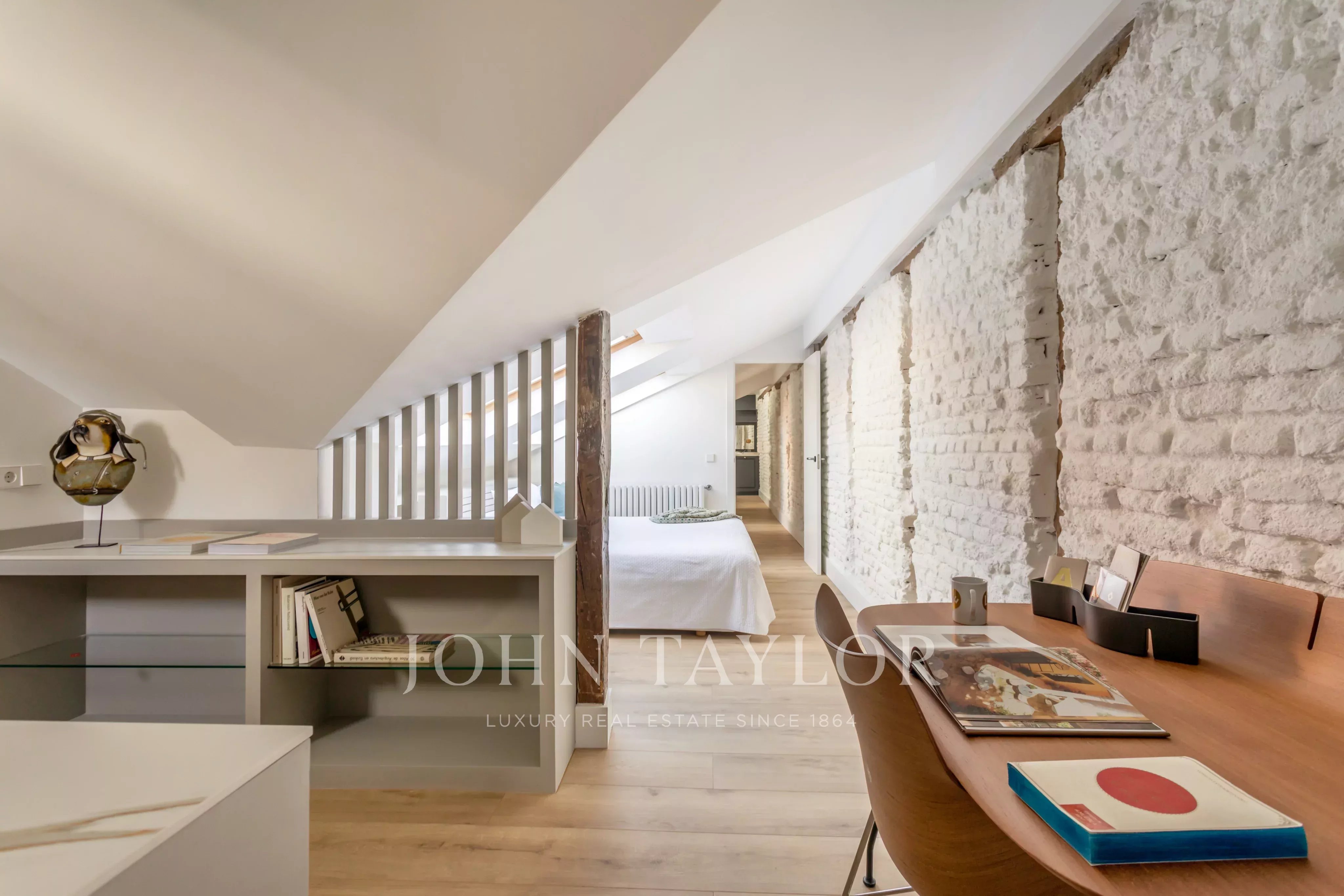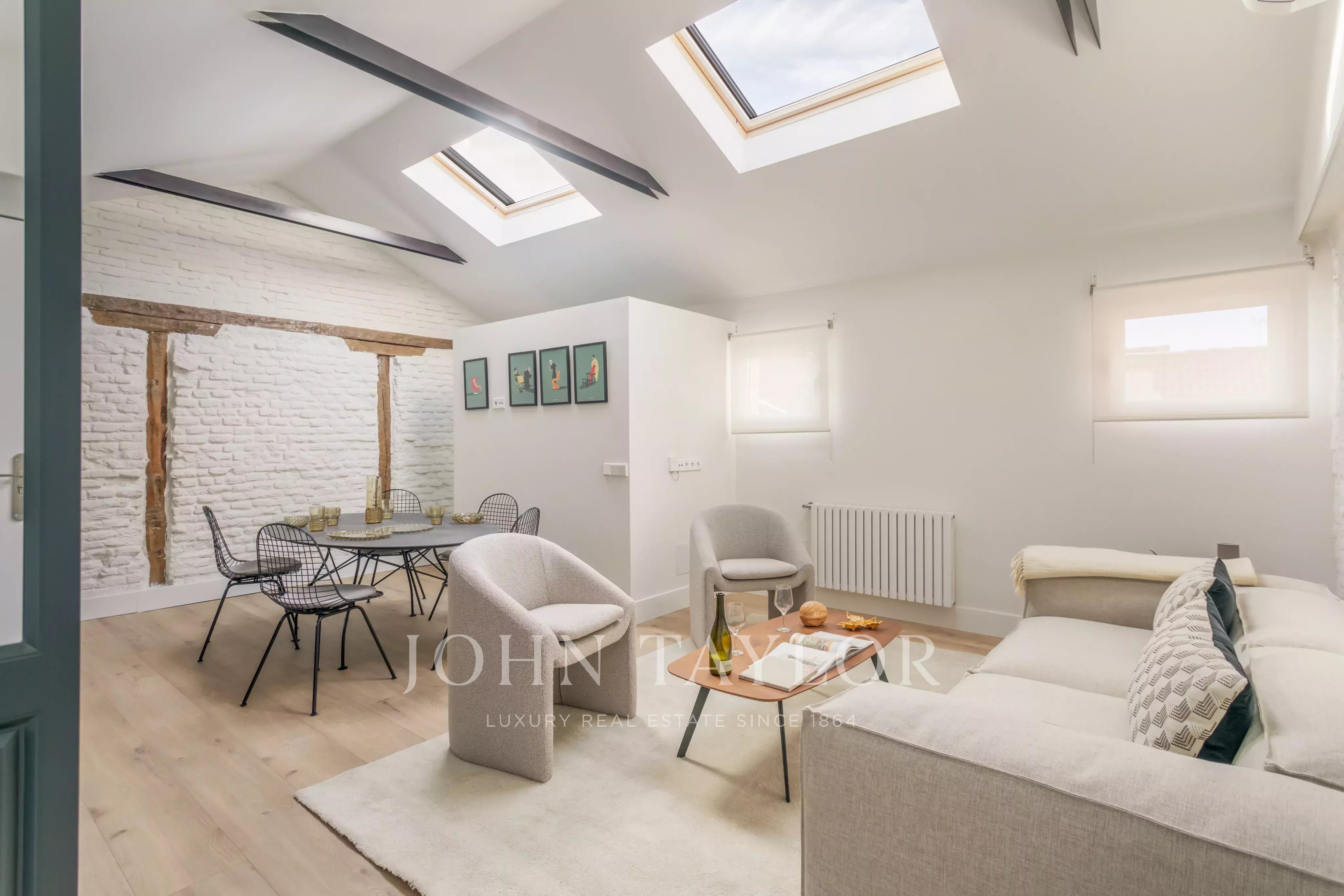 La propriété dispose de deux chambres et de deux salles de bains, avec une disposition équilibrée et fonctionnelle. La rénovation récente intègre des stores automatiques et des systèmes d'ouverture motorisés dans toutes les fenêtres de type Velux, garantissant le confort, l'efficacité et la gestion intuitive de la lumière naturelle dans tous les espaces.