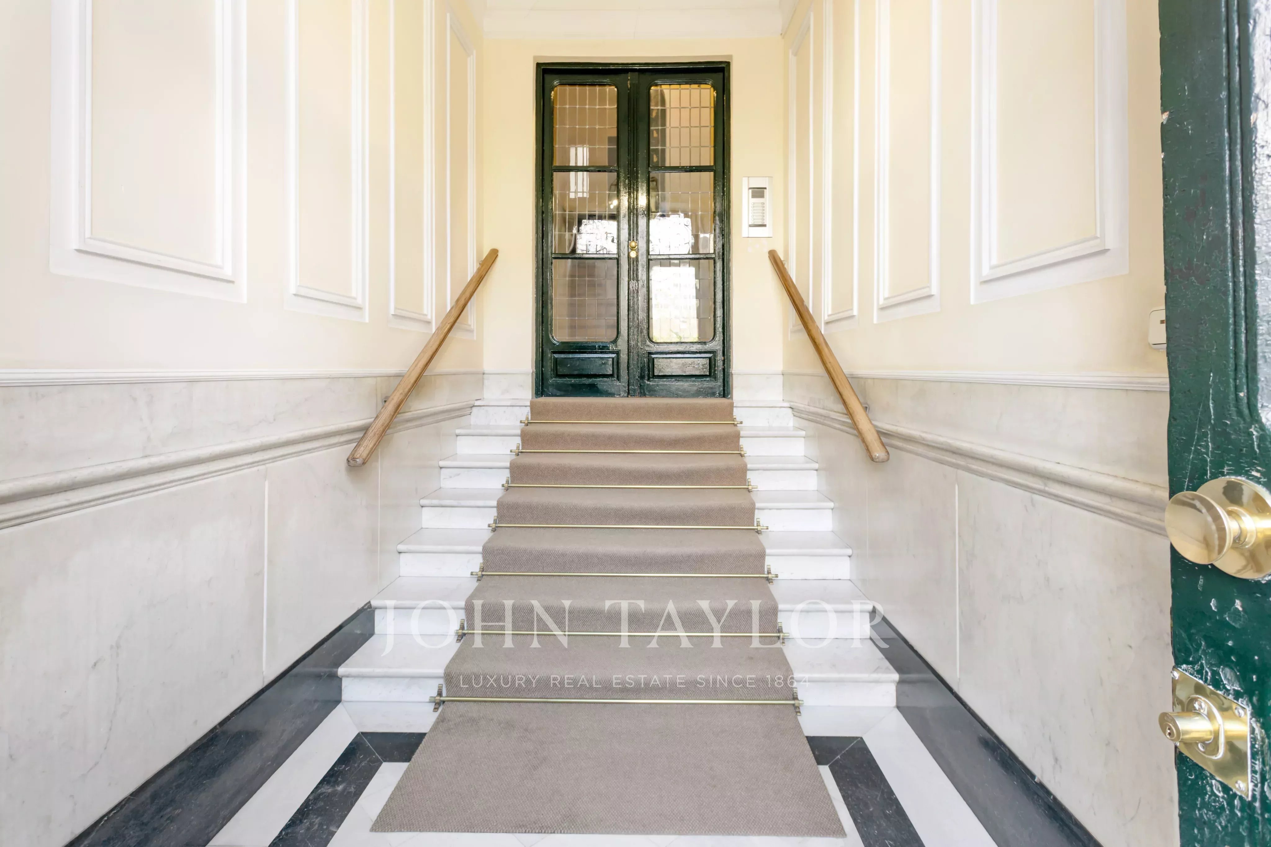 Située au cinquième étage extérieur, la propriété offre 143 m² d'espace de vie soigneusement conçu, avec des plafonds mansardés qui ajoutent du caractère, de l'espace et une personnalité unique. Le bâtiment, datant du début du 20ème siècle, conserve son essence majestueuse et dispose d'un ascenseur, une valeur ajoutée dans ce type de propriété historique.