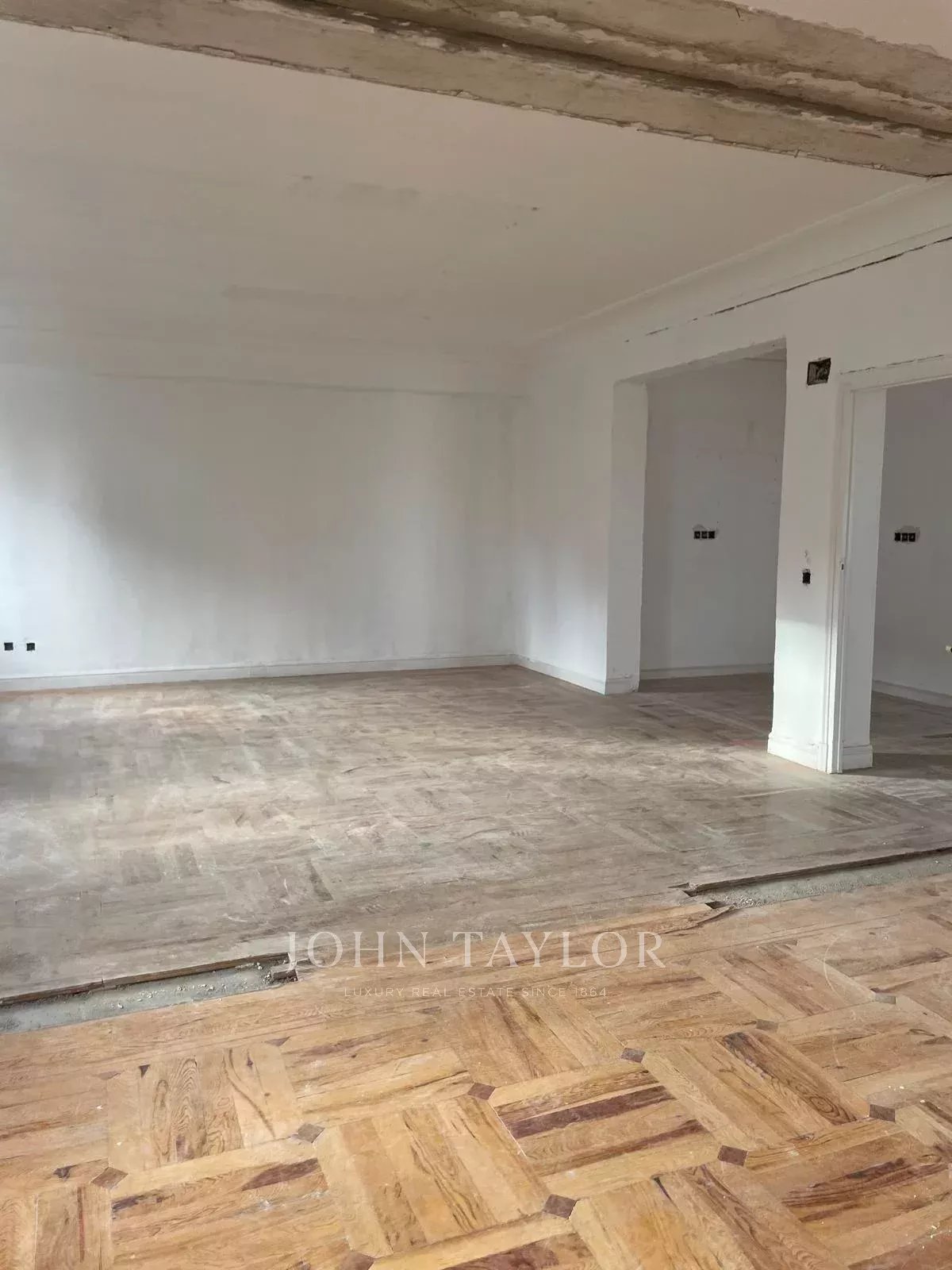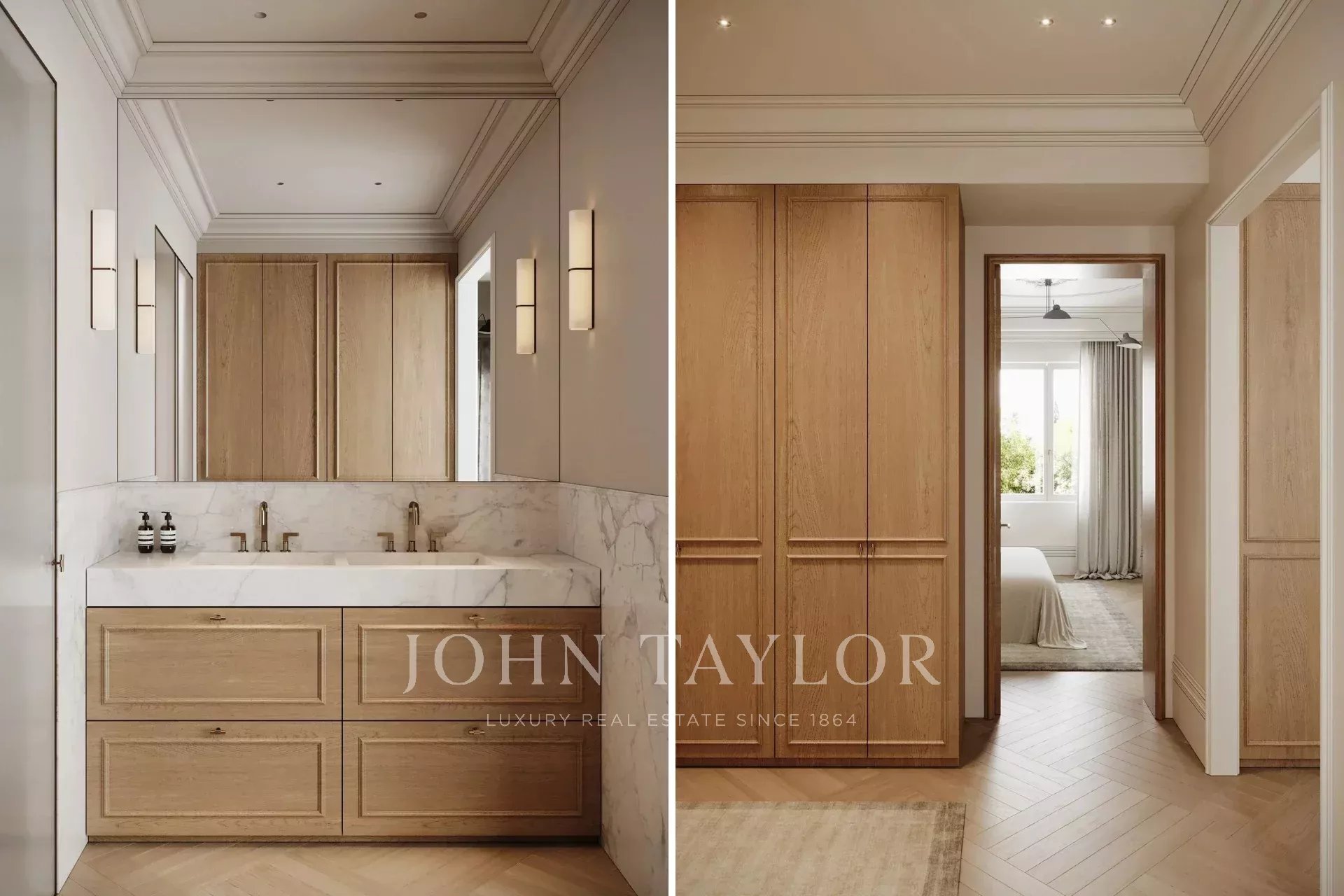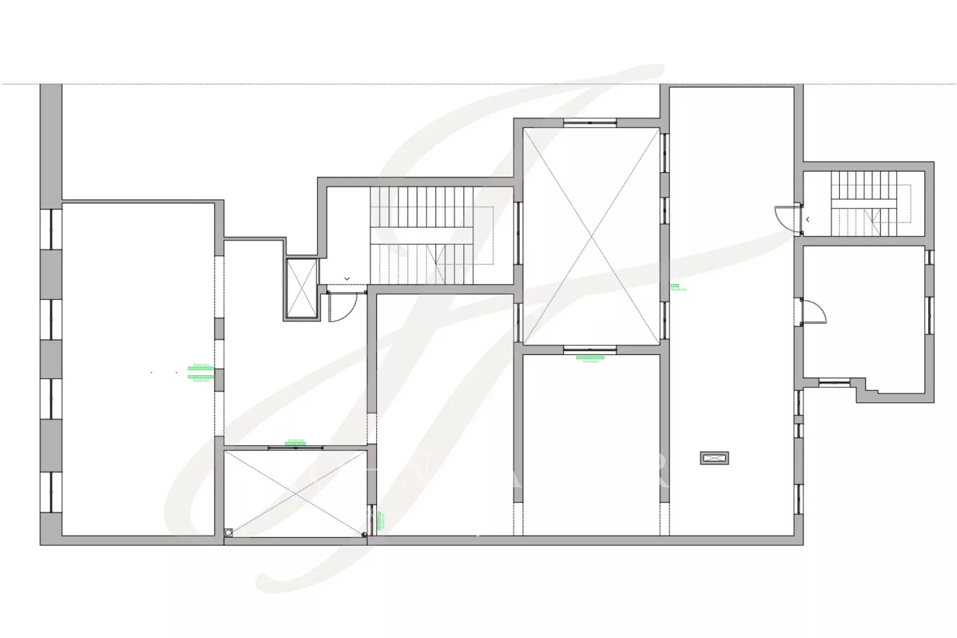 Entièrement à rénover, il se distingue par ses volumes généreux et son agencement pratiquement ouvert, qui permet une redistribution flexible et élégante. Le projet peut facilement accueillir trois ou quatre chambres avec salle de bains, un WC pour les invités, une chambre de service, une buanderie et un grand espace social conçu comme un grand espace continu.