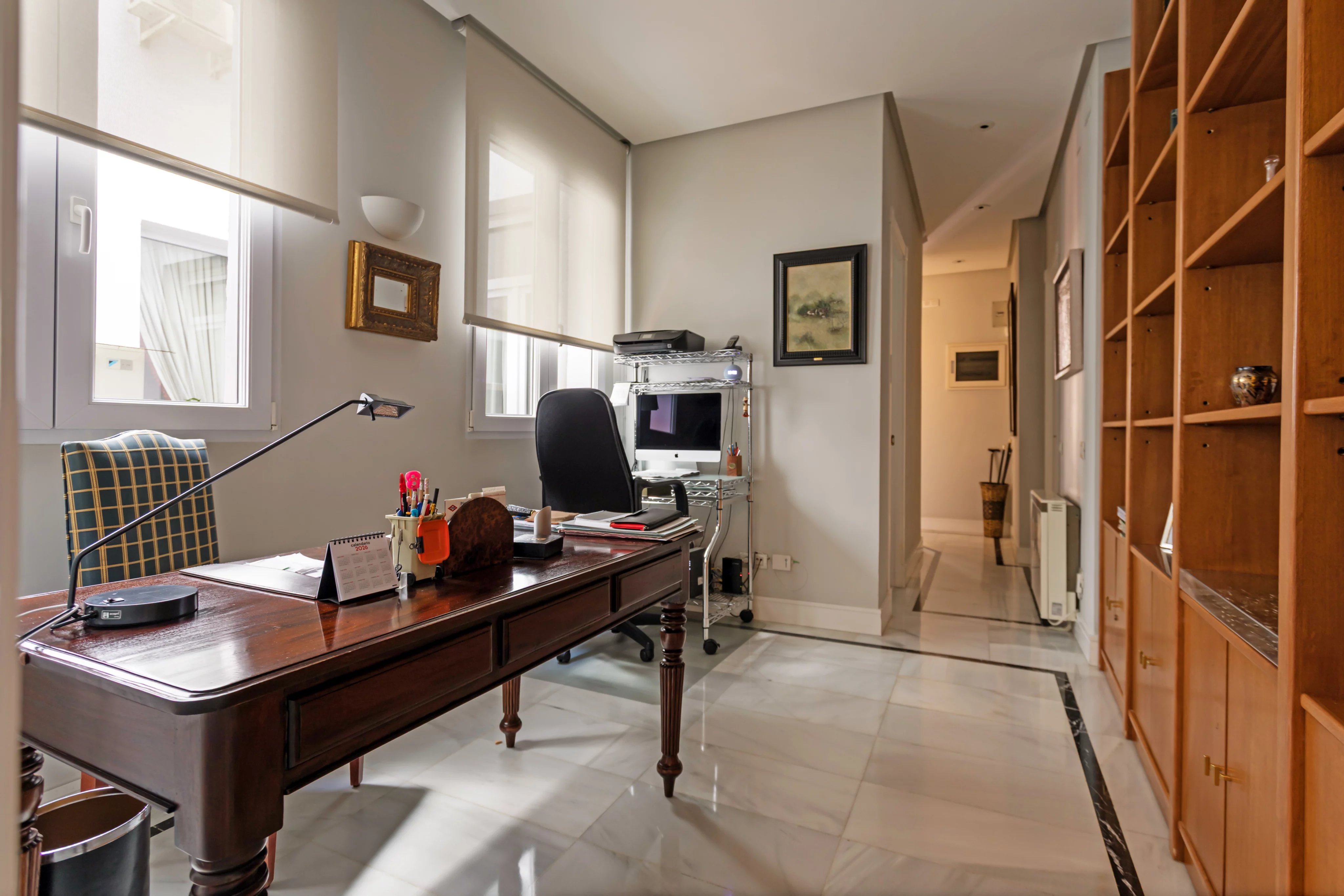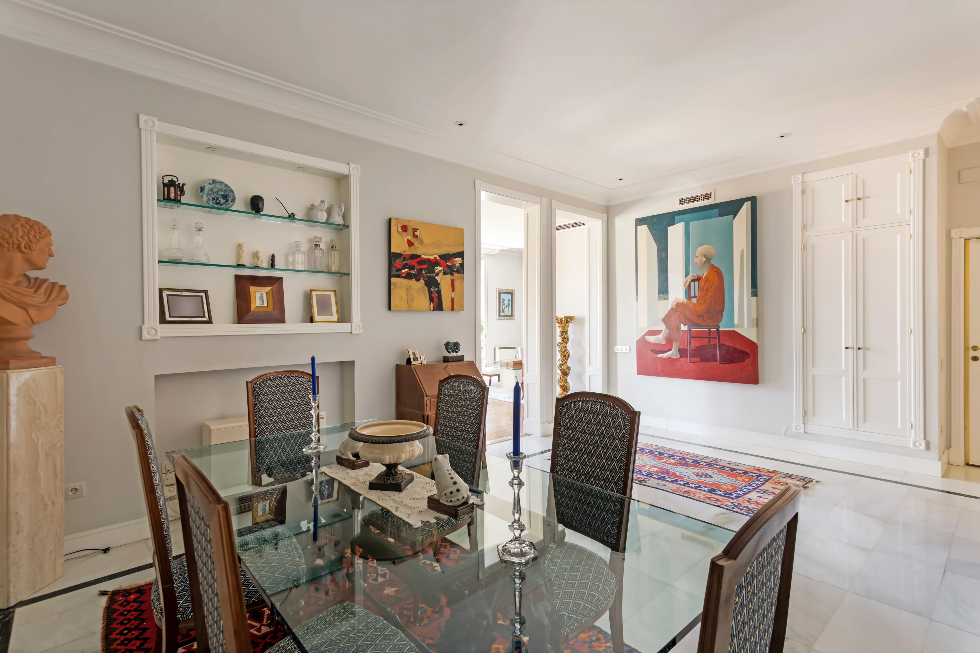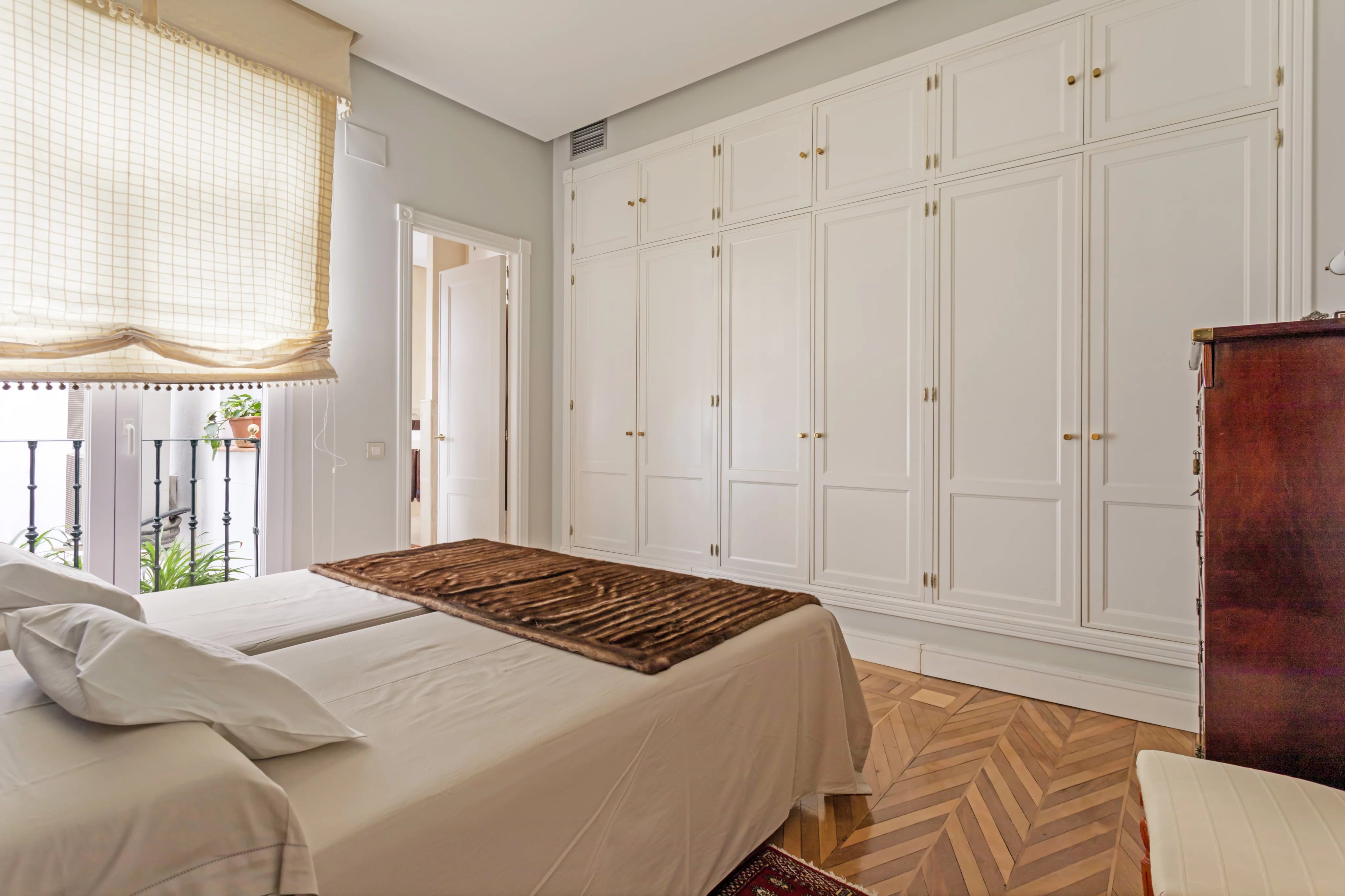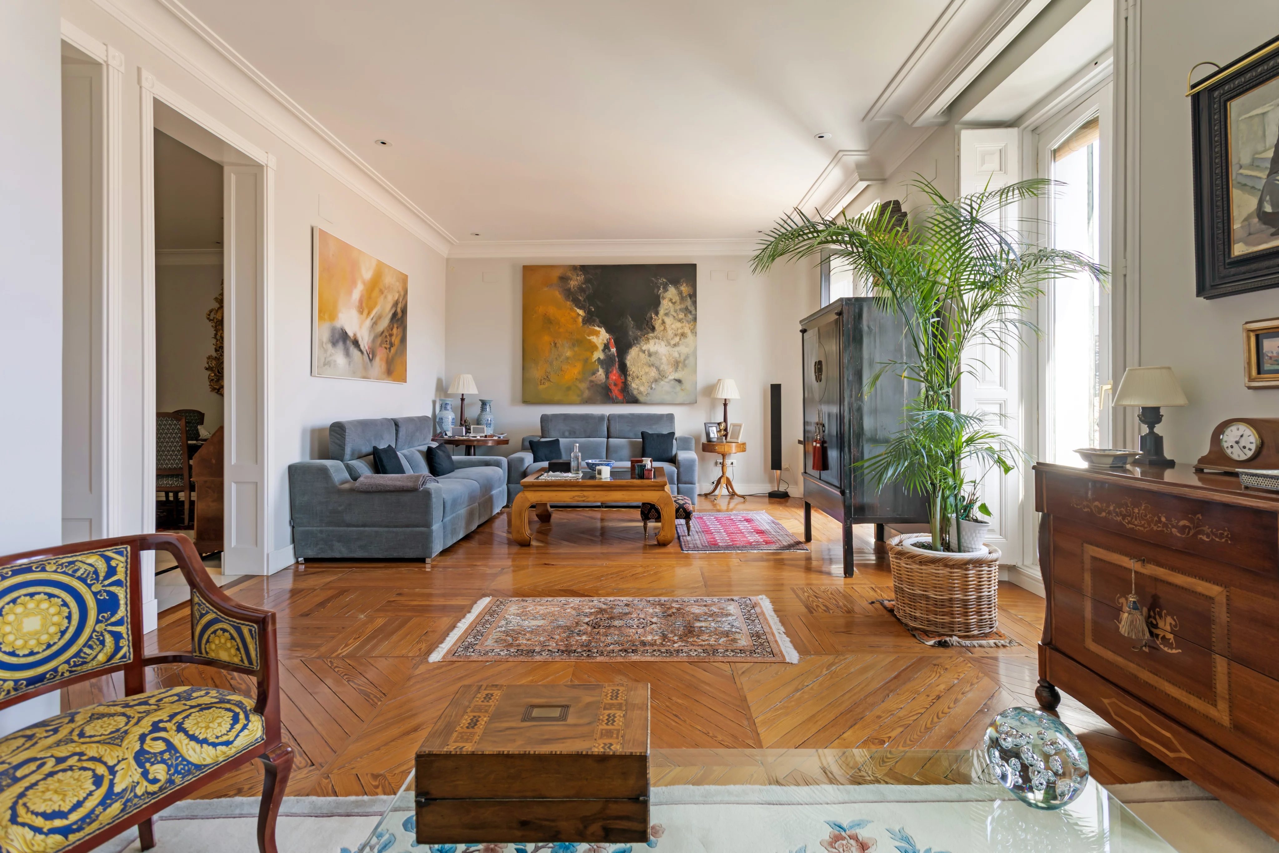 Le salon indépendant, orienté au sud-est, s'ouvre sur trois balcons extérieurs qui inondent la pièce de lumière naturelle et offrent une vue dégagée sur l'emblématique Couvent des Mercedarias Descalzas, apportant un caractère unique et profondément madrilène.