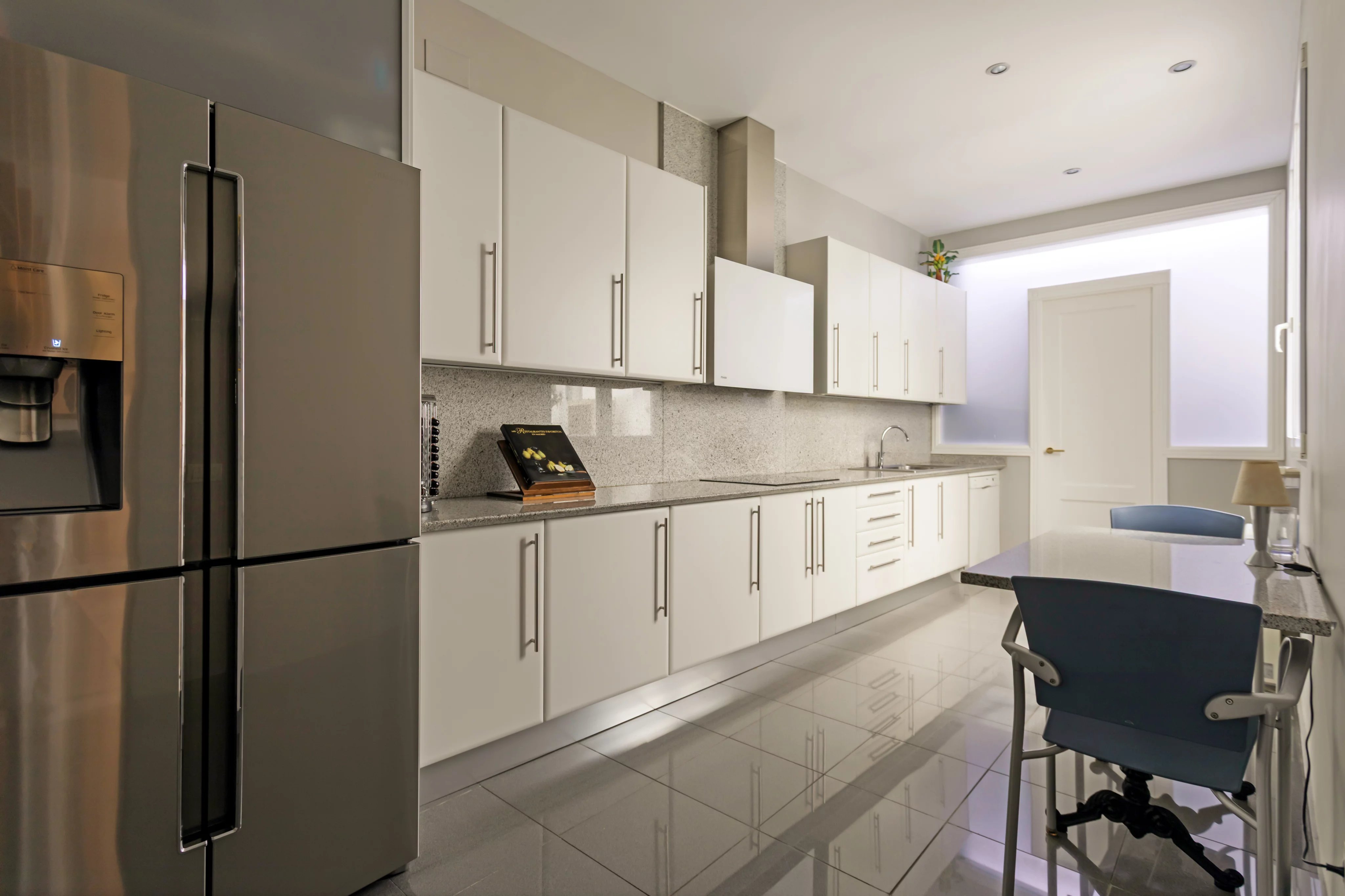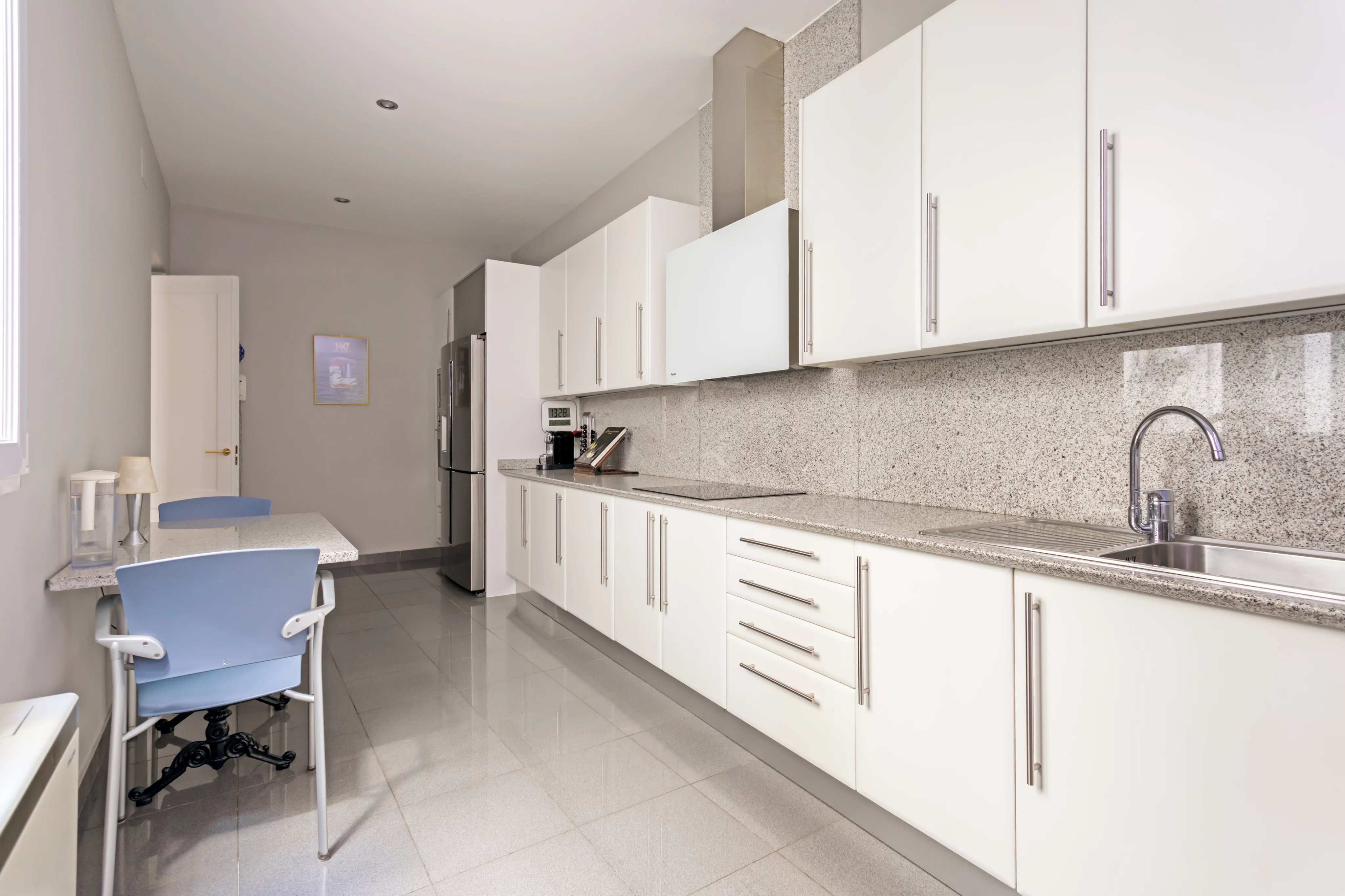 Elle dispose de deux salles de bain, avec la possibilité d'en ajouter une troisième, et d'une cuisine entièrement équipée alliant fonctionnalité et esthétique dans un espace lumineux et soigneusement aménagé.