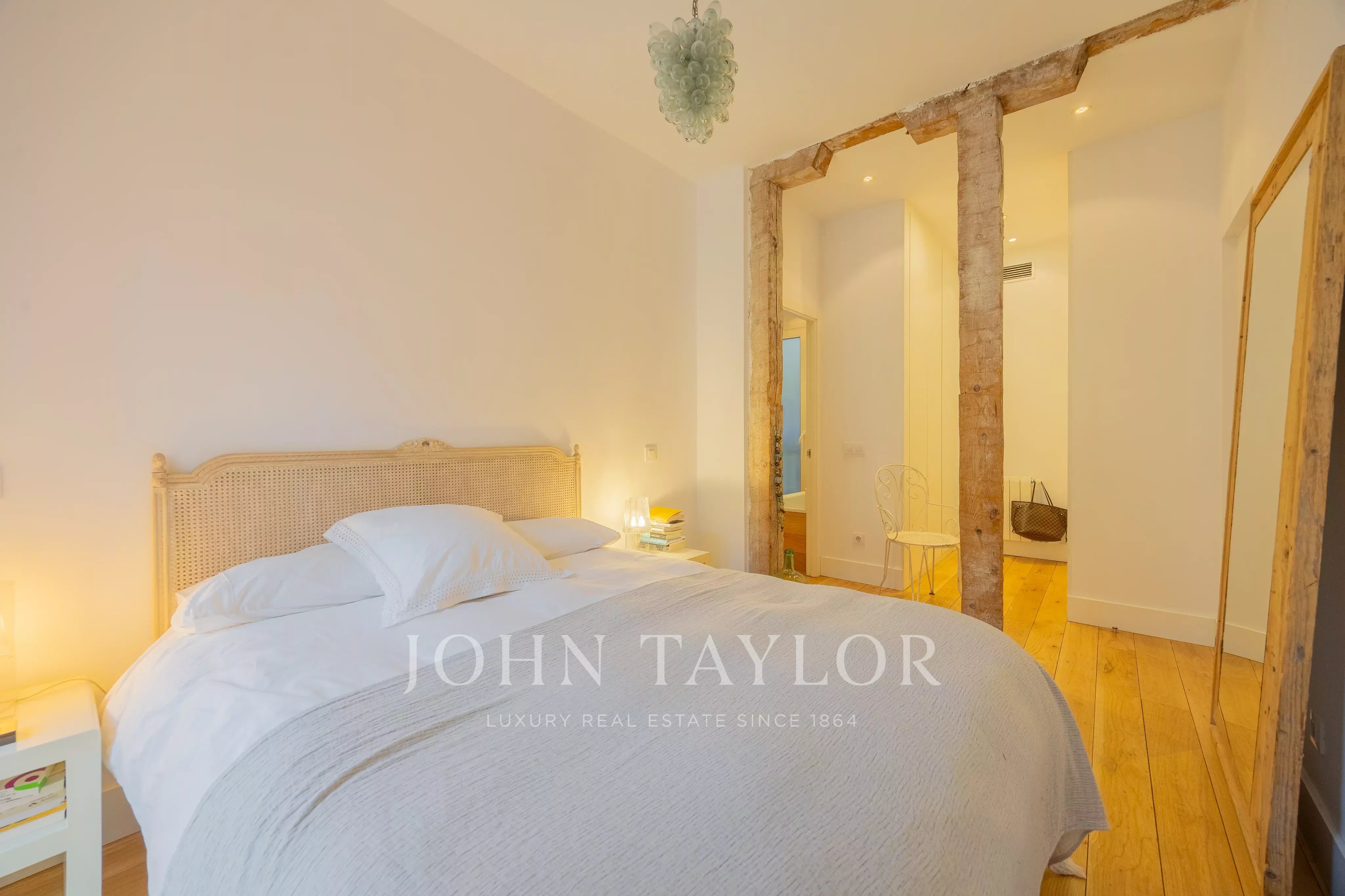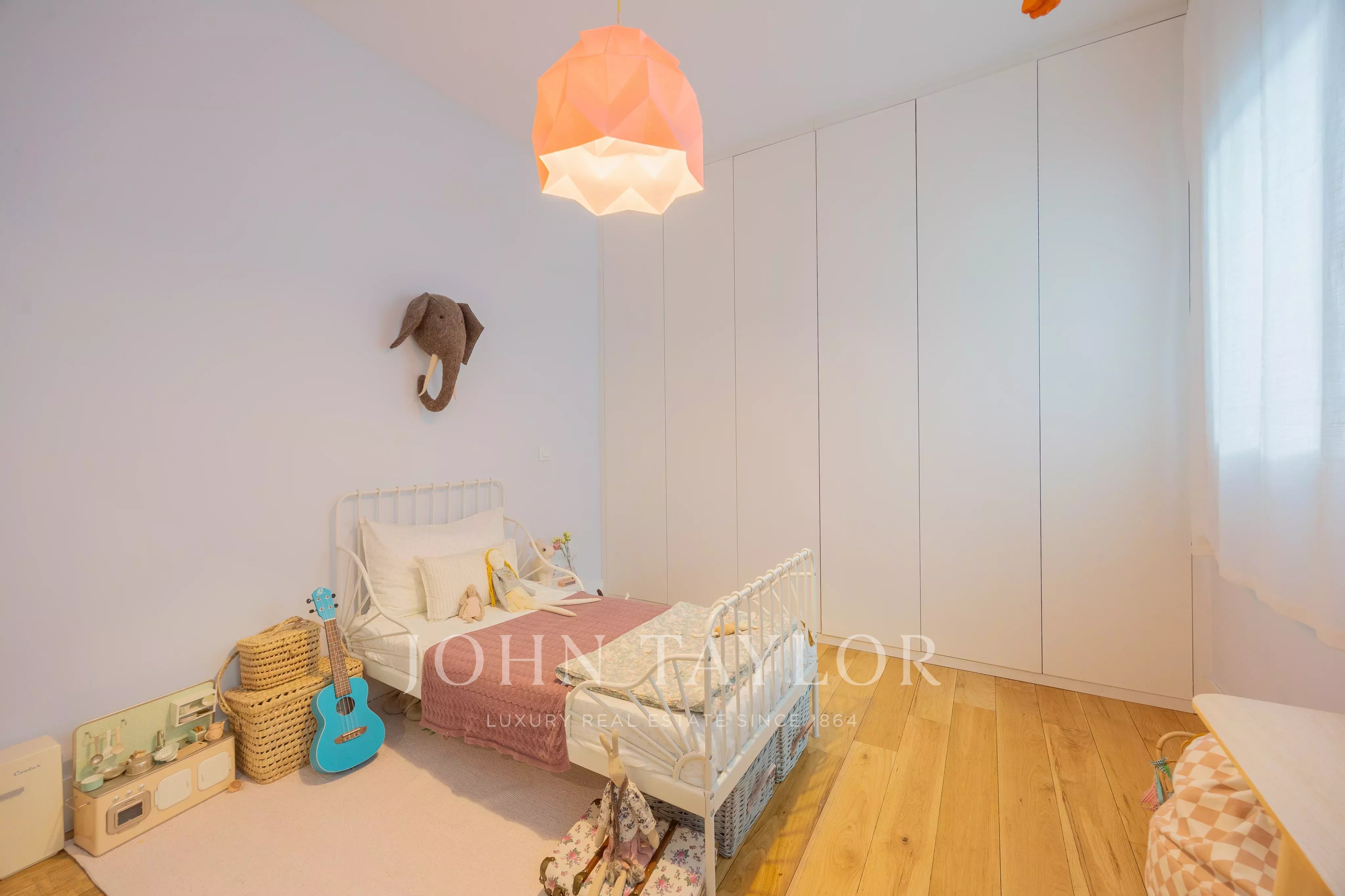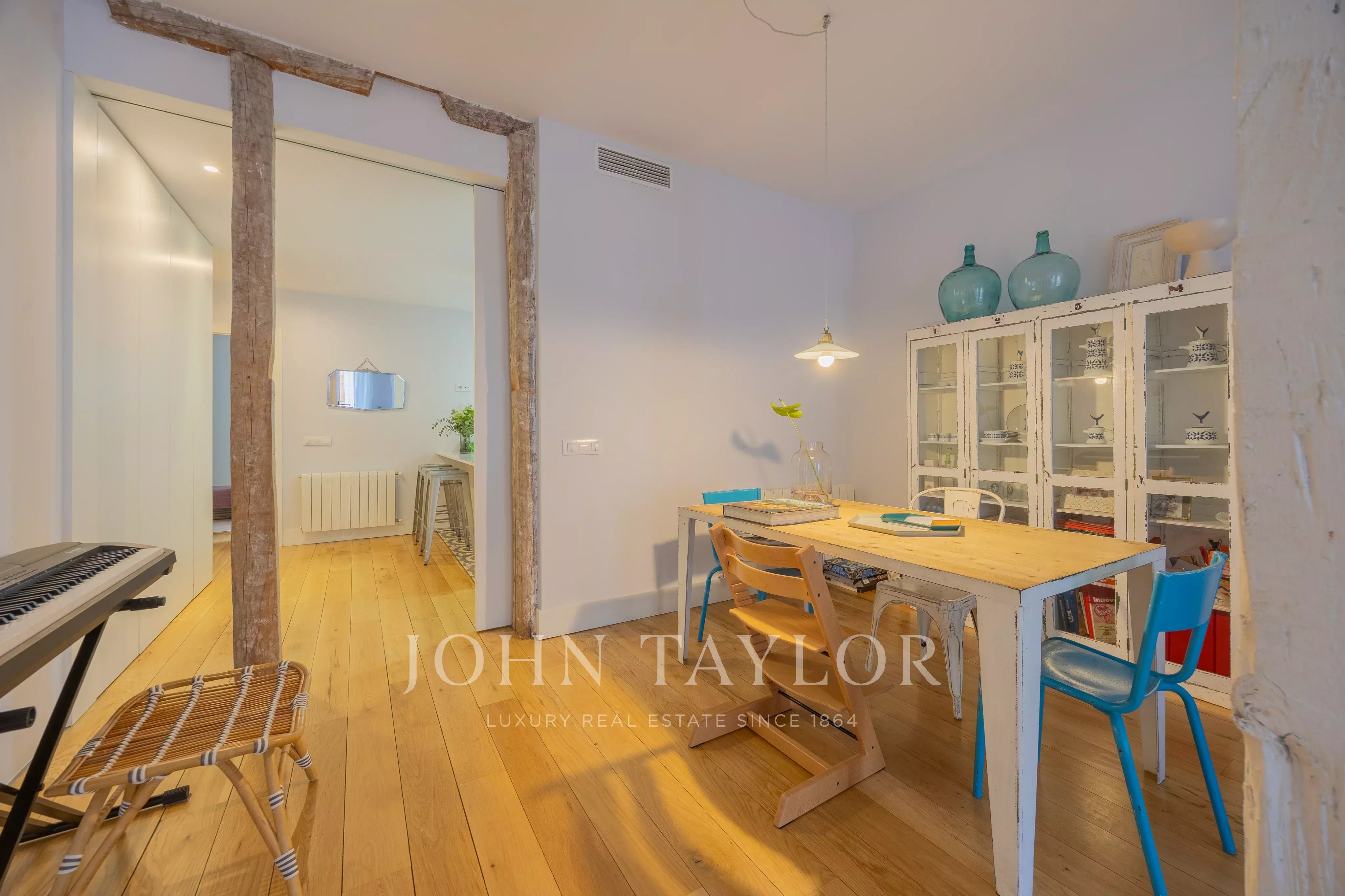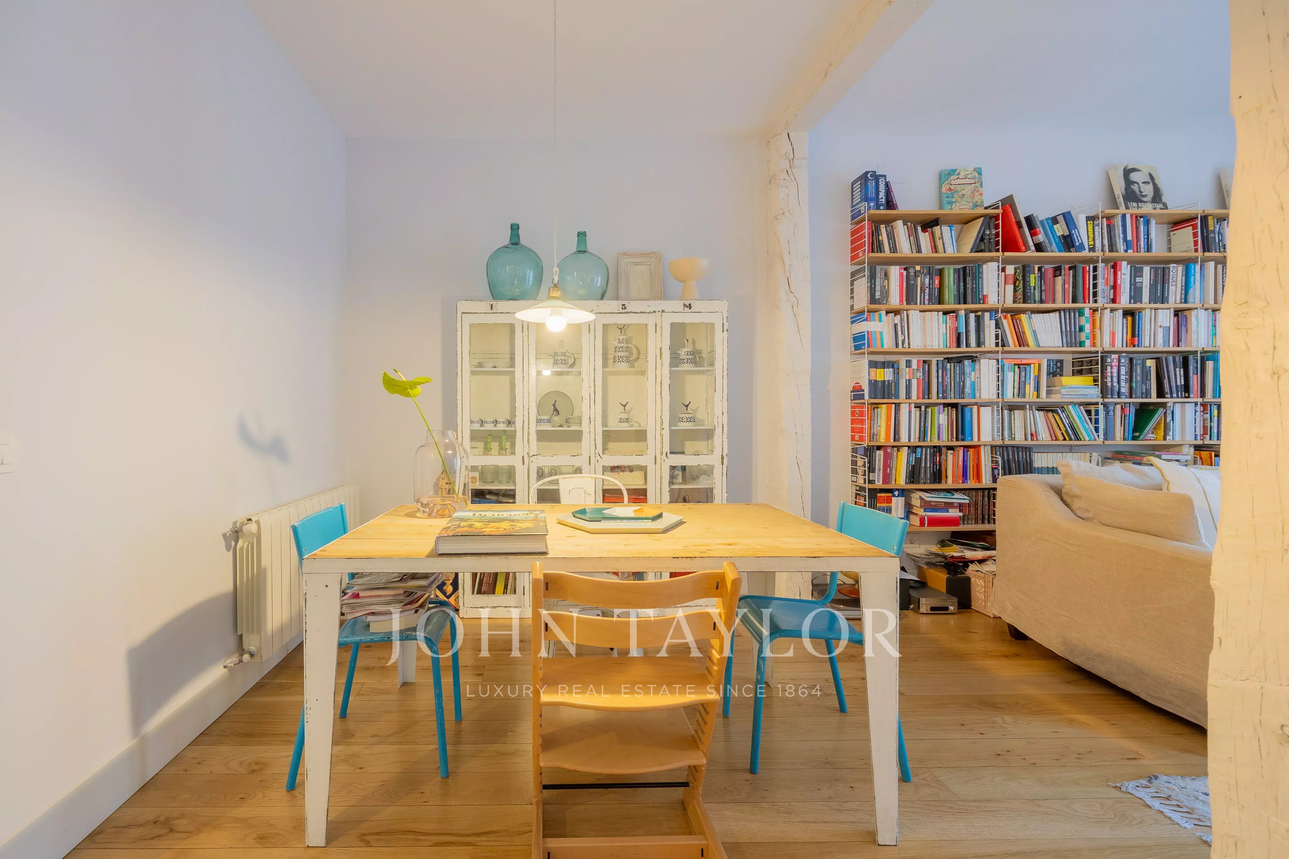 L'appartement se trouve dans un bâtiment à façade classique du XIXe siècle, avec une entrée soignée qui conserve l'ancienne passerelle pour calèches, un élément architectural de grande valeur apportant distinction et authenticité au bien.