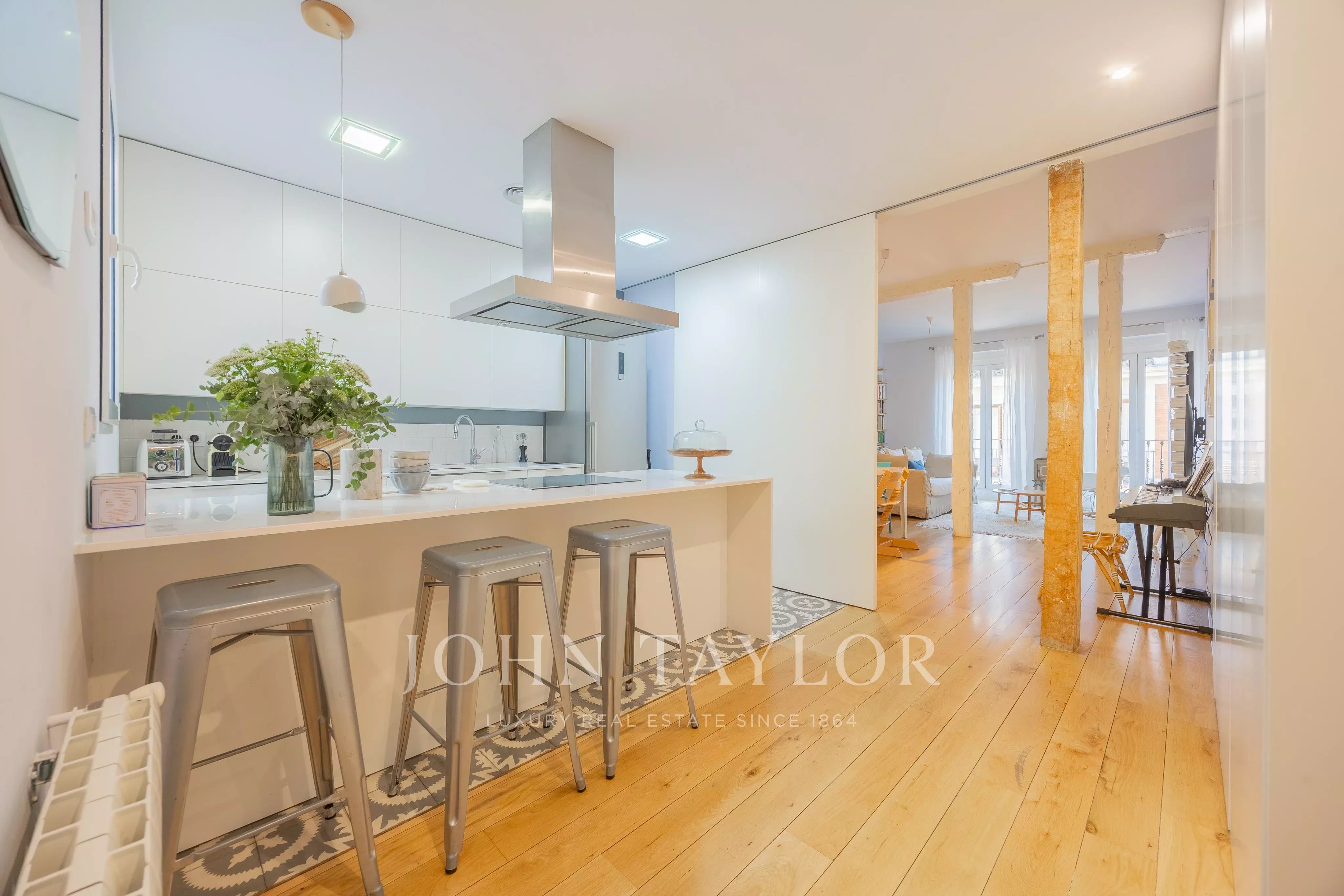 Parfait pour vivre ou investir, cet appartement offre tranquillité et intimité sans renoncer à la vie urbaine vibrante du quartier élégant de Salesas à Madrid.