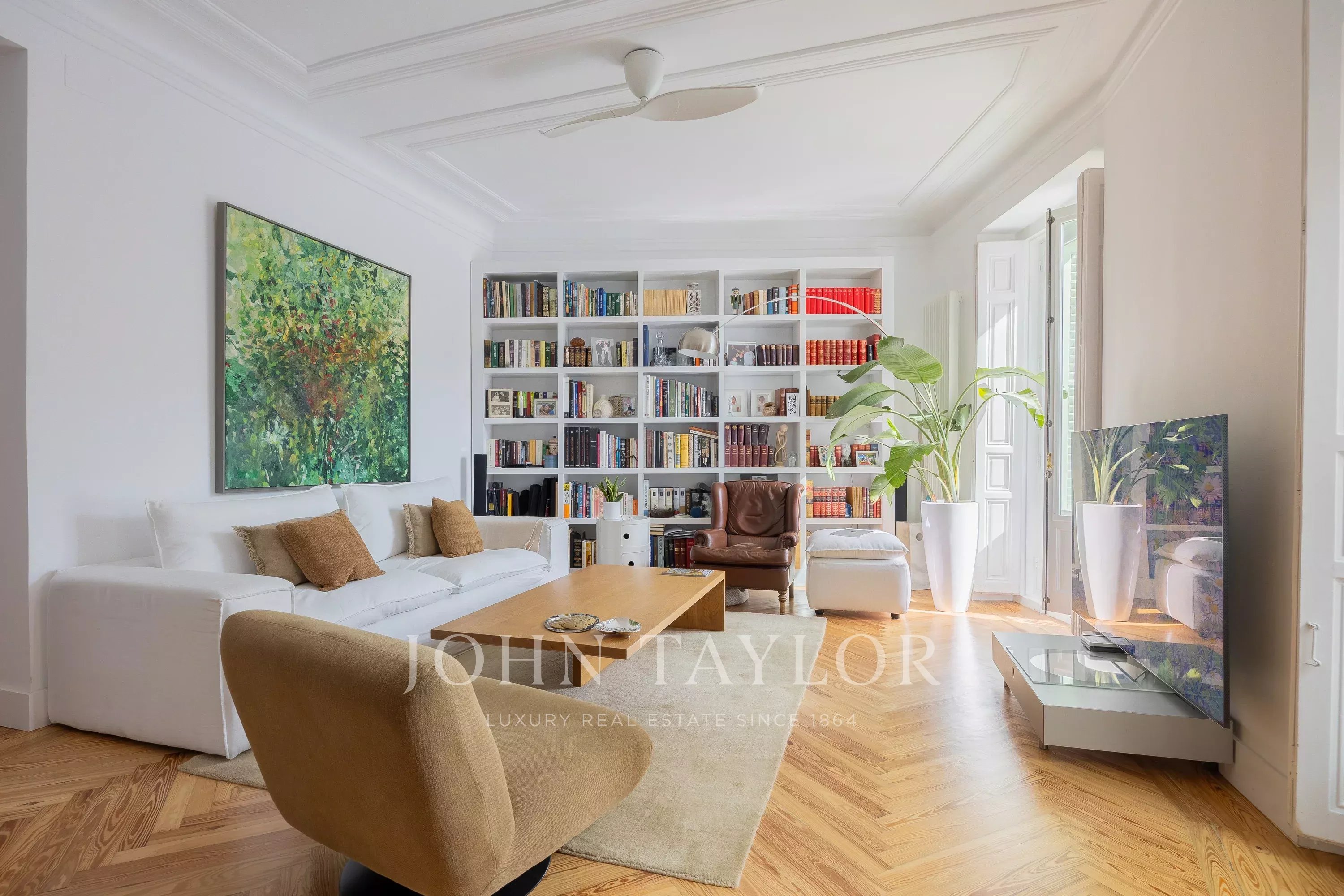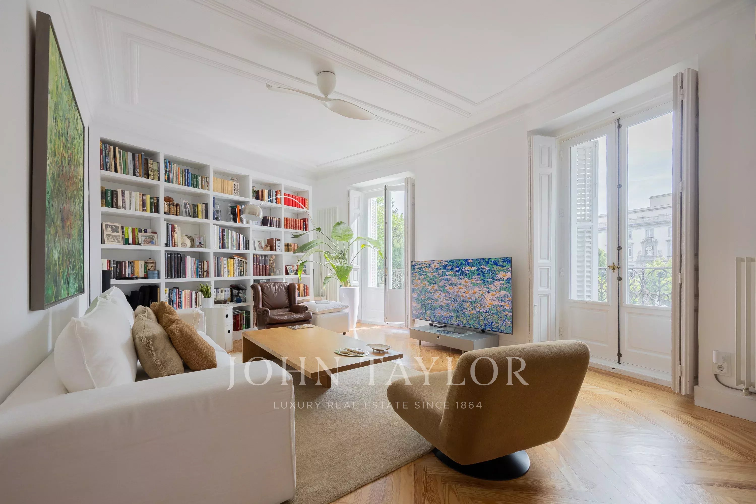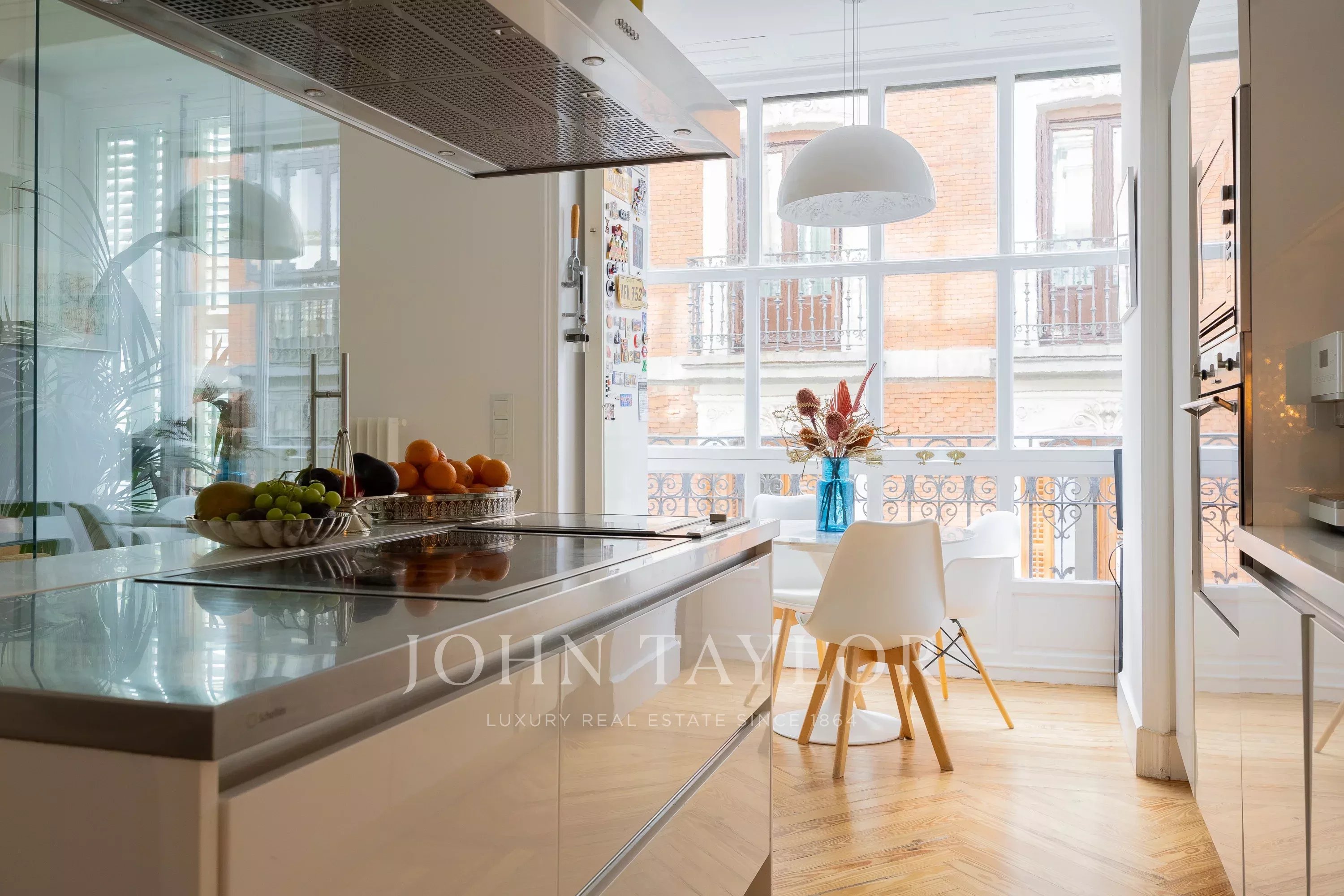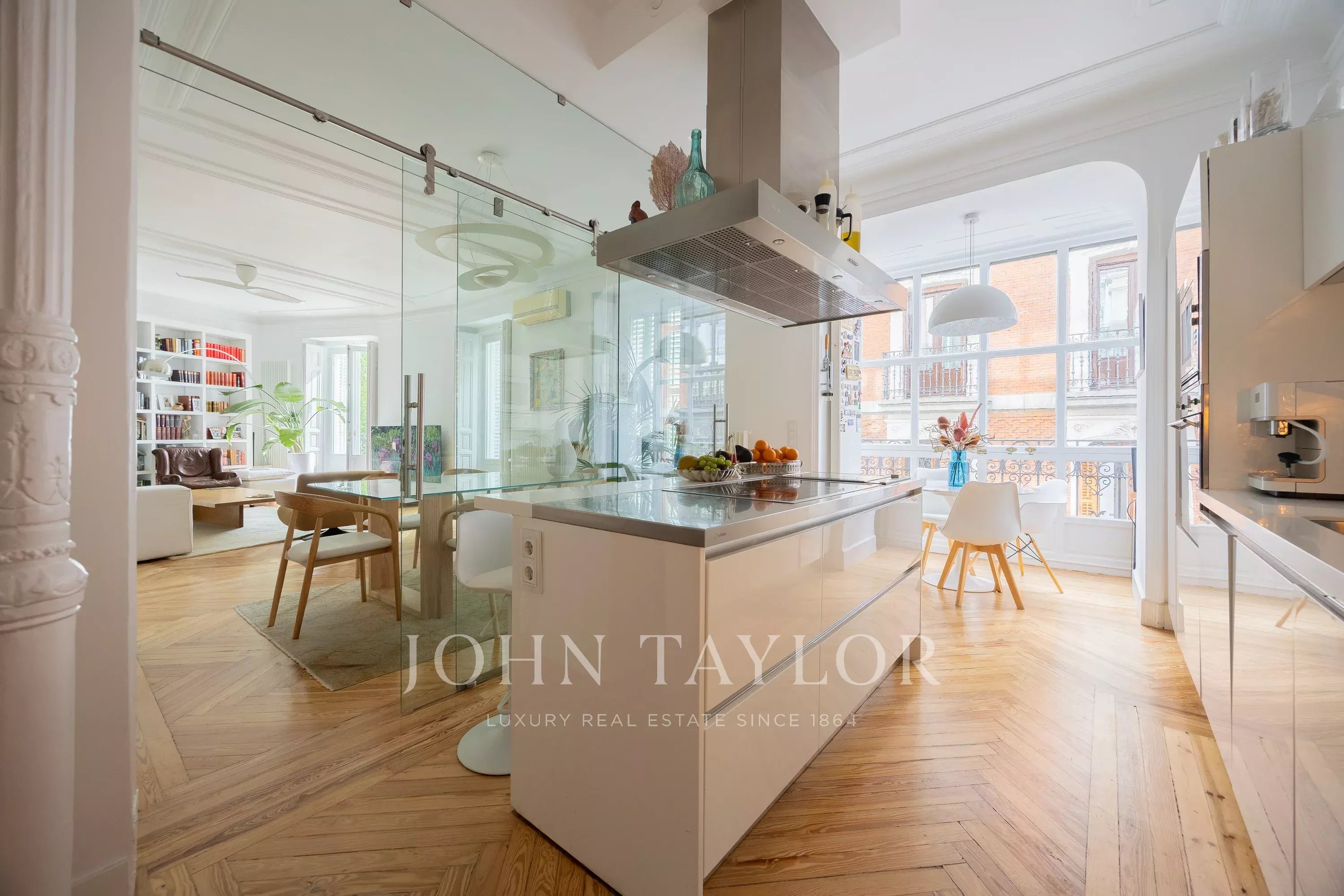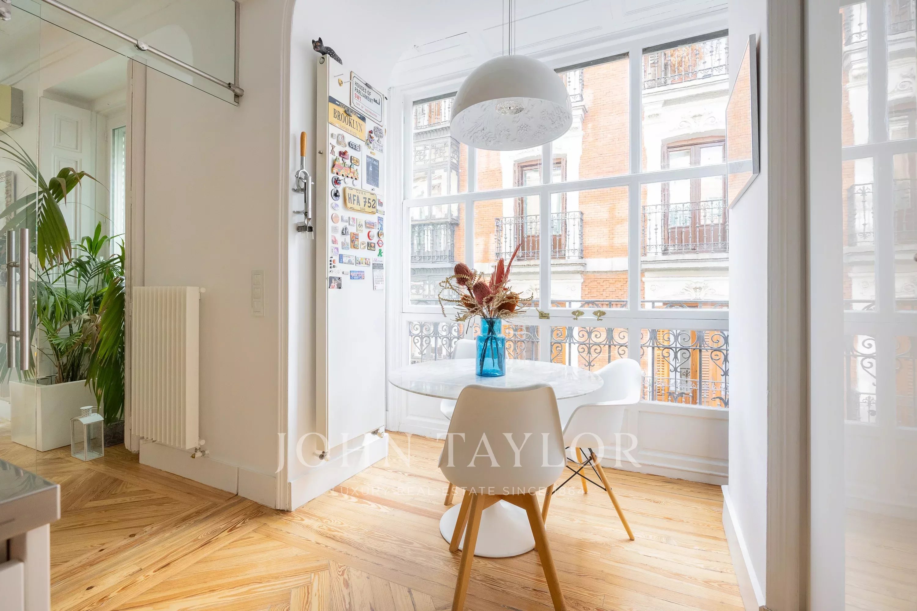 Située dans l'une des adresses les plus prisées du quartier de Justicia, cette propriété distinguée de 188 m² offre une combinaison exceptionnelle d'espace, de lumière et de sophistication. Ses quatre balcons, orientés vers la Plaza de las Salesas et l'Église de Santa Bárbara, inondent les pièces de lumière naturelle et offrent des vues privilégiées en plein centre de la capitale.