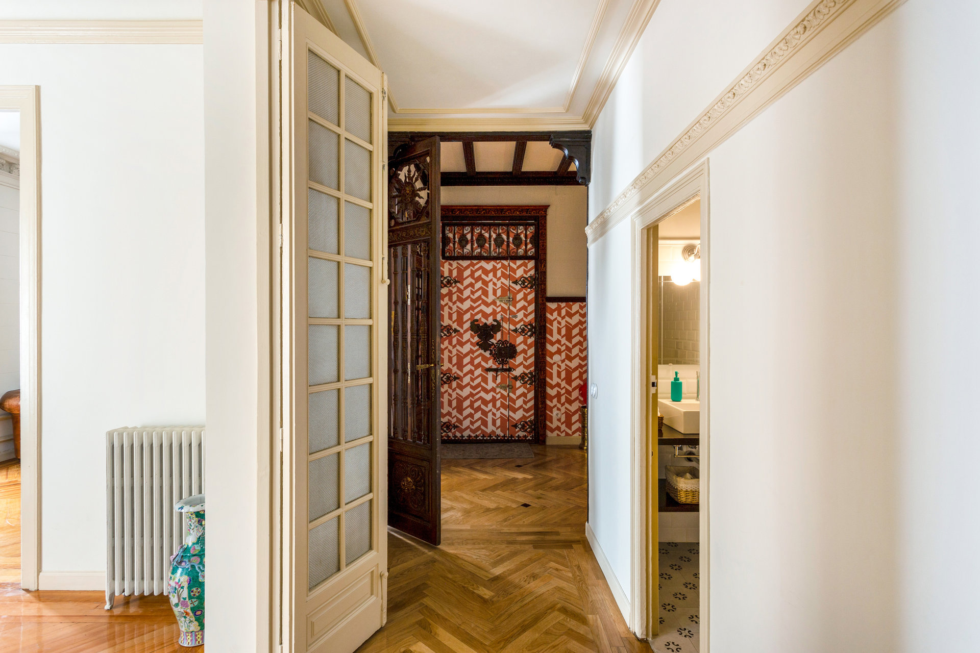 Impressionnant appartement de 296 m2 à Justicia dans un immeuble classique datant du début du 20ème siècle. Ses plafonds, de plus de 3 mètres de haut avec des moulures d'origine, donnent à la propriété sa saveur classique sans préjudice de sa rénovation récente, ce qui en fait un grand appartement familial dans le vibrant Barrio de Justicia, en plein centre de Madrid.