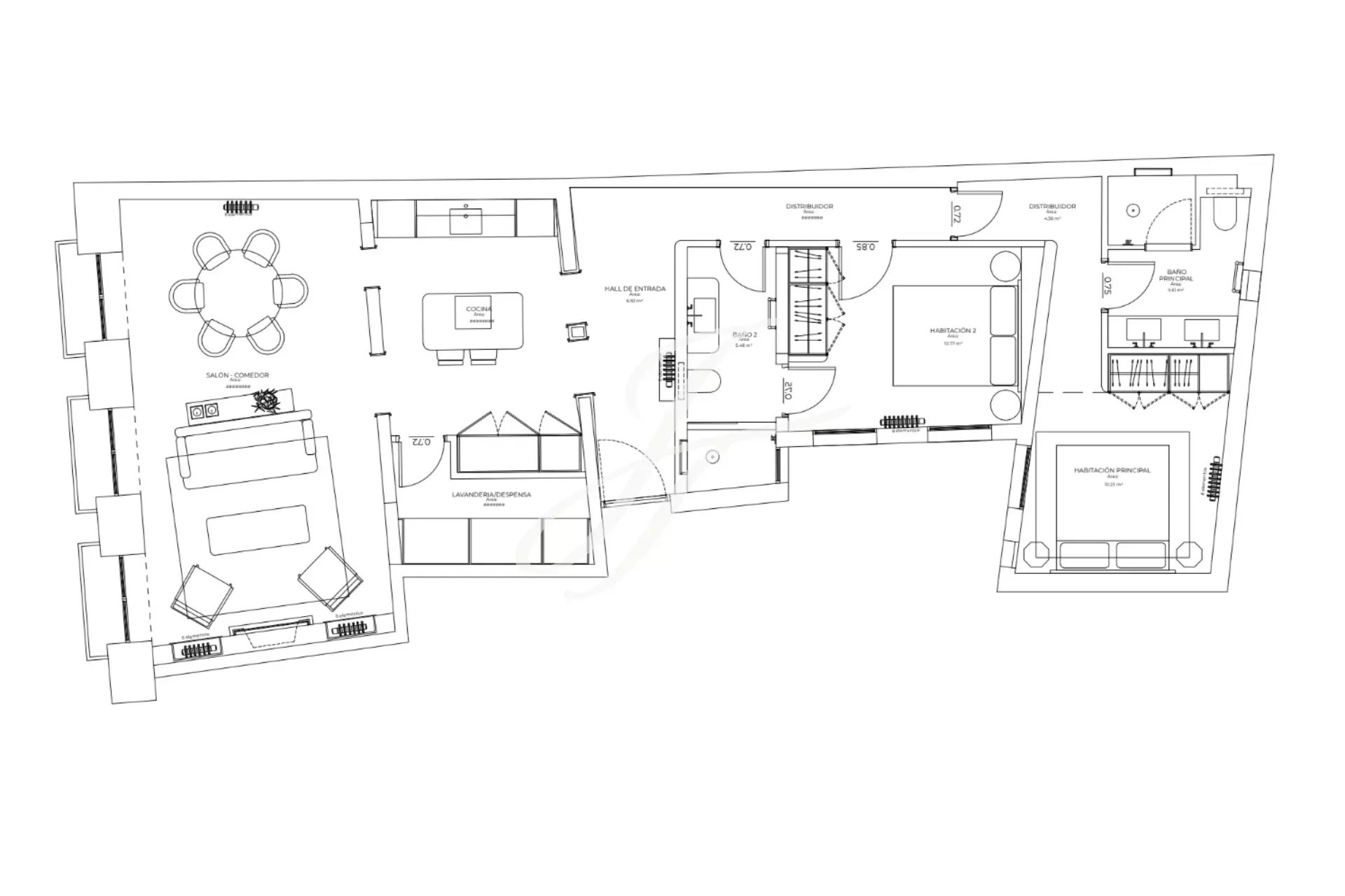 Avec deux chambres, deux salles de bains et trois balcons qui inondent la propriété de lumière naturelle, chaque espace a été conçu pour maximiser l'espace, la luminosité et l'élégance. La hauteur des plafonds et l'orientation de la propriété renforcent la sensation d'espace, créant une atmosphère accueillante et sophistiquée.