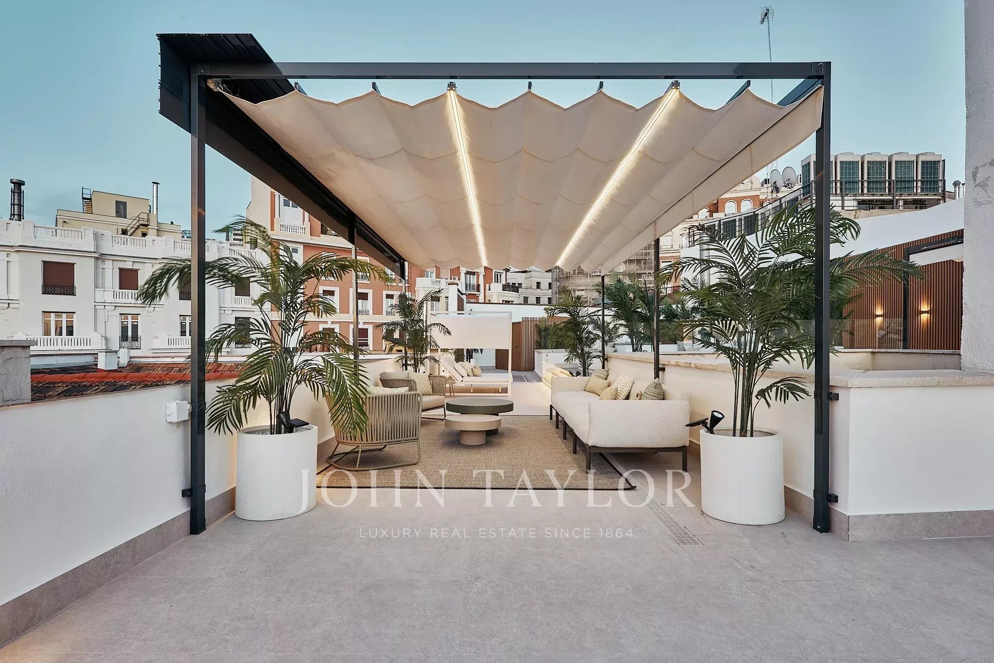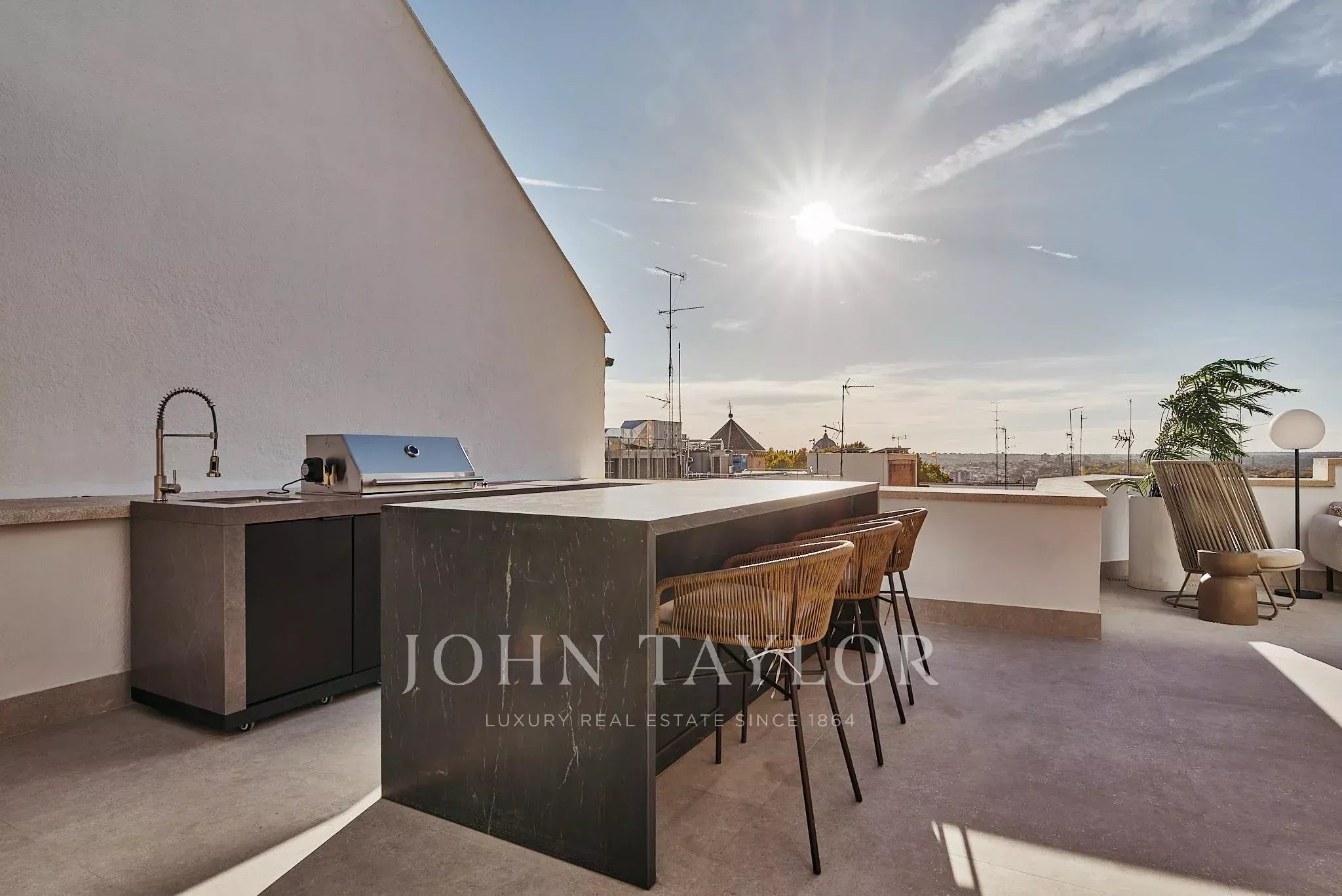 Le véritable atout est son espace extérieur impressionnant de 301 m², une terrasse unique qui redéfinit la vie en ville. Conçue comme une extension naturelle de l'intérieur, elle propose différentes zones de repos, de restauration et de loisirs en plein air, ainsi qu'une piscine privée exclusive.
