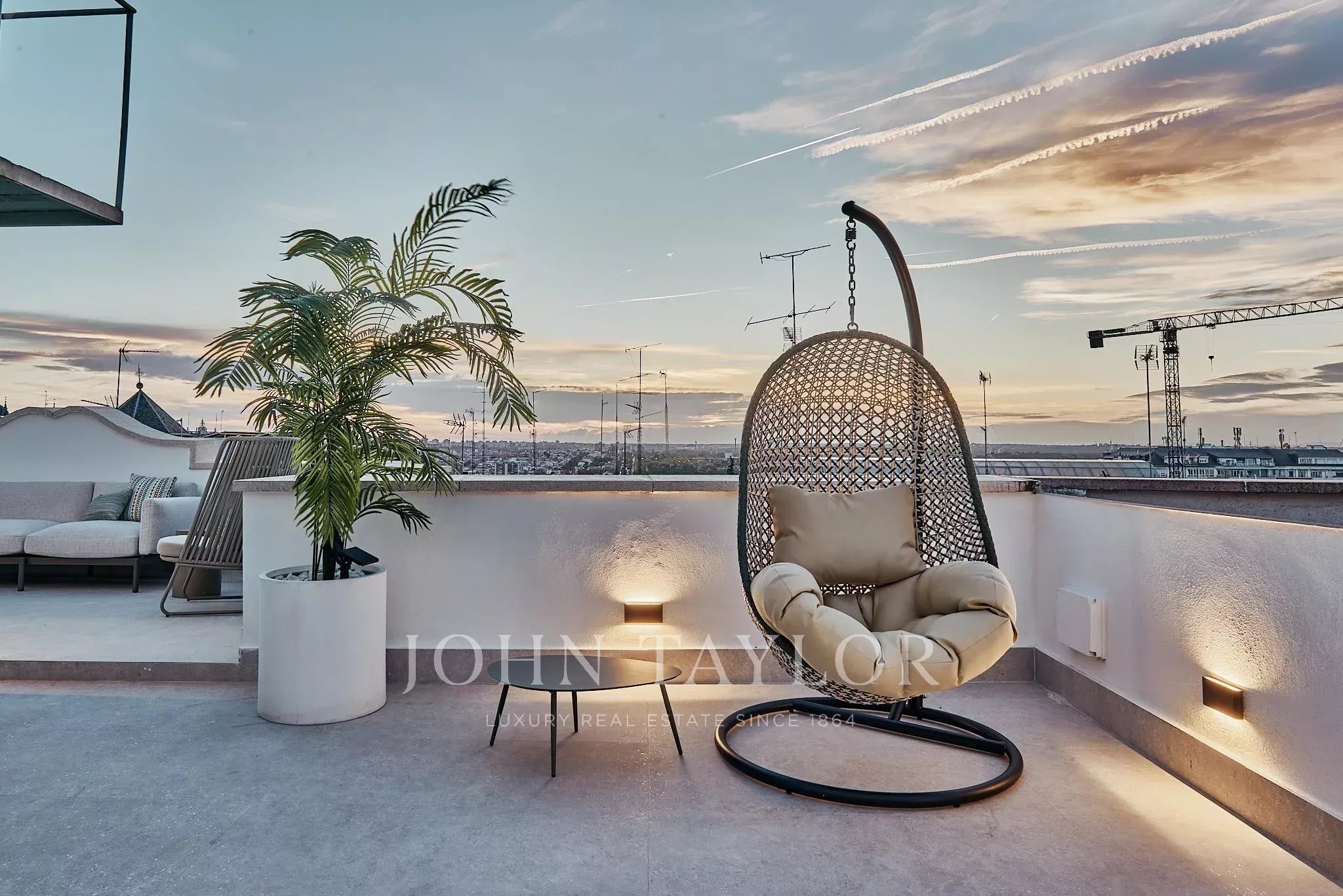 Une résidence singulière en raison de sa terrasse, de sa hauteur et de son emplacement, conçue pour ceux qui cherchent un logement vraiment unique à Madrid.
