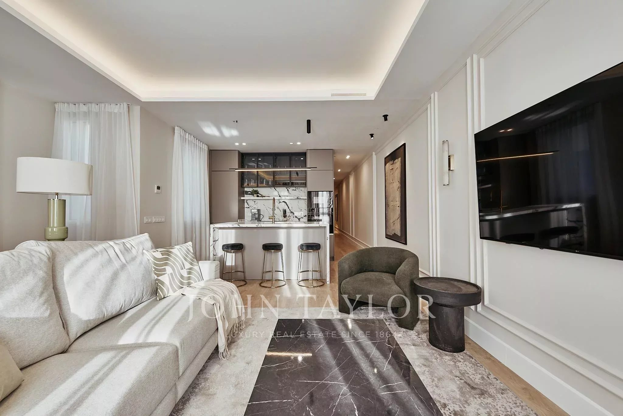 Le logement a été entièrement transformé pour offrir espace, luminosité et une sélection de matériaux de haute qualité, créant des espaces équilibrés et sophistiqués. La zone de jour se conçoit comme un vaste espace ouvert intégrant salon et cuisine, entièrement équipée, pensé pour une expérience de vie moderne.