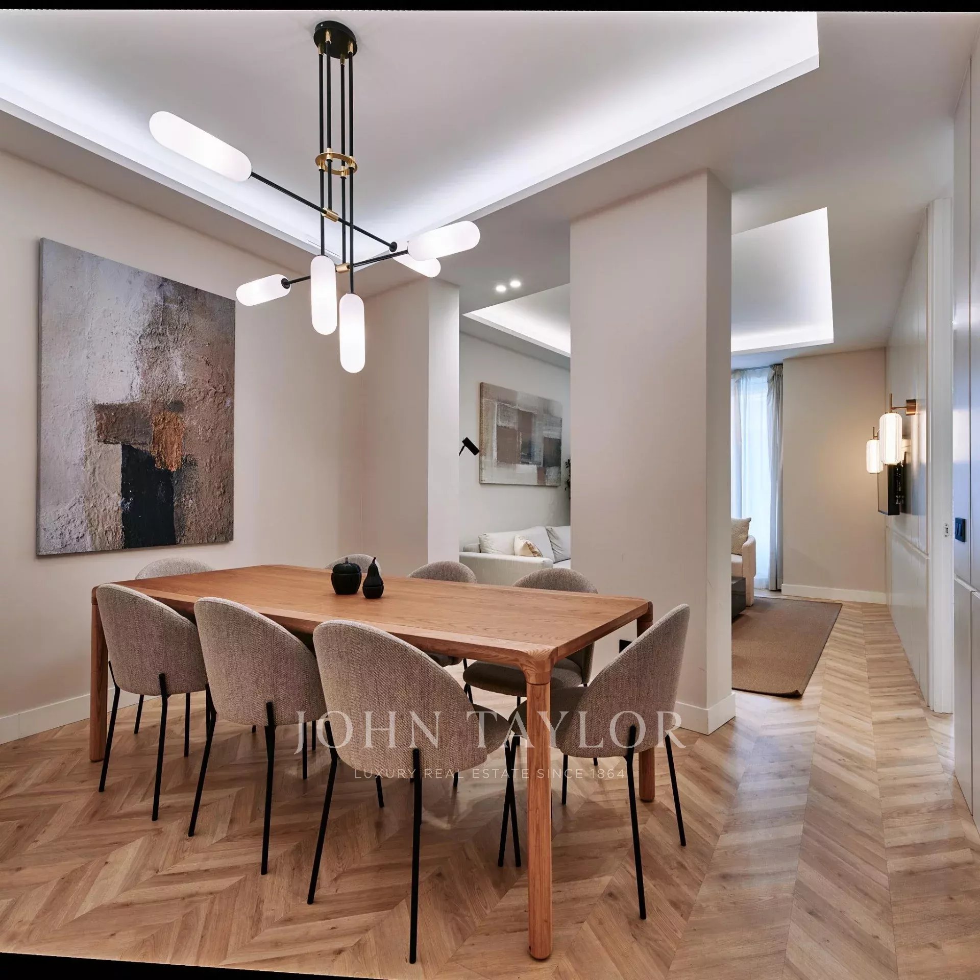 Situé au premier étage extérieur, l'appartement a été récemment rénové dans son intégralité par le célèbre studio d'architecture Arctempus, atteignant une superficie de 139 m² soigneusement redessinée pour offrir un maximum de confort et de fonctionnalité.
