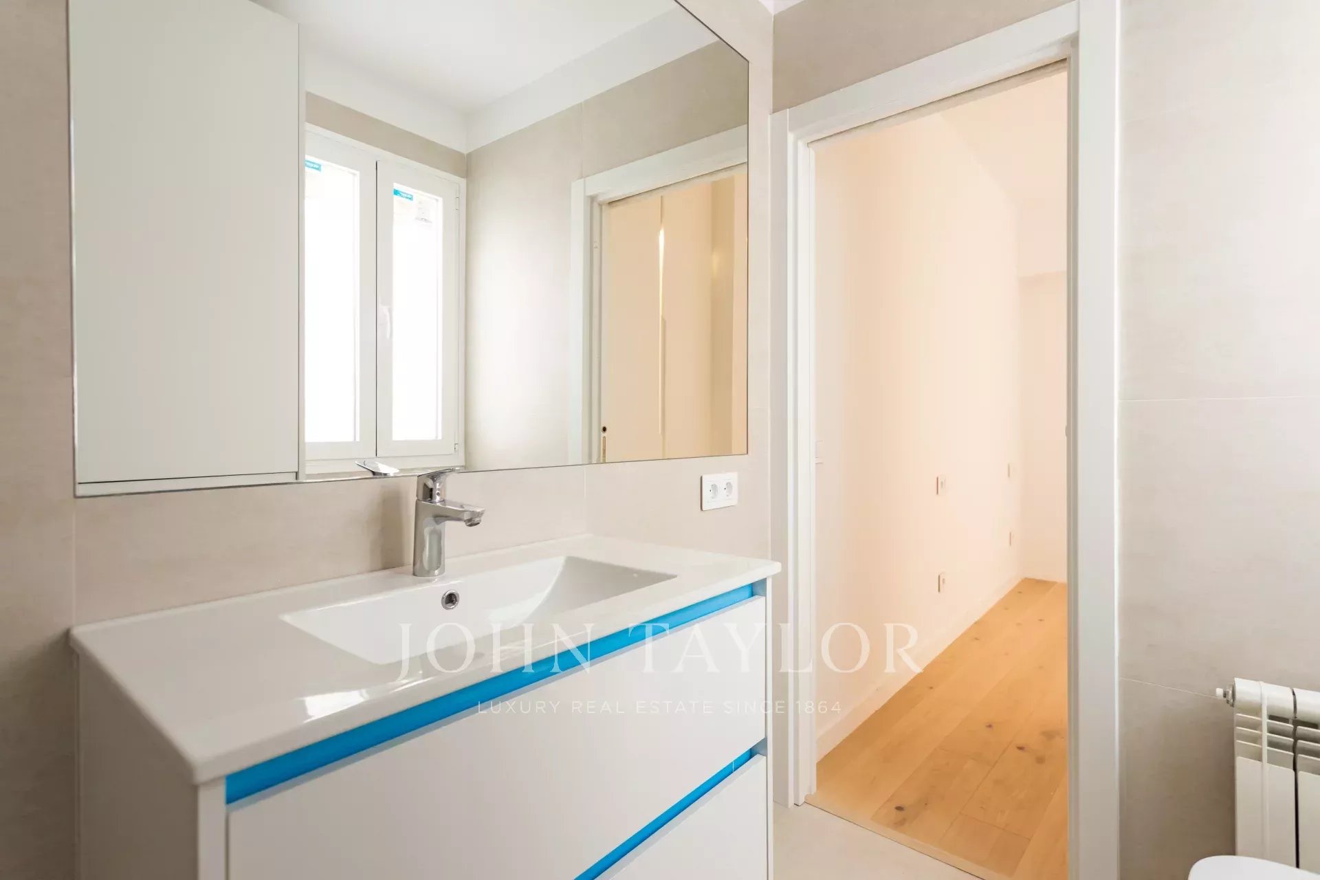 La suite parentale, avec un balcon extérieur, une salle de bains attenante et un dressing design, offre un espace intime et harmonieux, conçu pour la détente et l'intimité. La seconde chambre, également dotée d'une salle de bains et d'une fenêtre sur la cour, complète l'ensemble avec le même souci du détail et la même qualité de finitions.