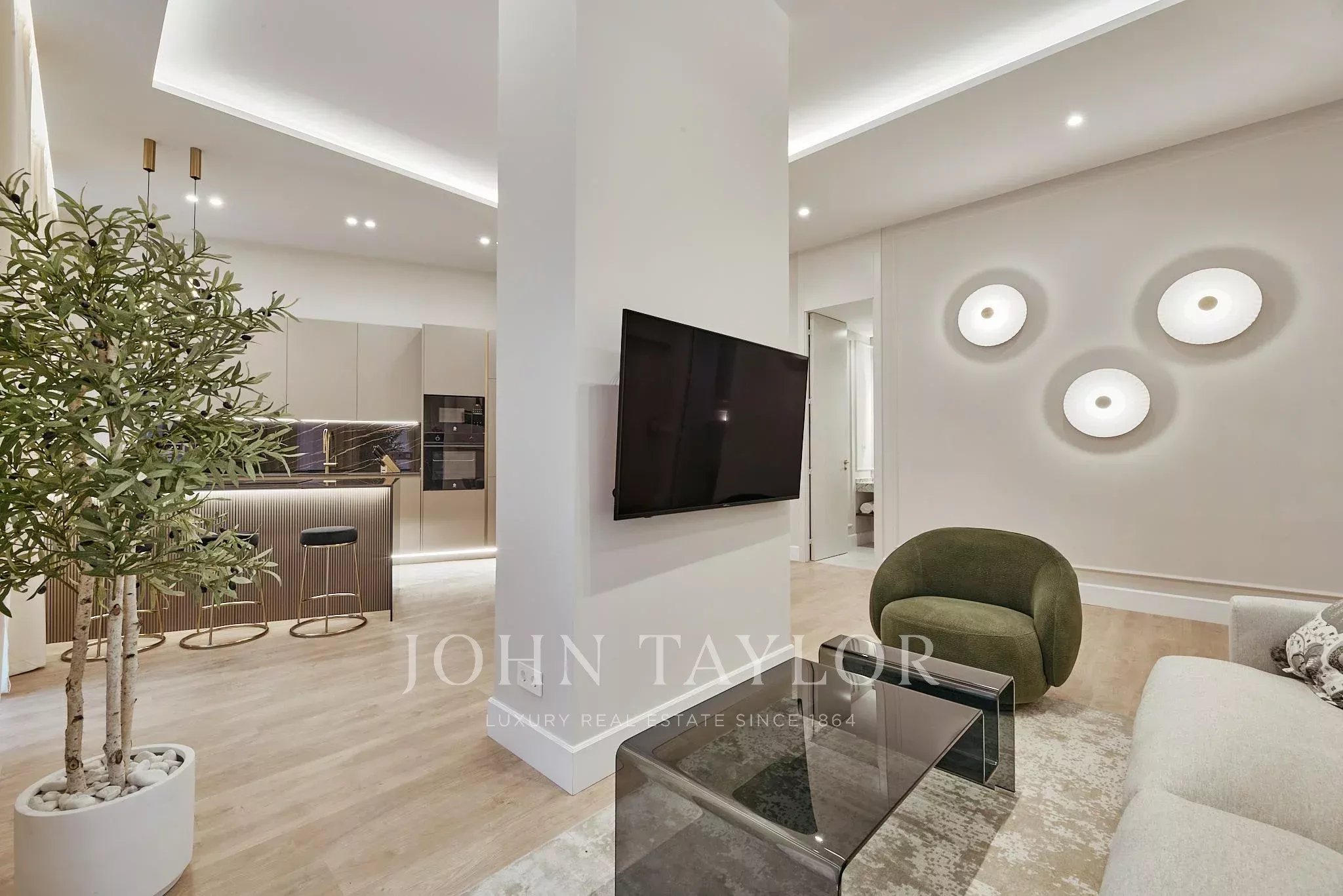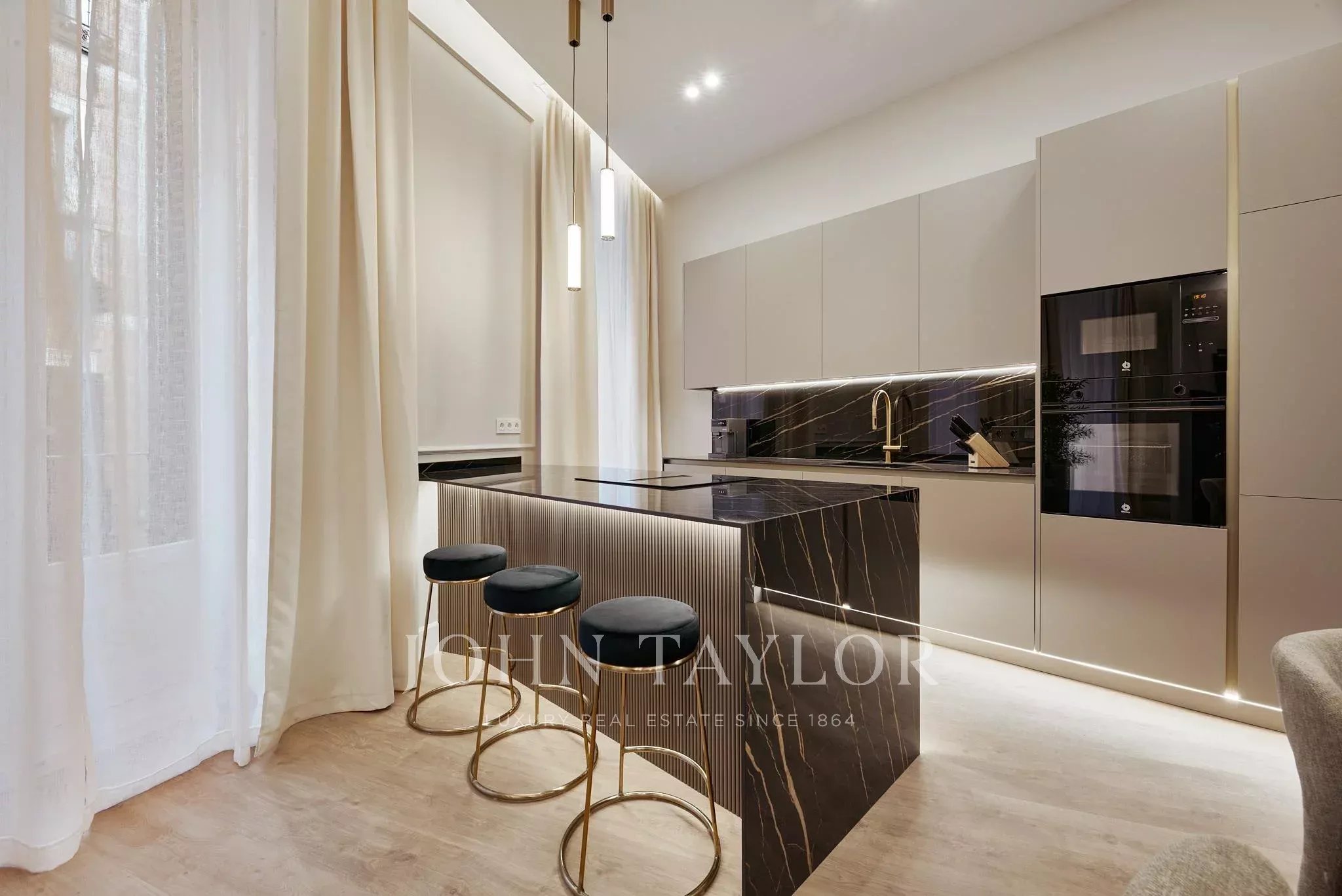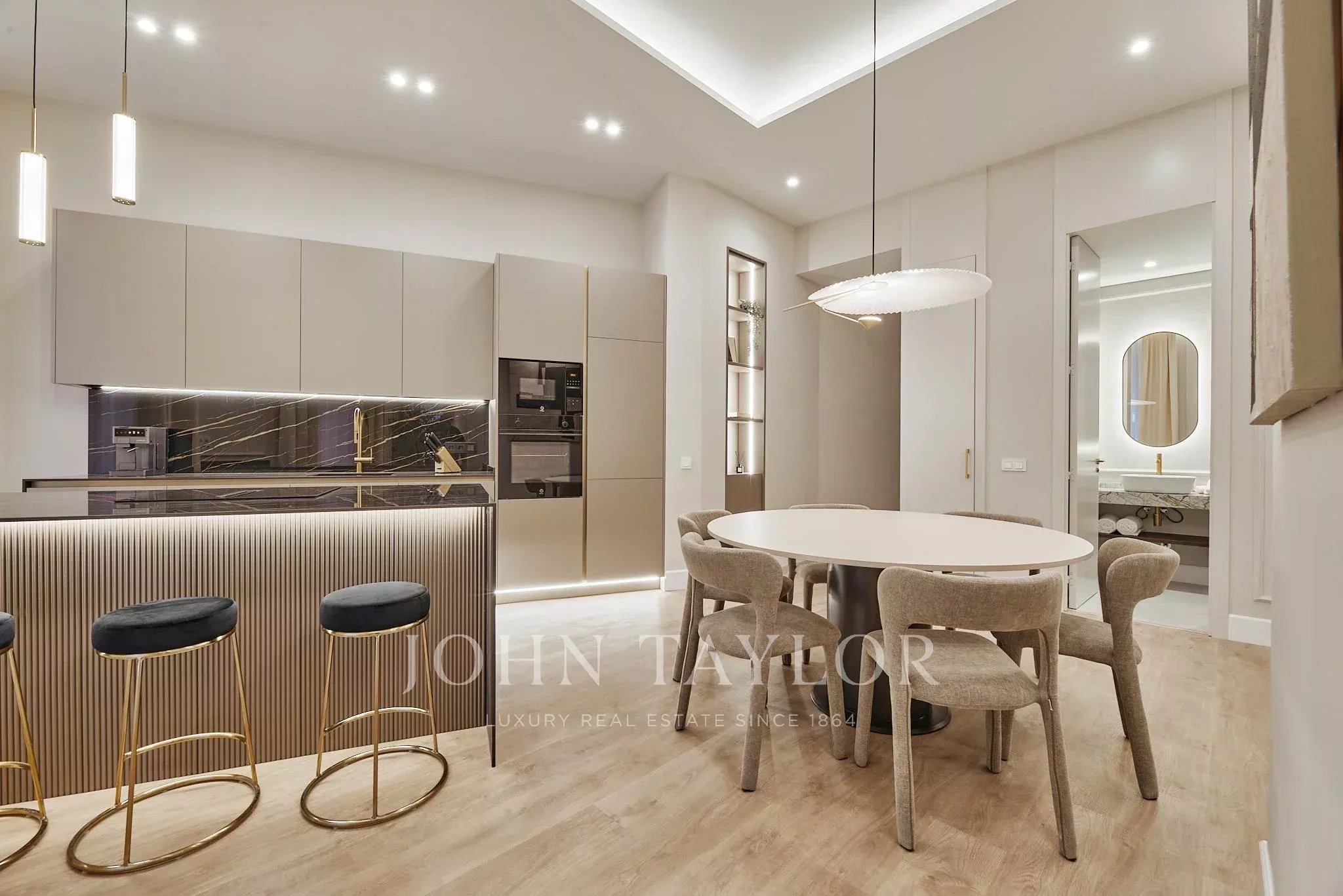 Le logement dispose de trois chambres et trois salles de bain complètes, conçues pour offrir confort et intimité. Les intérieurs, définis par une palette neutre et des matériaux de haute qualité, créent une atmosphère équilibrée et accueillante.