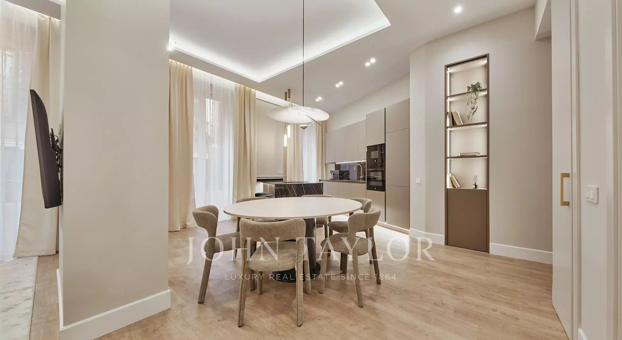 Logement extérieur de 146 m² situé dans le quartier dynamique de l'Université, en plein district Centro de Madrid. Situé dans un bâtiment classique distingué de 1900 avec ascenseur, la propriété allie le charme de l'architecture originale à une rénovation intégrale soignée de style contemporain.