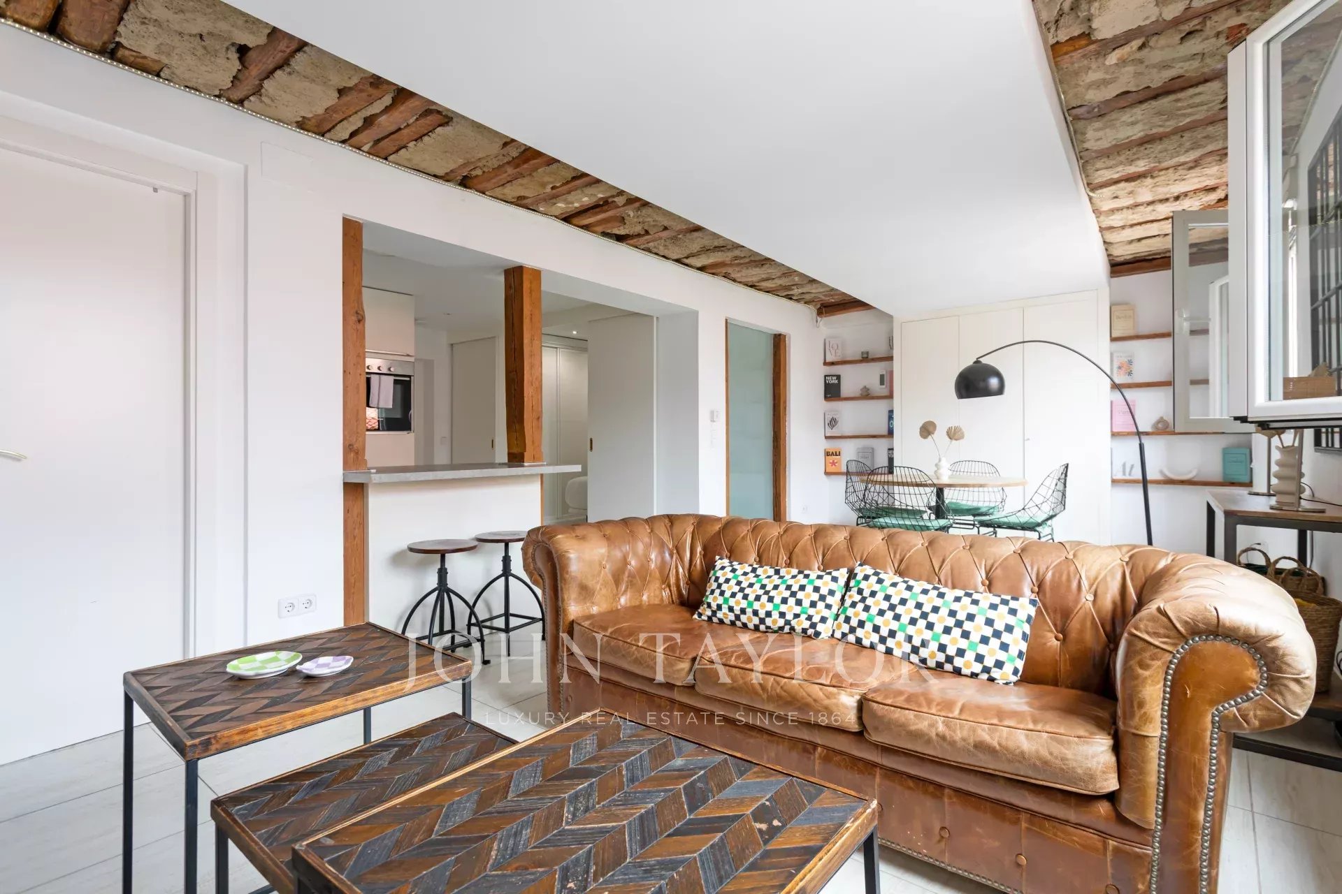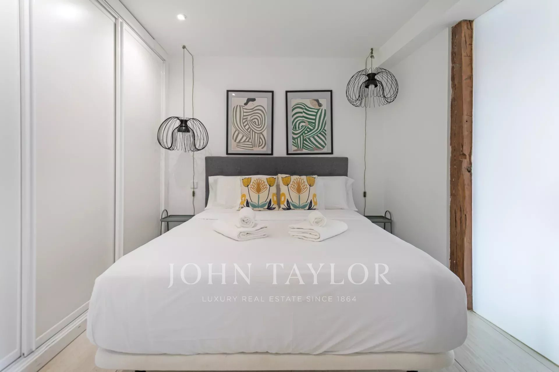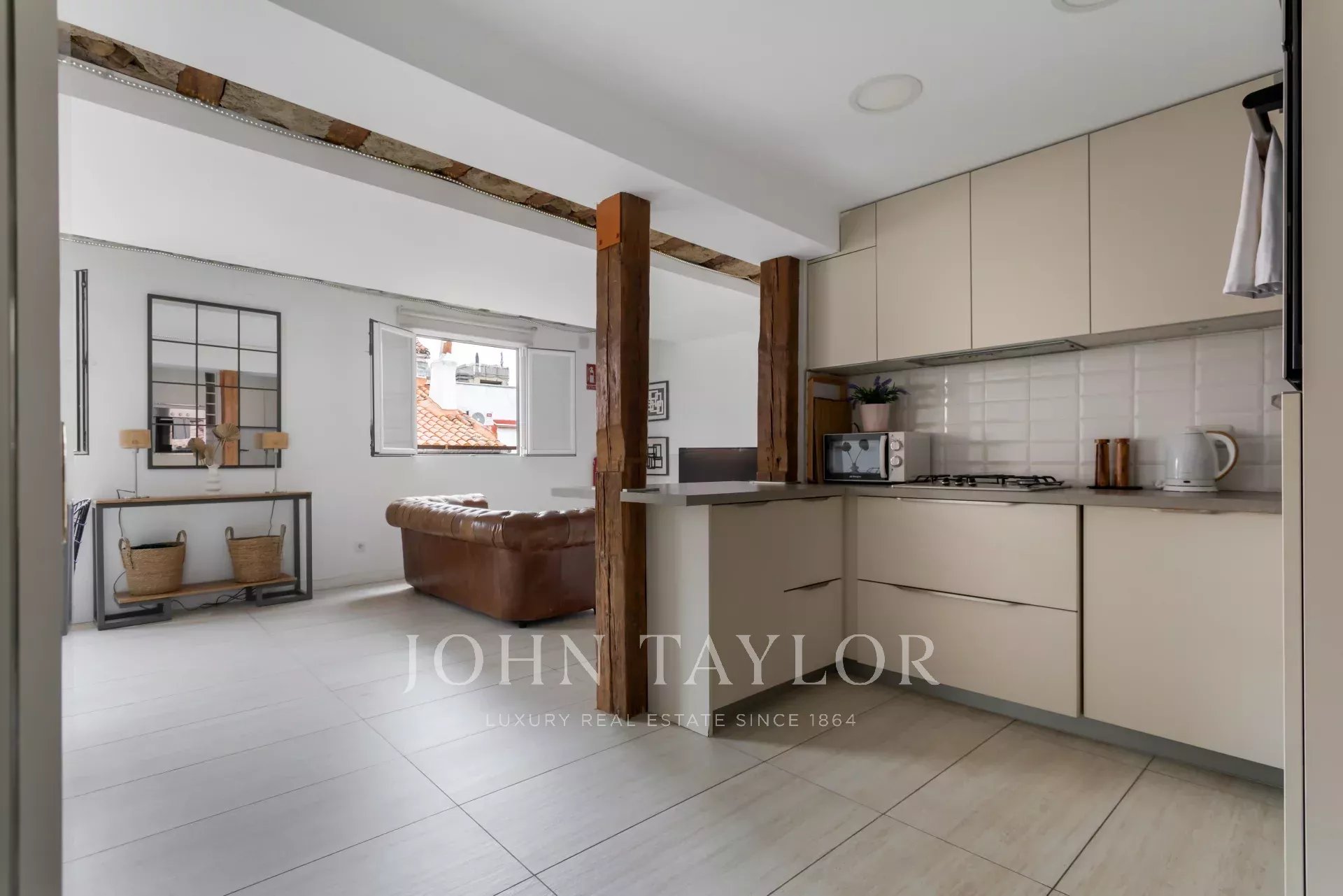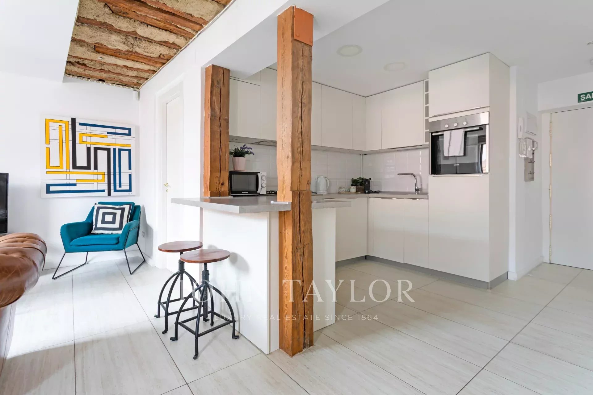 Dans l'un des quartiers les plus animés de la ville, et dans un bel immeuble classique datant de 1900, nous trouvons ce bel appartement, entièrement rénové, meublé et prêt à être habité. Il est situé au dernier étage de l'immeuble, avec deux fenêtres orientées vers le sud-est, ce qui lui permet de bénéficier d'une grande lumière naturelle. Sa rénovation intelligente permet de tirer le meilleur parti de l'espace et de préserver le caractère original de l'immeuble avec des poutres en bois apparentes sur les plafonds et les murs.