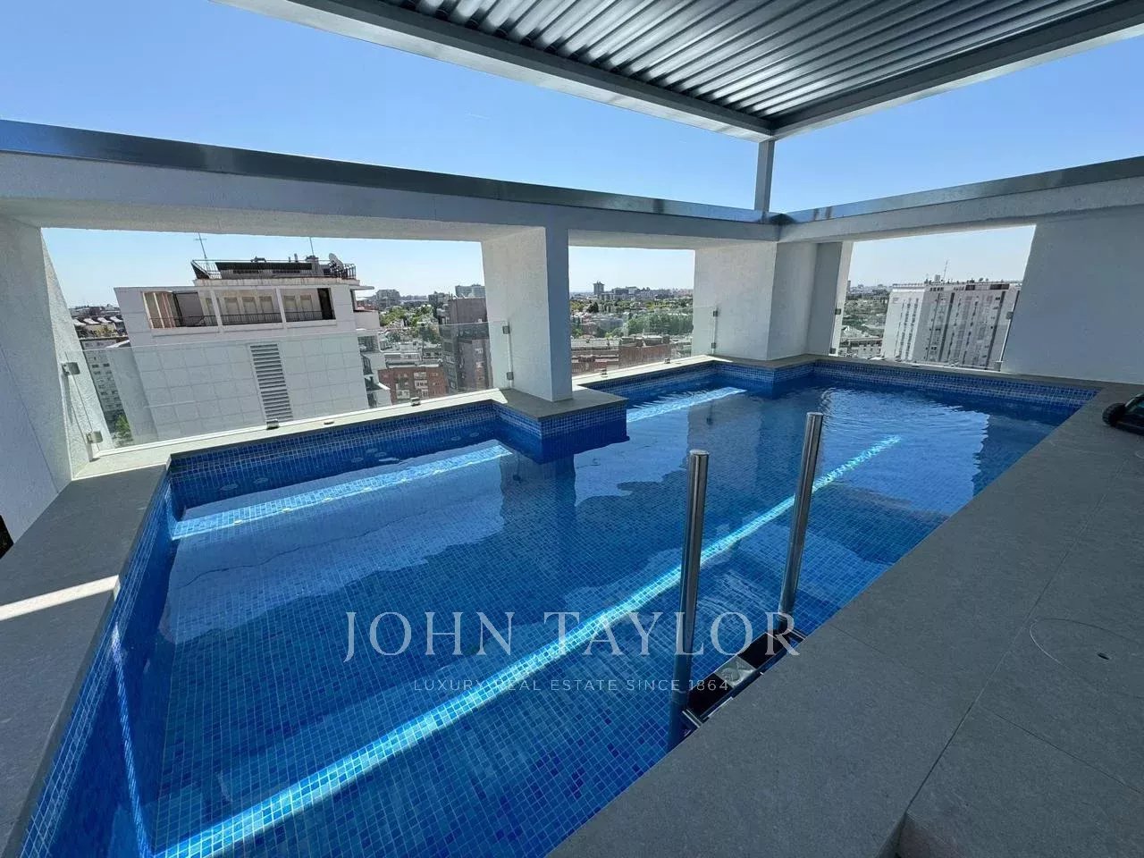 John Taylor présente cet extraordinaire duplex penthouse au design contemporain avec piscine privée, situé dans l'un des quartiers résidentiels les plus prisés de Madrid.