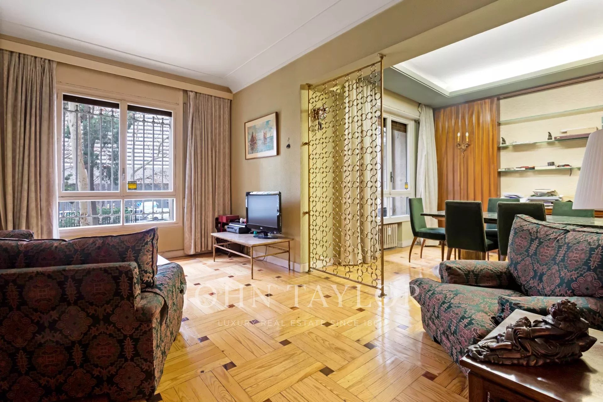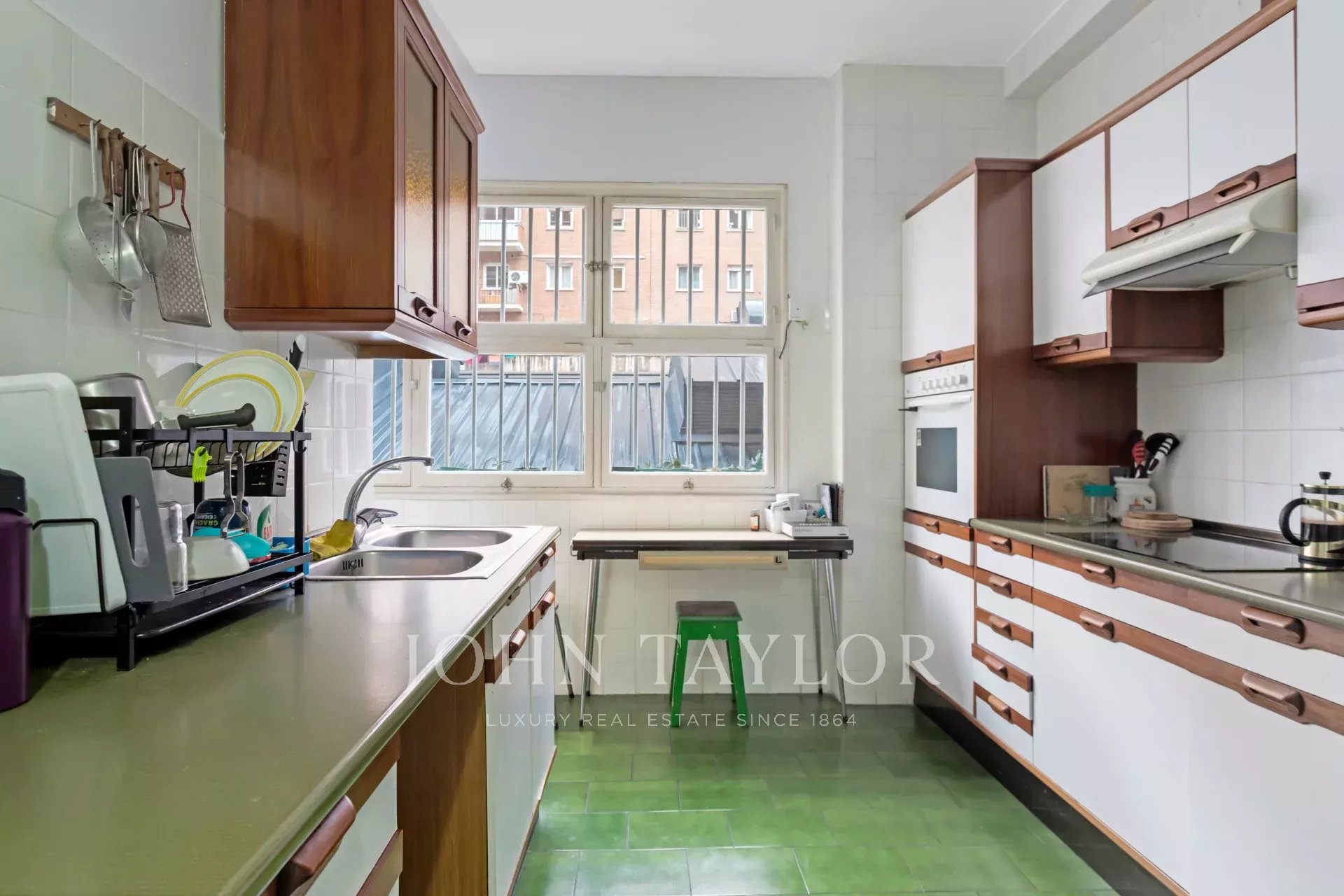 Porte représentative et immeuble calme avec seulement 16 voisins. La porte voisine de l'appartement est occupée par un prestigieux cabinet d'avocats et une fondation.