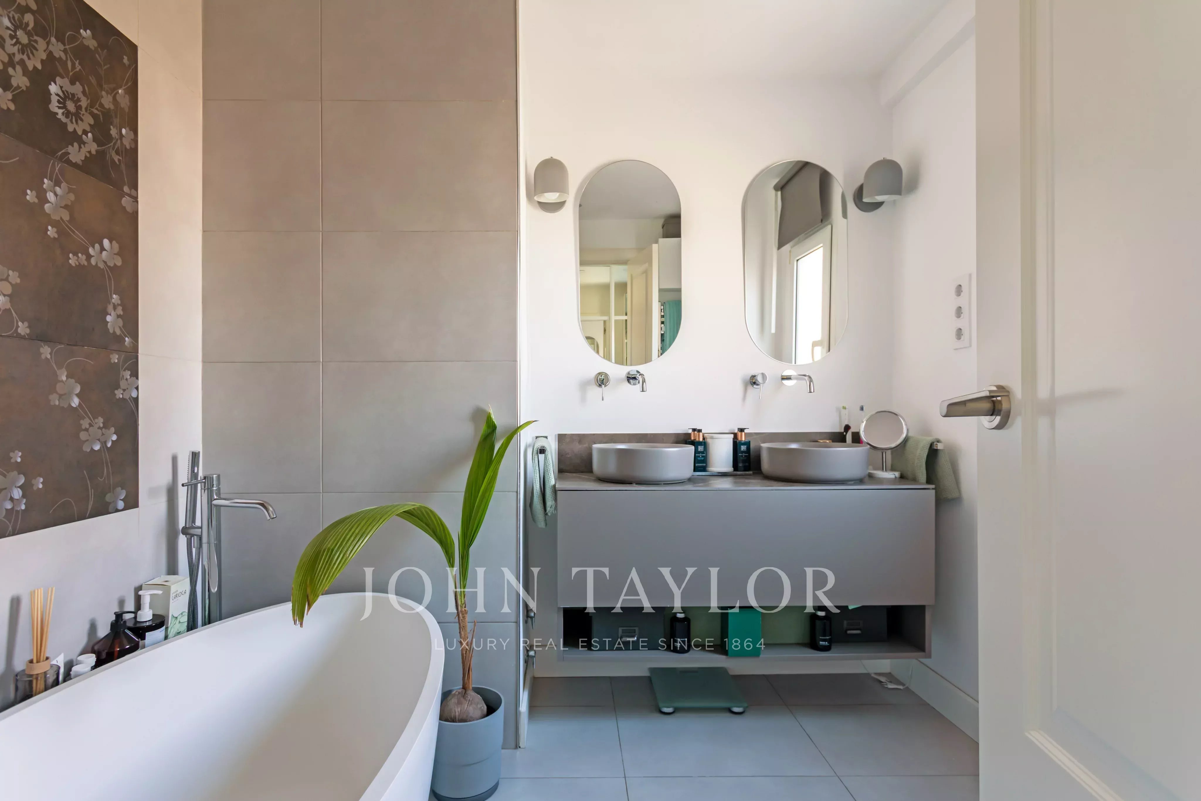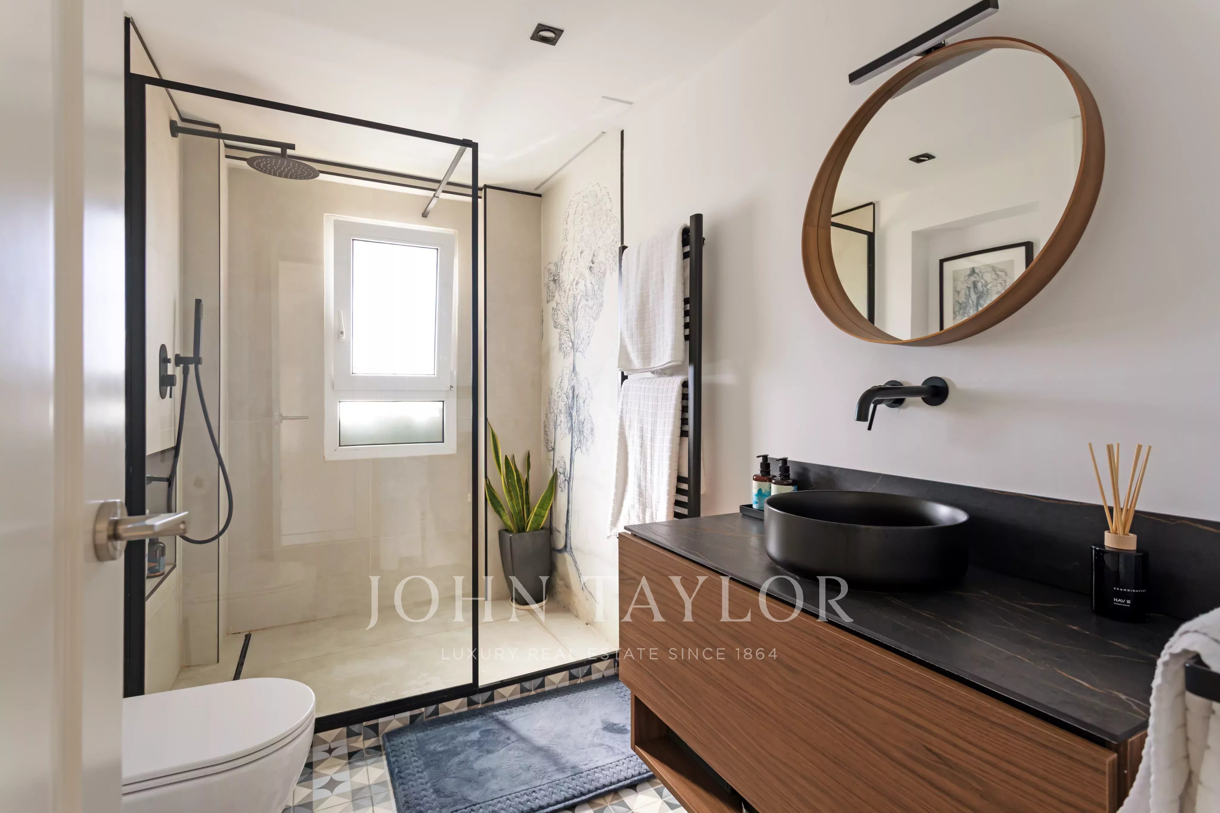 L'espace nuit se compose de deux chambres lumineuses et gaies, dont l'une avec une terrasse orientée au sud, d'une salle de bains avec douche à l'italienne et de la chambre principale, spacieuse et élégante, qui se distingue par son intimité et sa fonctionnalité grâce à une salle de bains attenante élégamment conçue.