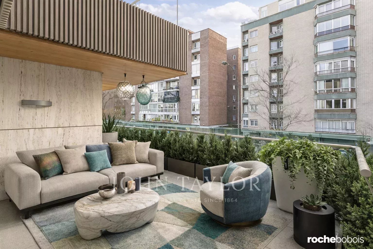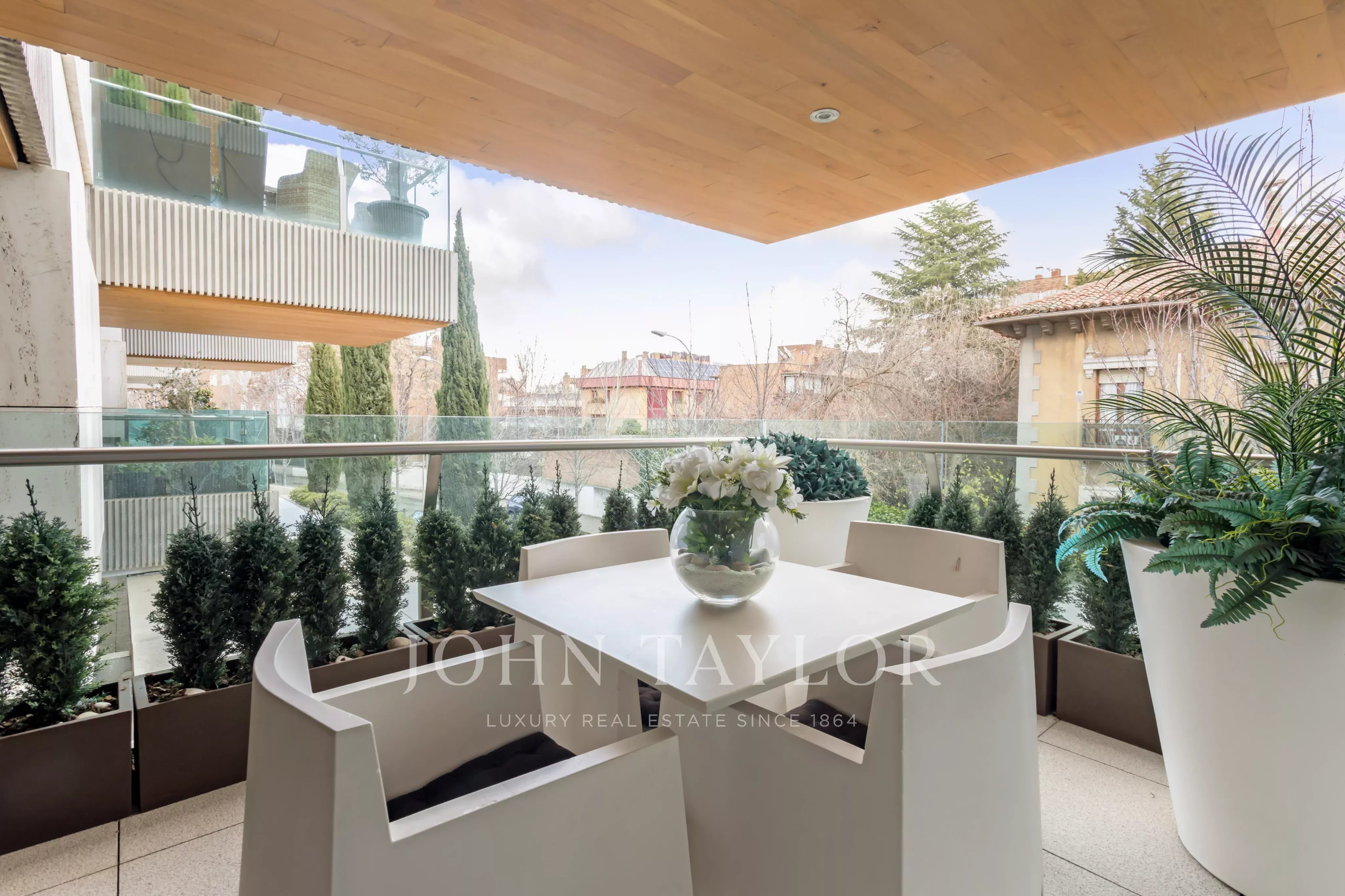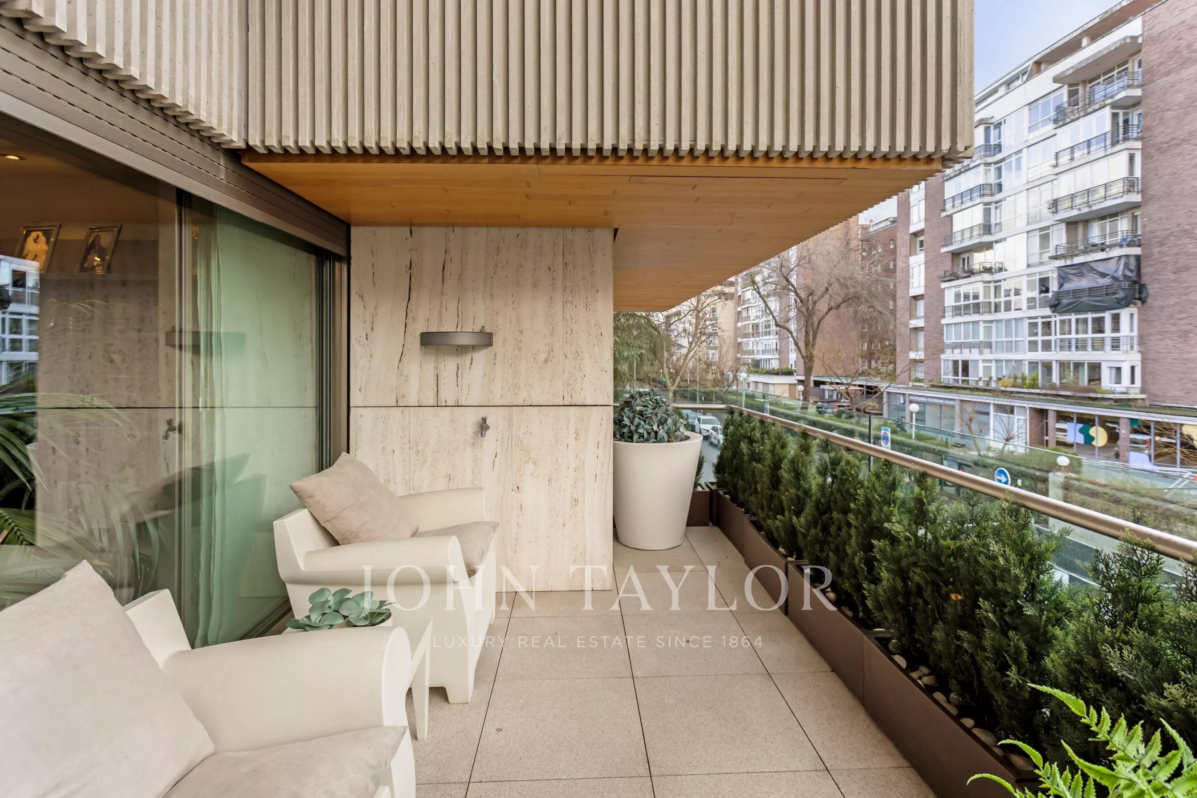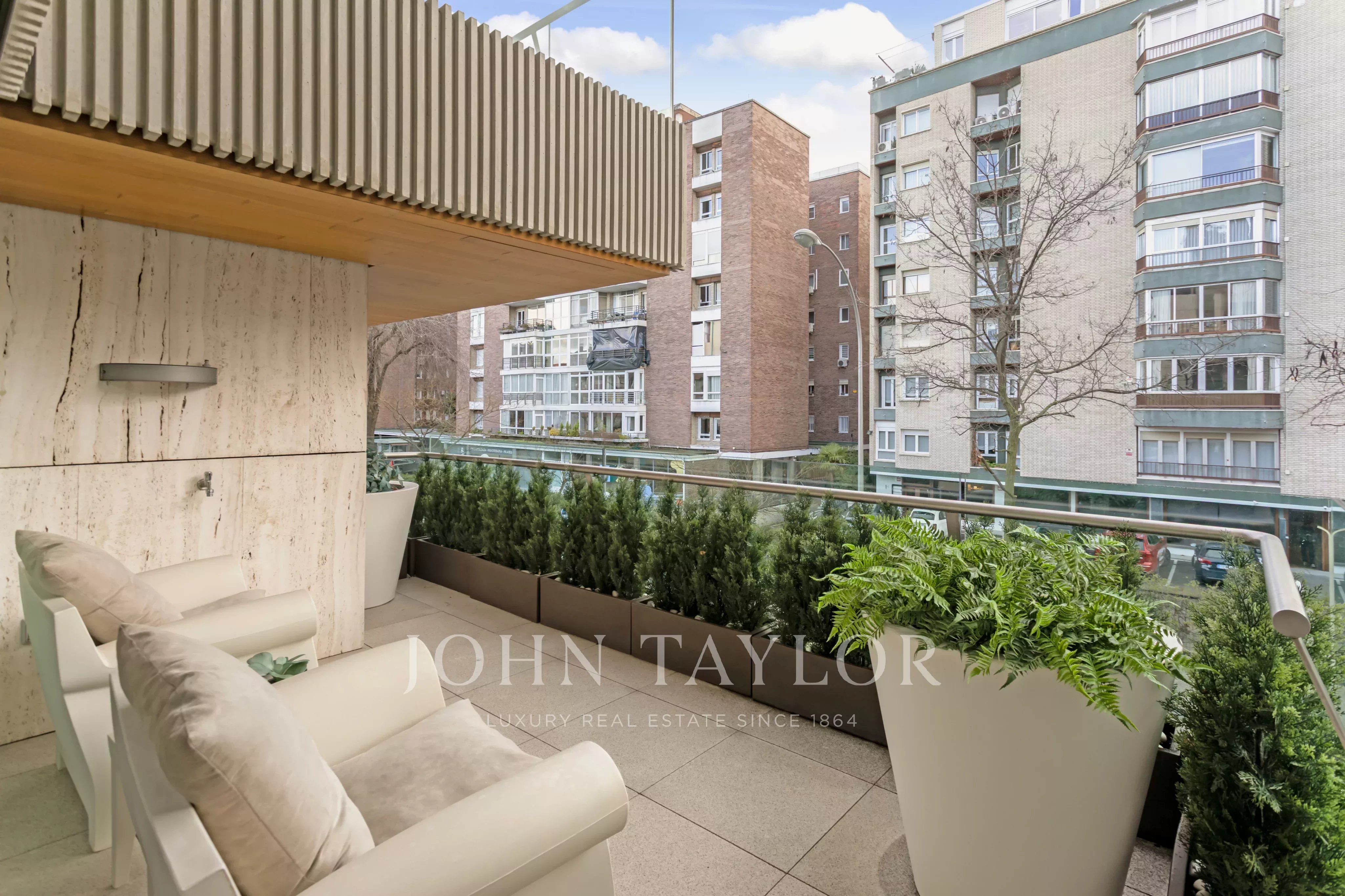 John Taylor Luxury Real Estate présente cet appartement exclusif situé dans un immeuble unique ayant reçu un prix d'architecture en 2008. La propriété est située dans le prestigieux quartier résidentiel de Nueva España, dans le district de Chamartín, au nord de la capitale. Il s'agit d'un quartier calme et sûr avec toutes les commodités et l'une des zones les plus recherchées de la capitale.