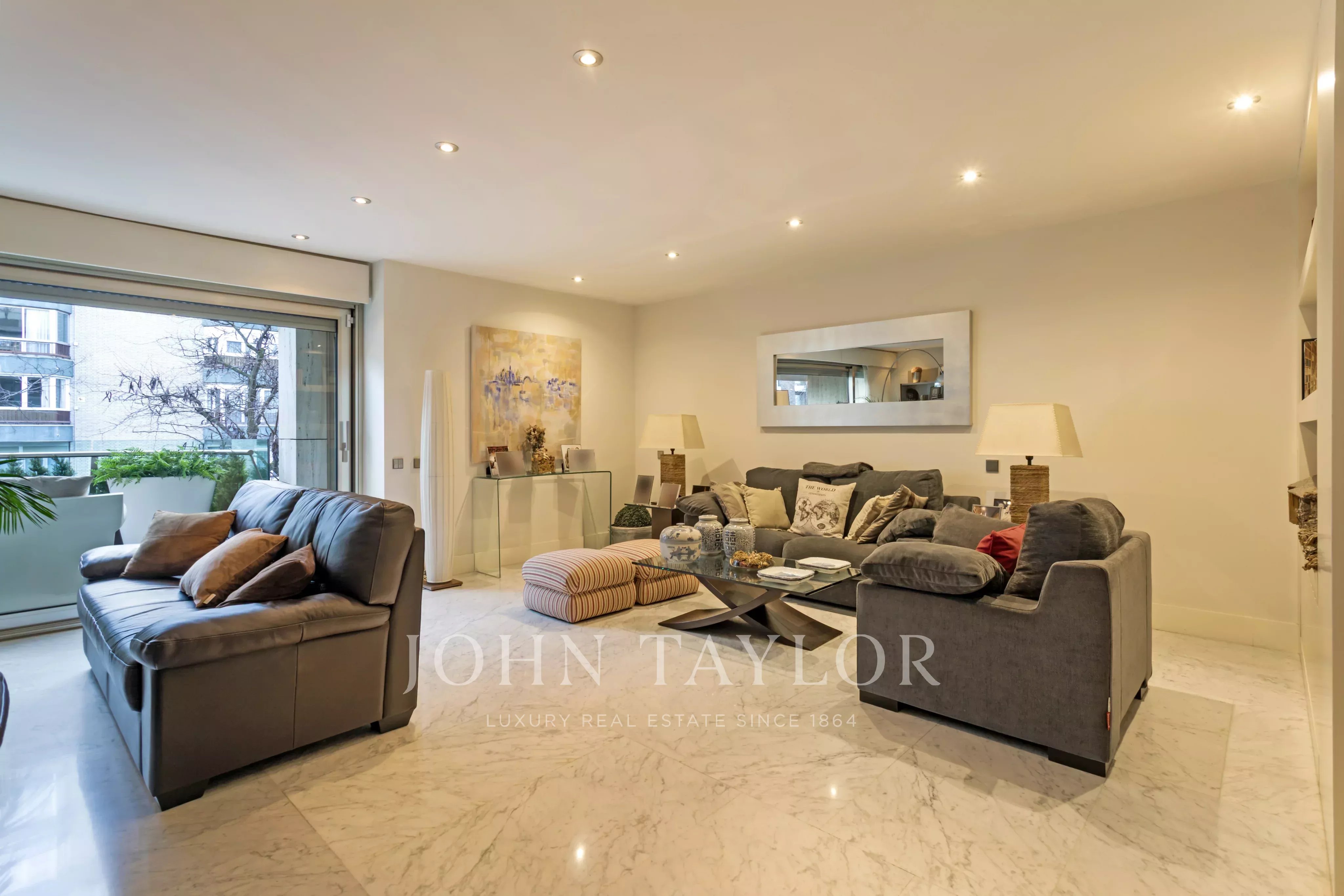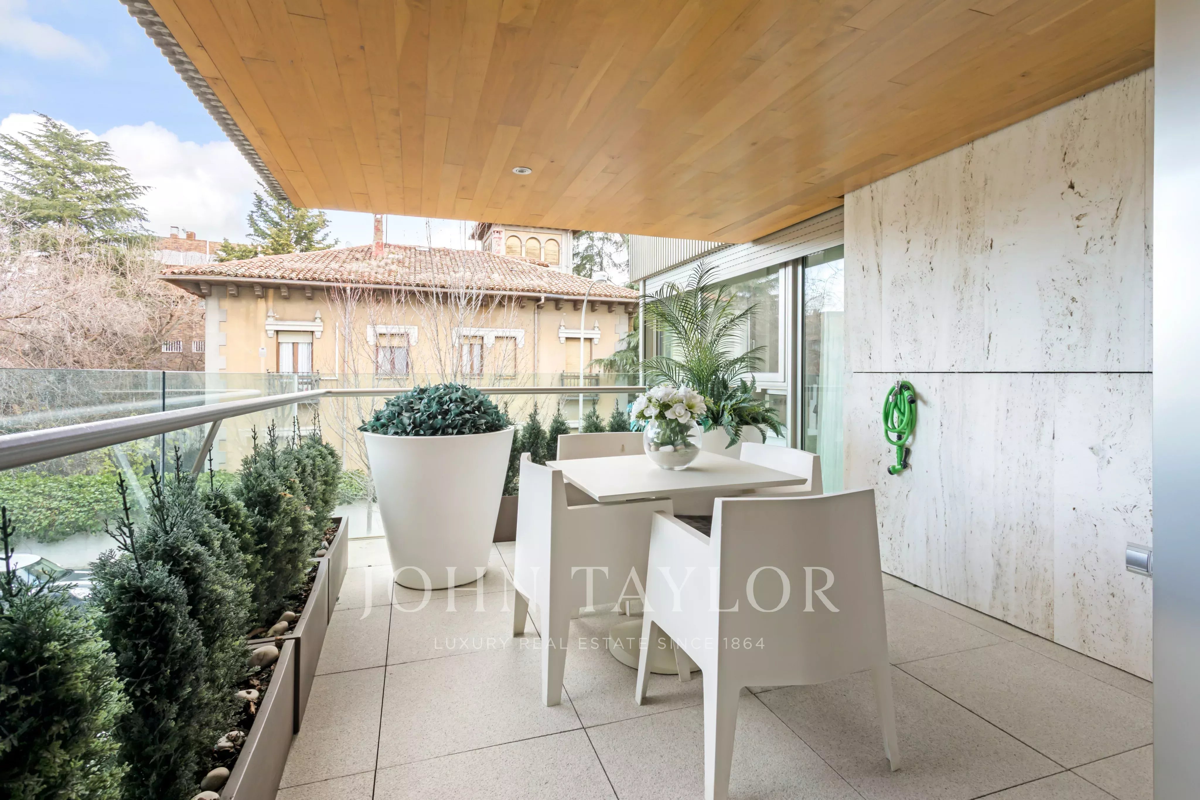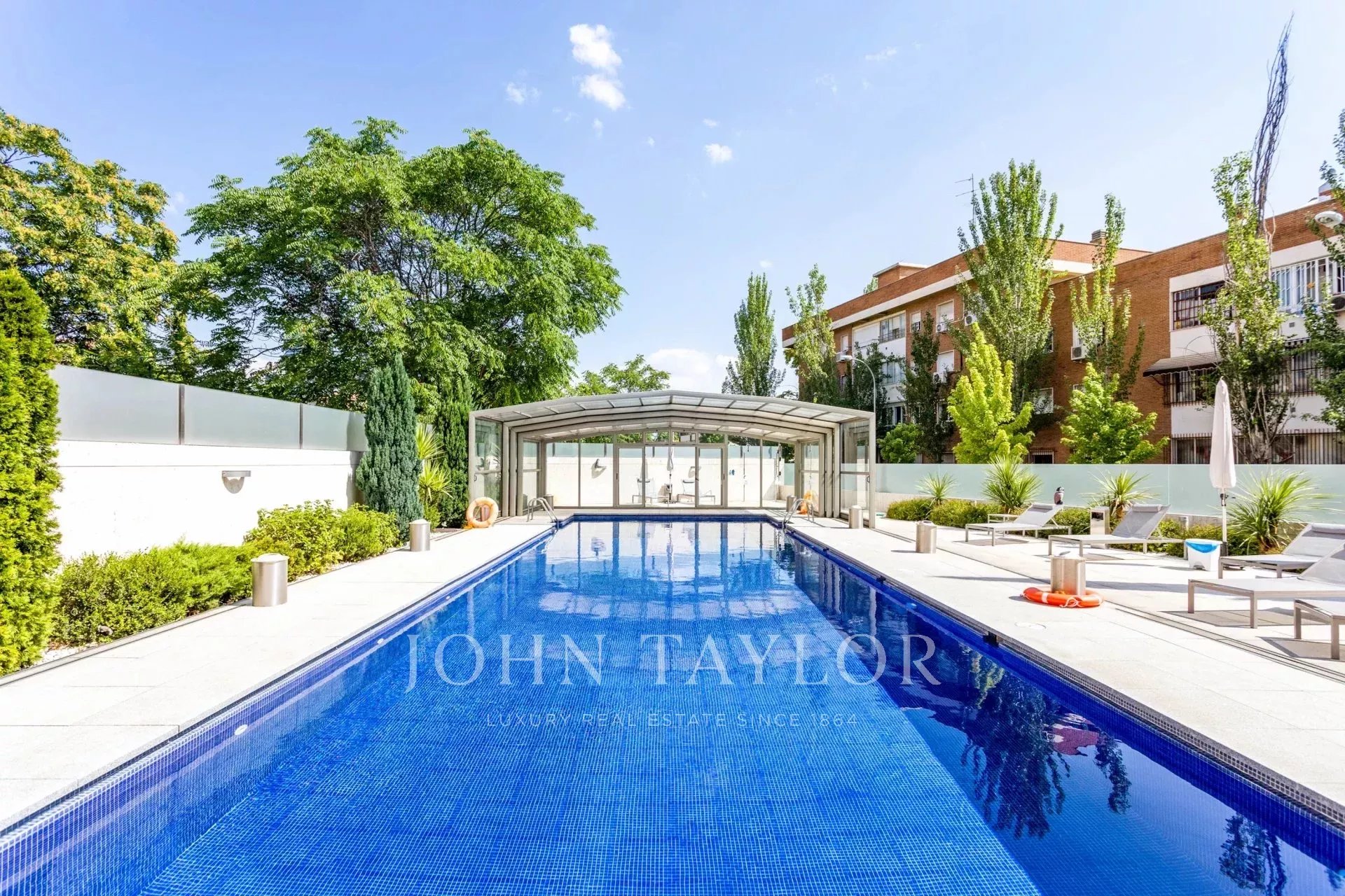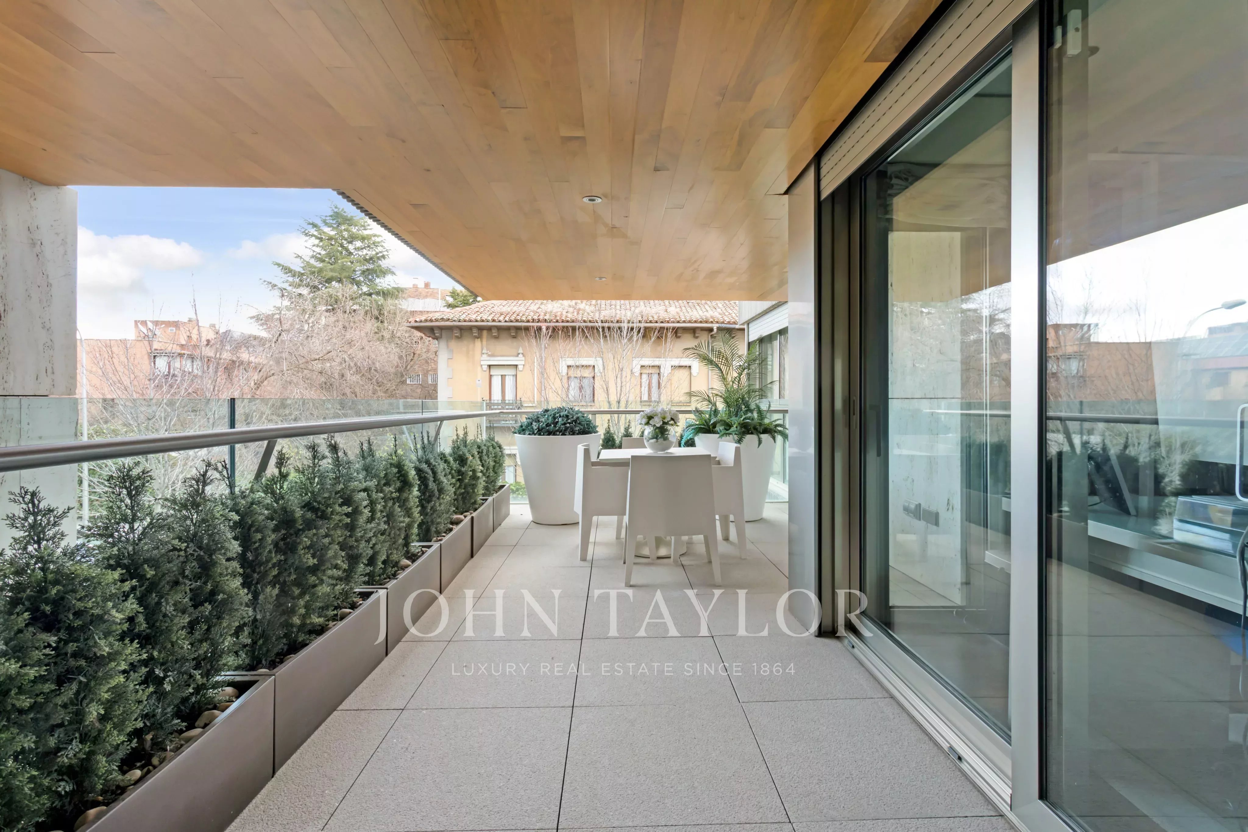 John Taylor Luxury Real Estate présente cet appartement exclusif situé dans un immeuble unique ayant reçu un prix d'architecture en 2008. La propriété est située dans le prestigieux quartier résidentiel de Nueva España, dans le district de Chamartín, au nord de la capitale. Il s'agit d'un quartier calme et sûr avec toutes les commodités et l'une des zones les plus recherchées de la capitale.