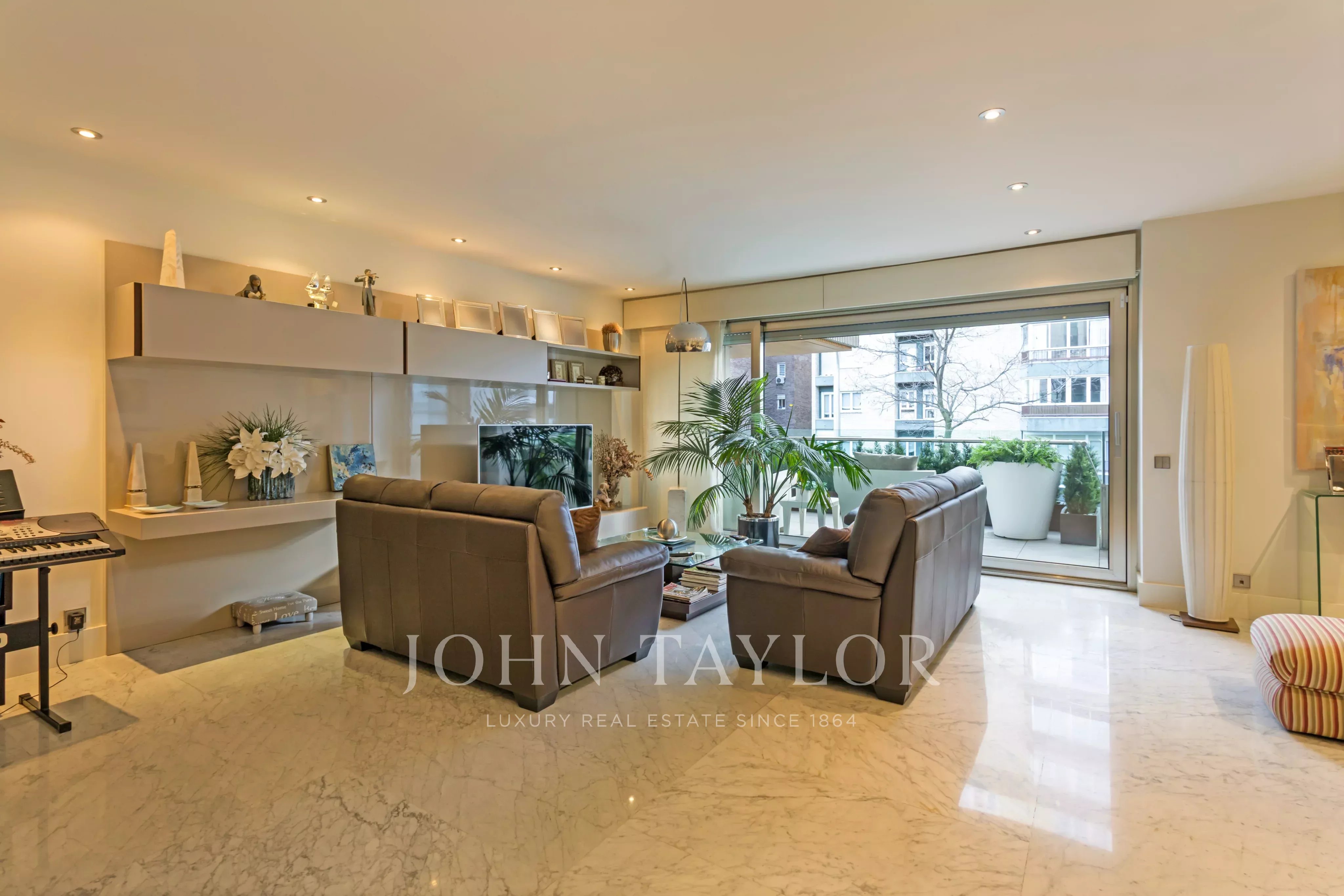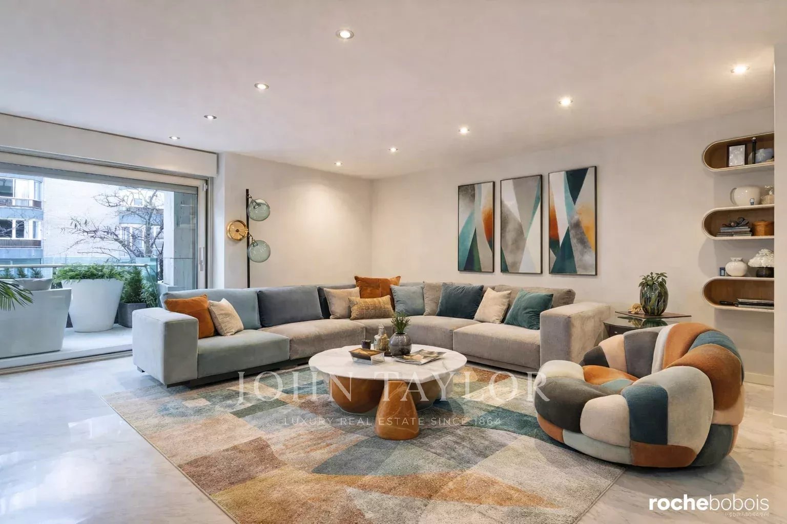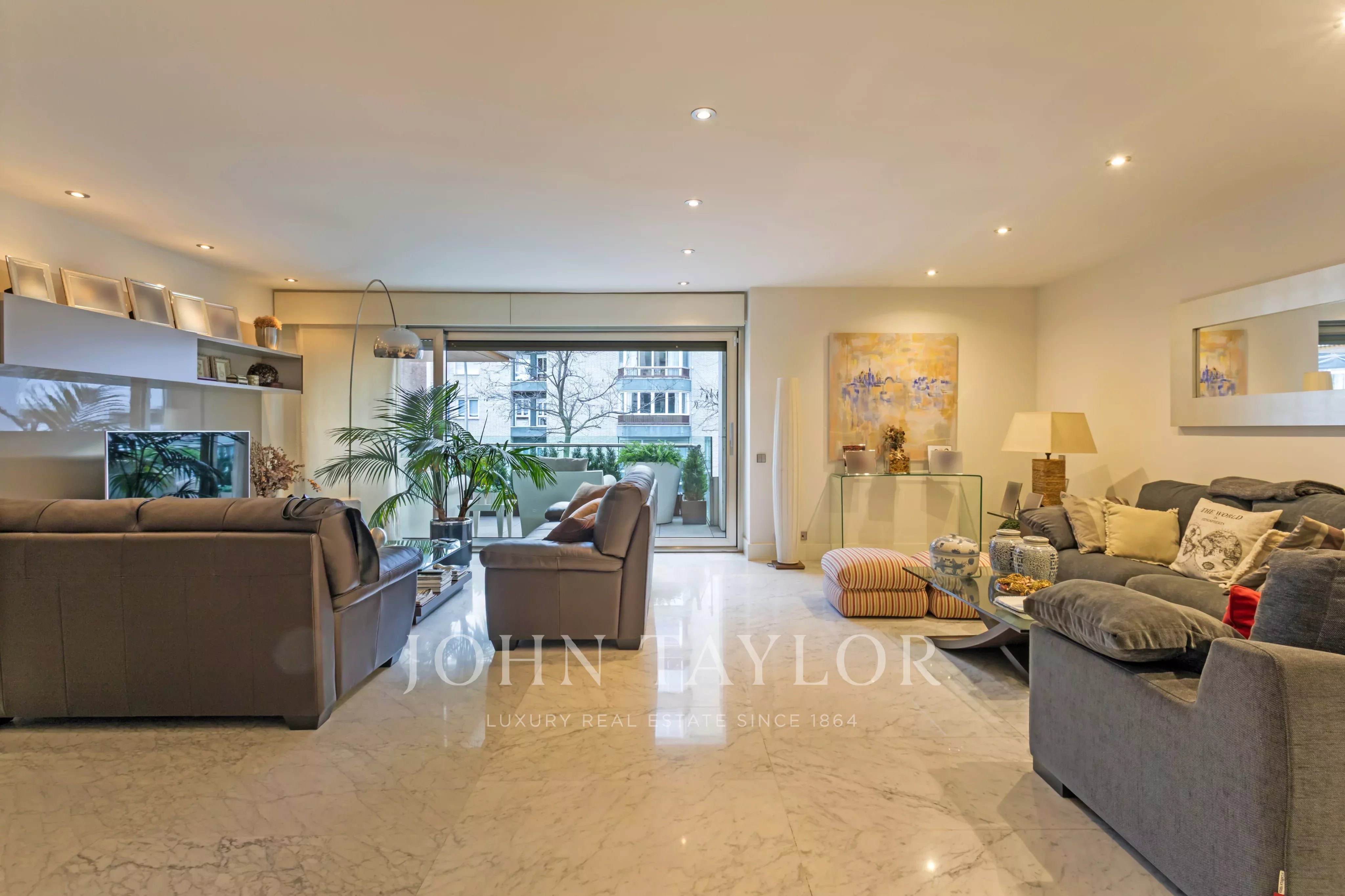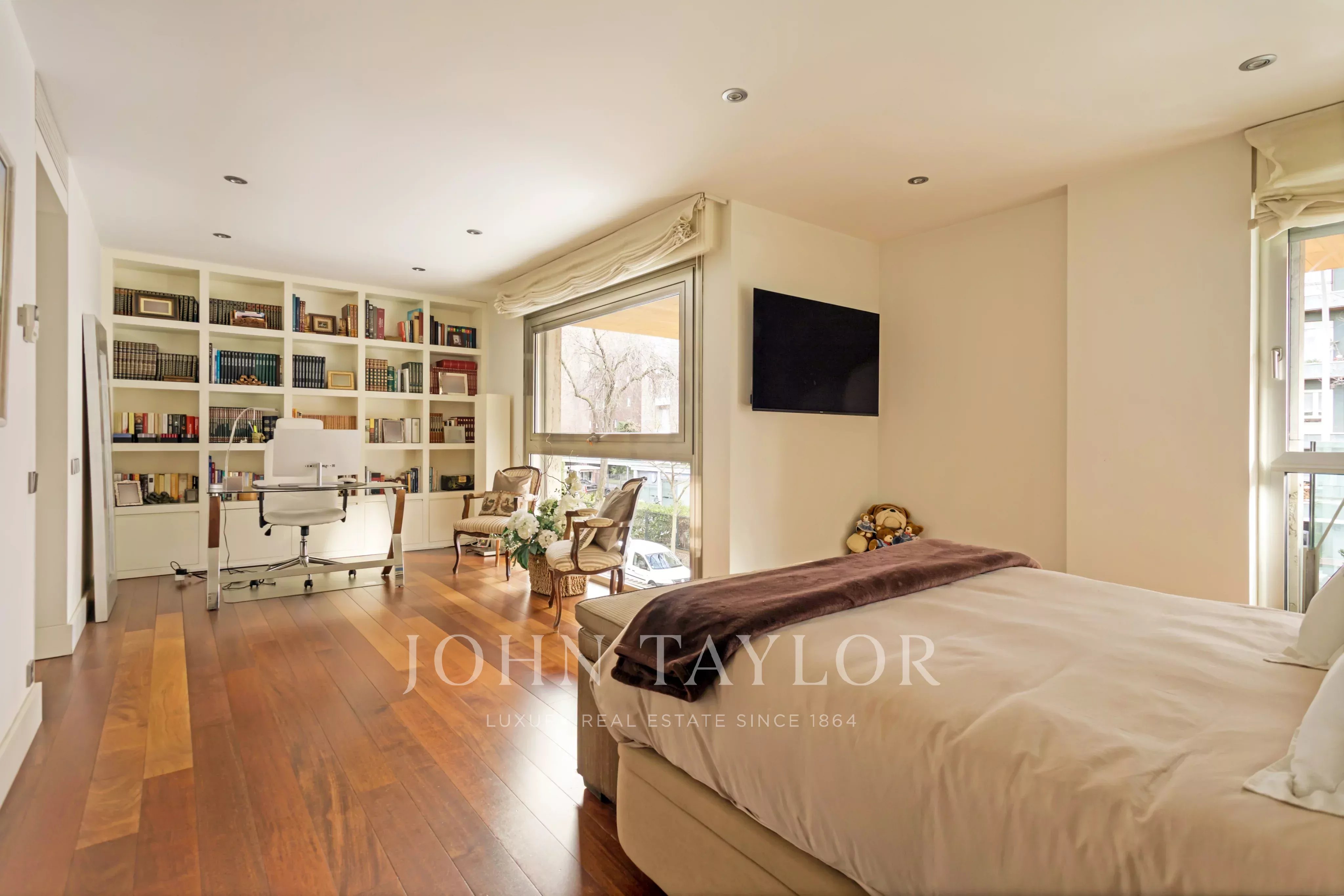 John Taylor Luxury Real Estate présente cet appartement exclusif situé dans un immeuble unique ayant reçu un prix d'architecture en 2008. La propriété est située dans le prestigieux quartier résidentiel de Nueva España, dans le district de Chamartín, au nord de la capitale. Il s'agit d'un quartier calme et sûr avec toutes les commodités et l'une des zones les plus recherchées de la capitale.