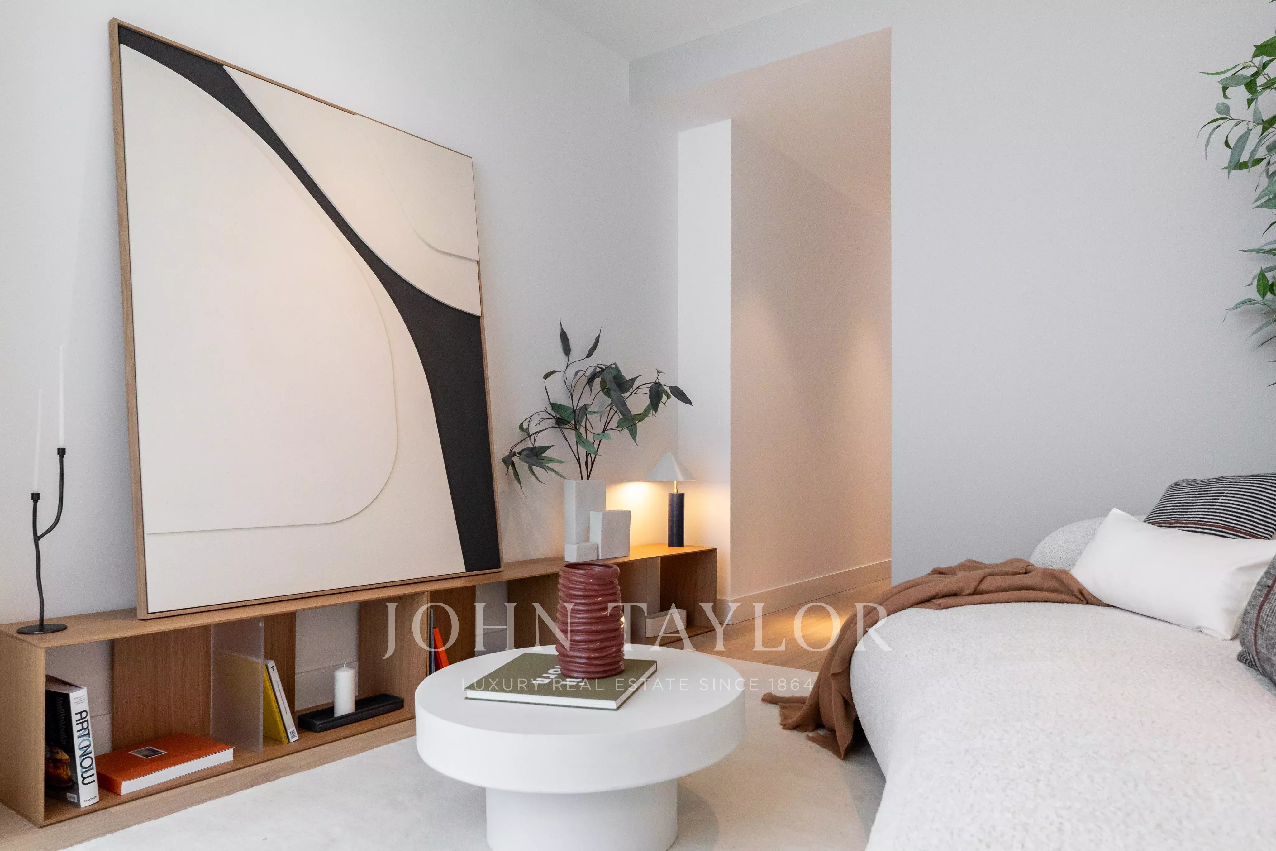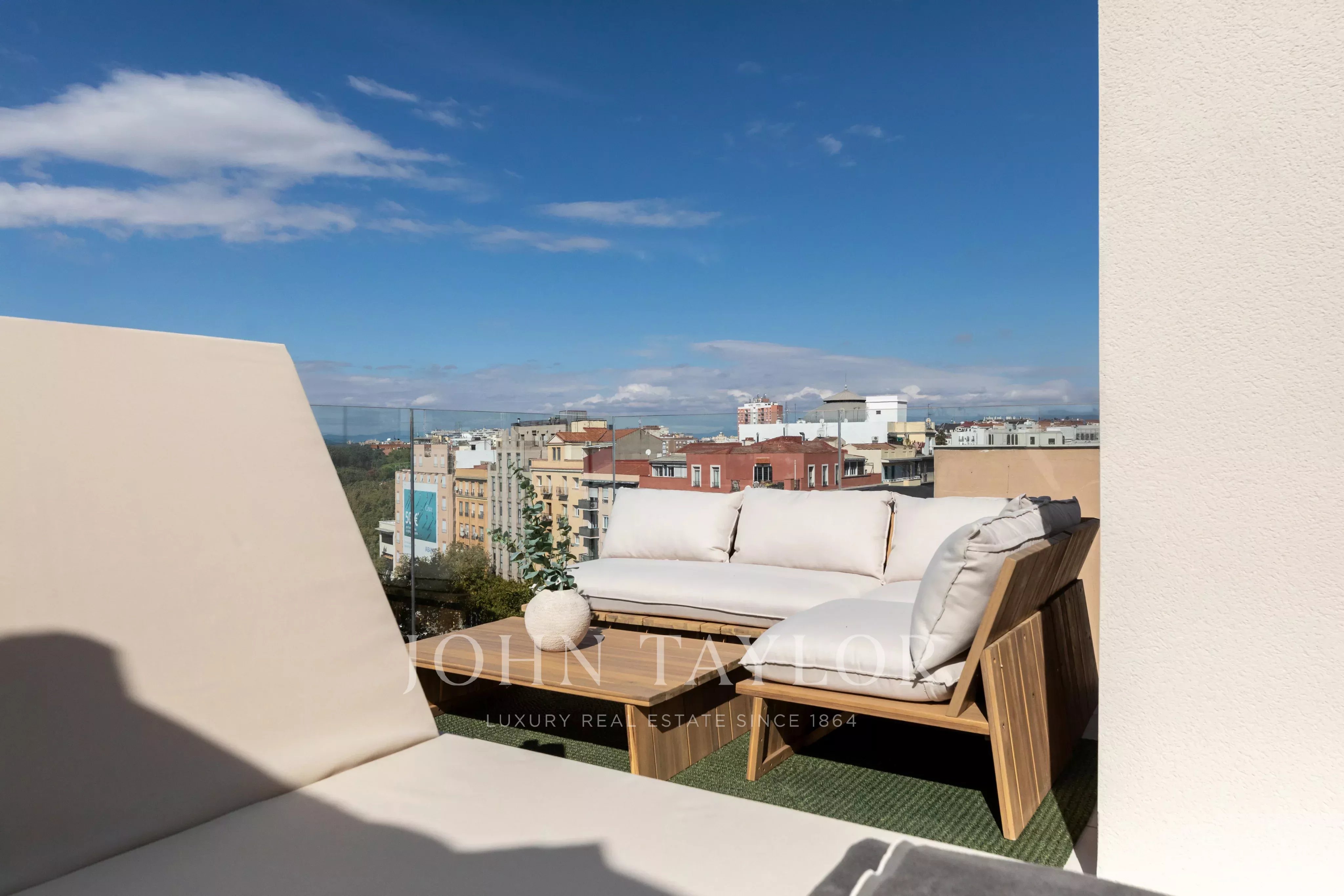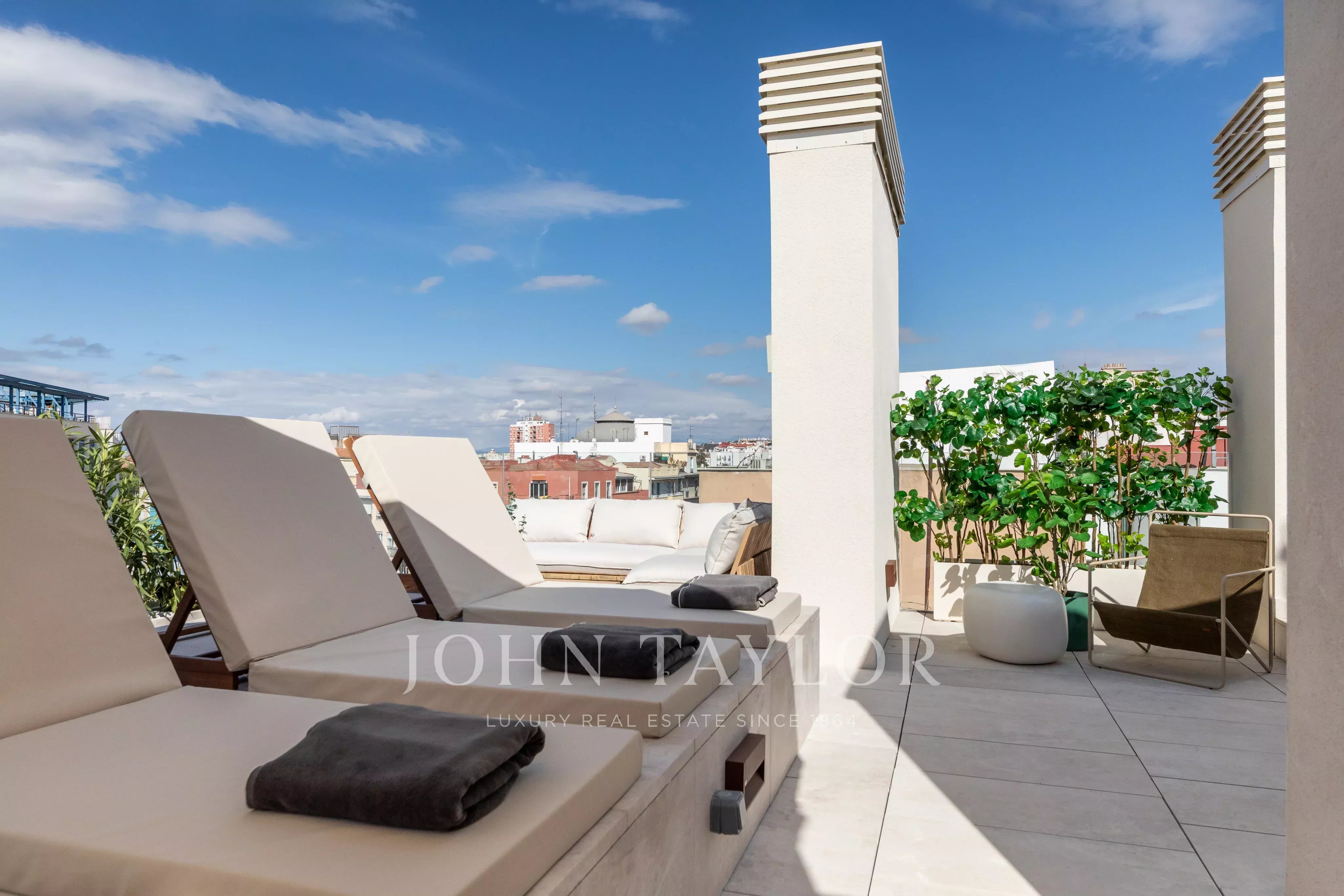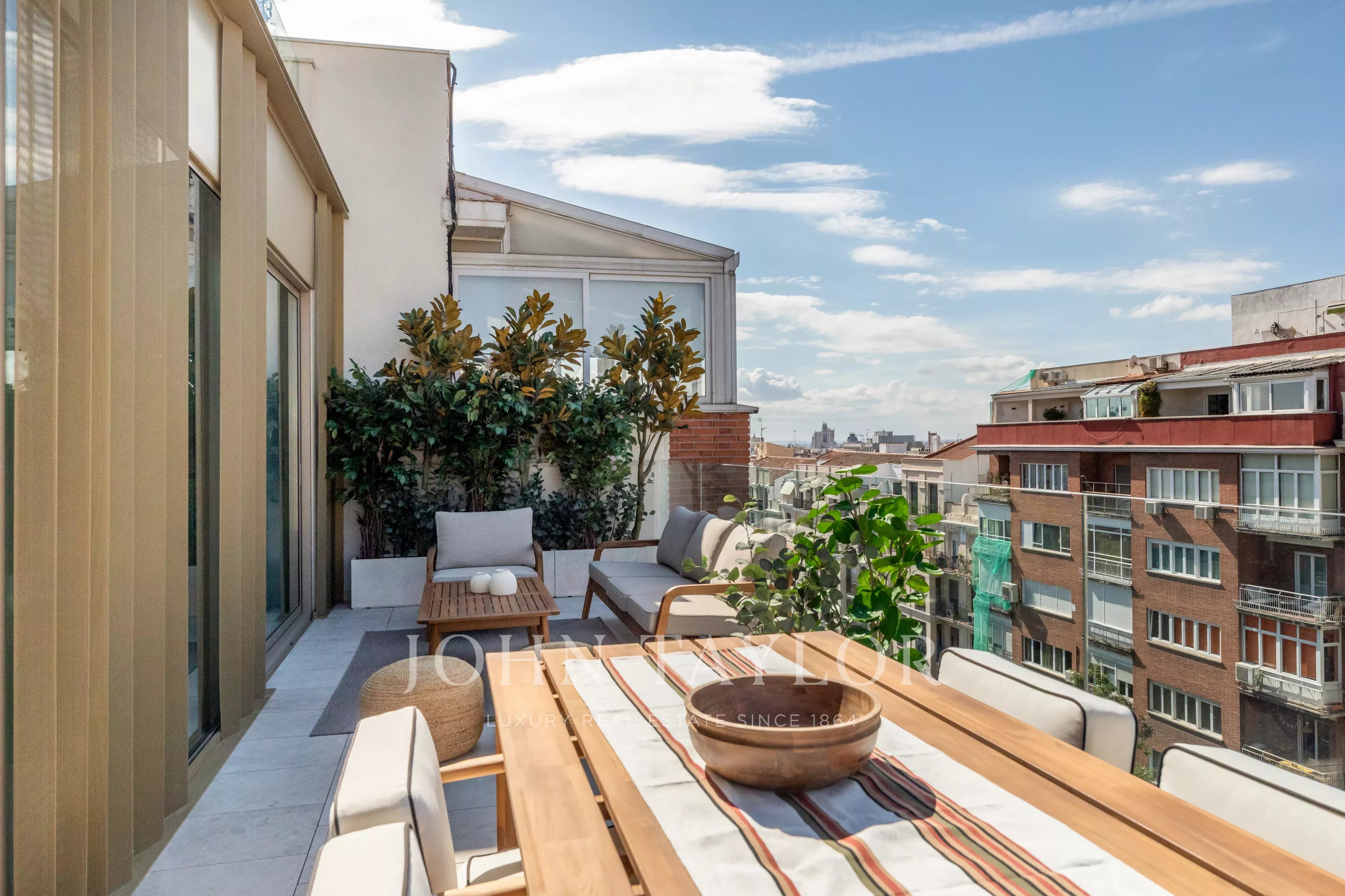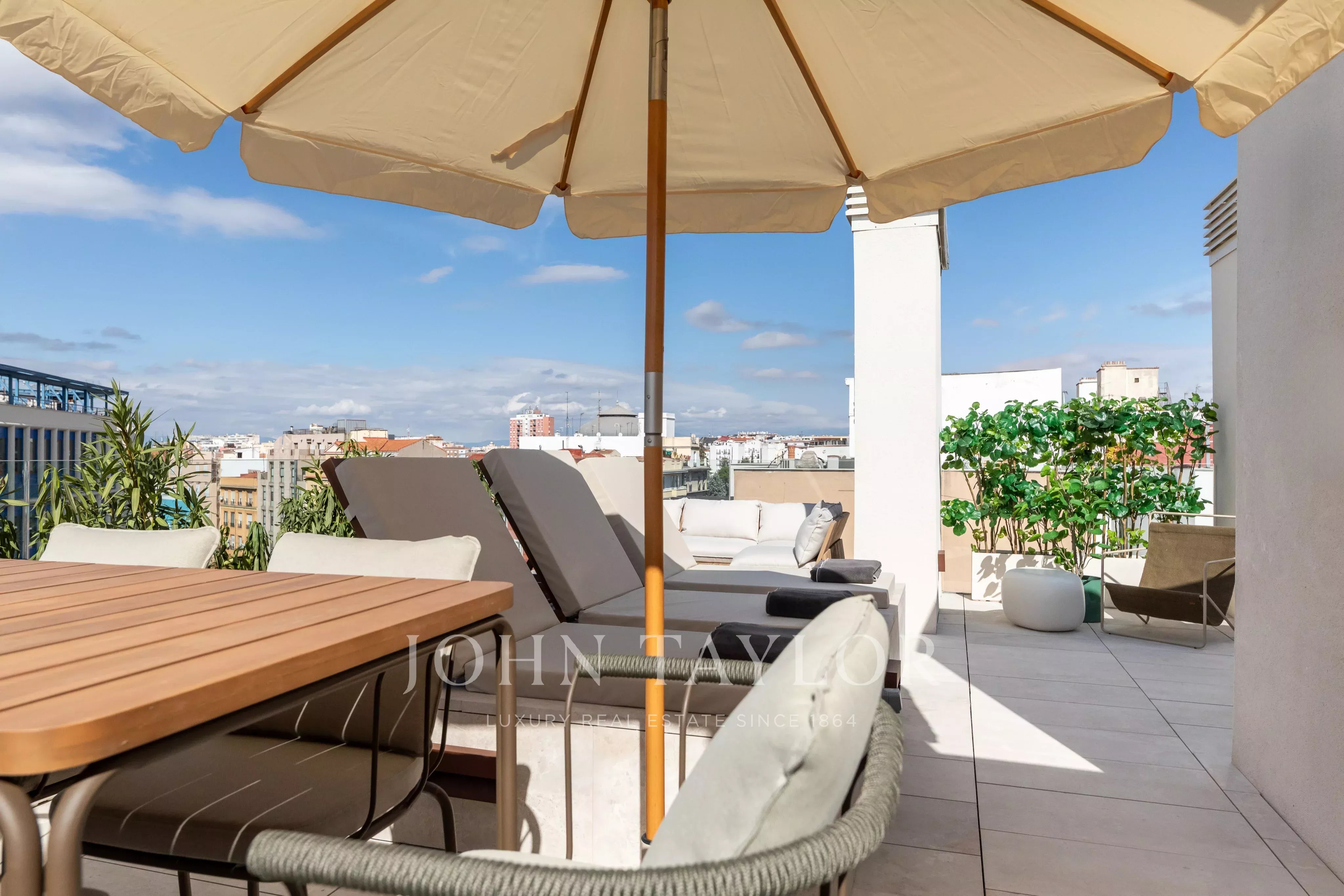 Tout nouveau penthouse en duplex au sixième étage, d'une superficie de 175 m², dans le quartier Chamberí d'Almagro, à Madrid, offre une combinaison parfaite de confort et de technologie moderne.