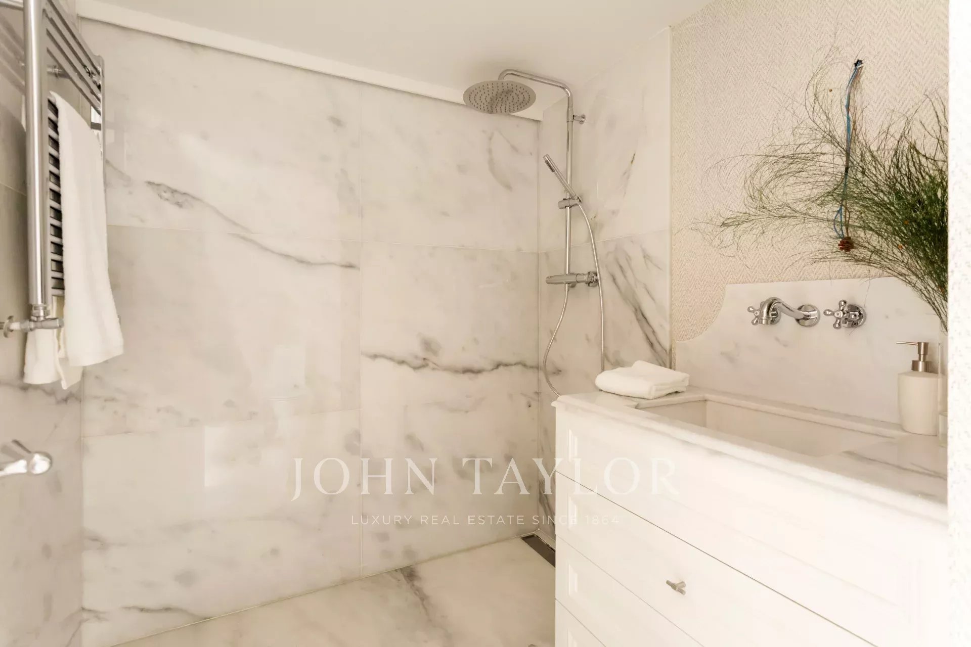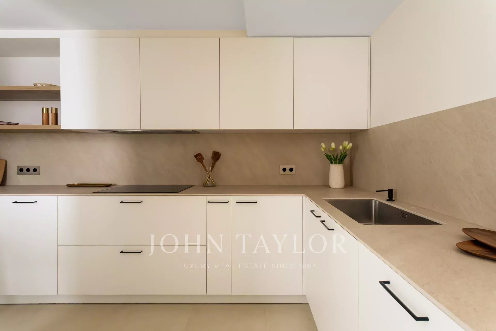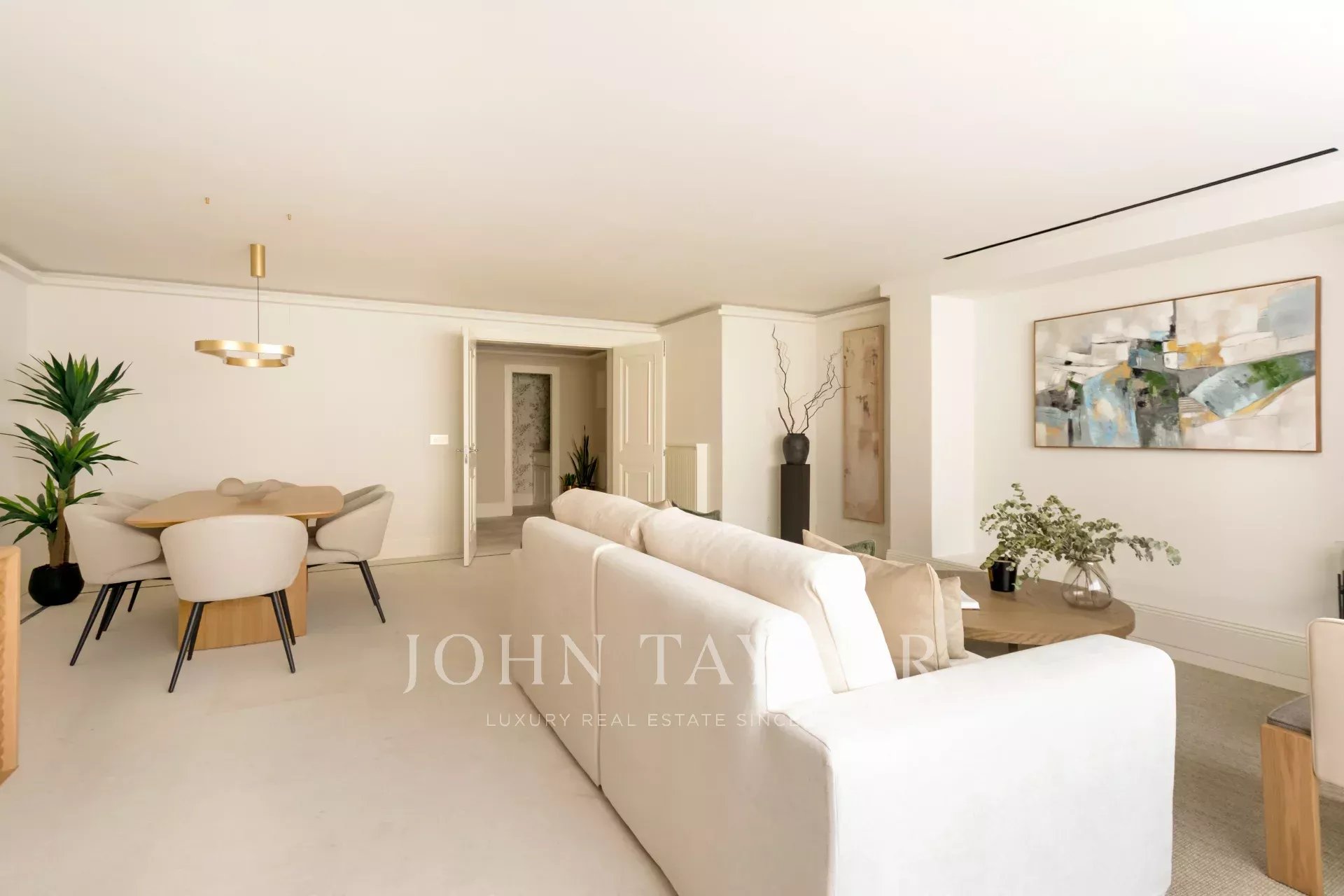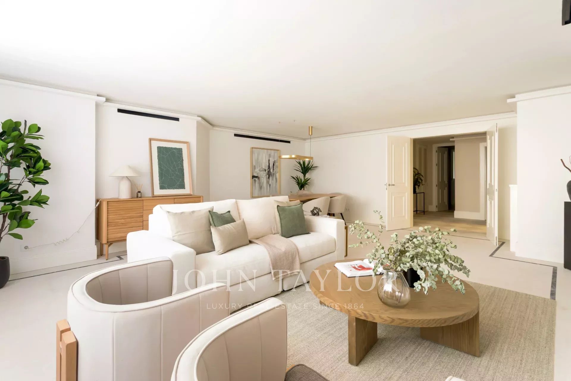 La partie jour se compose d'un salon-salle à manger spacieux et élégant. La cuisine entièrement équipée allie design et fonctionnalité, avec des appareils électroménagers de pointe et des finitions en bois naturel.