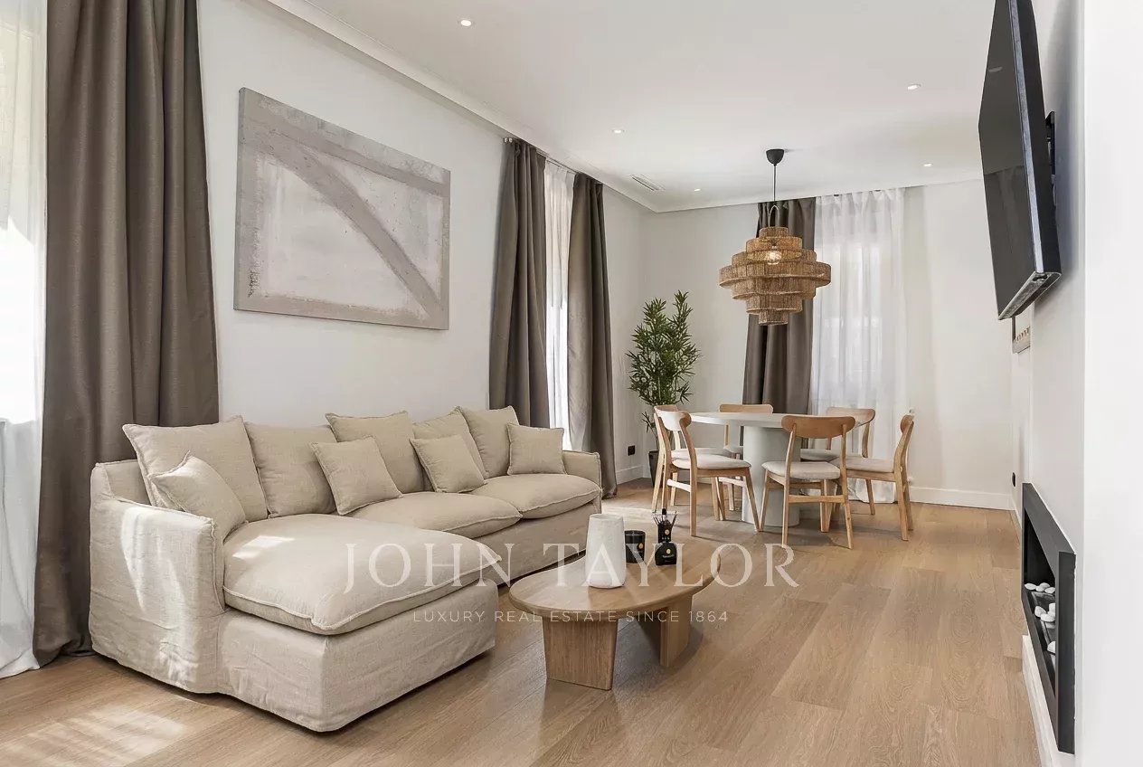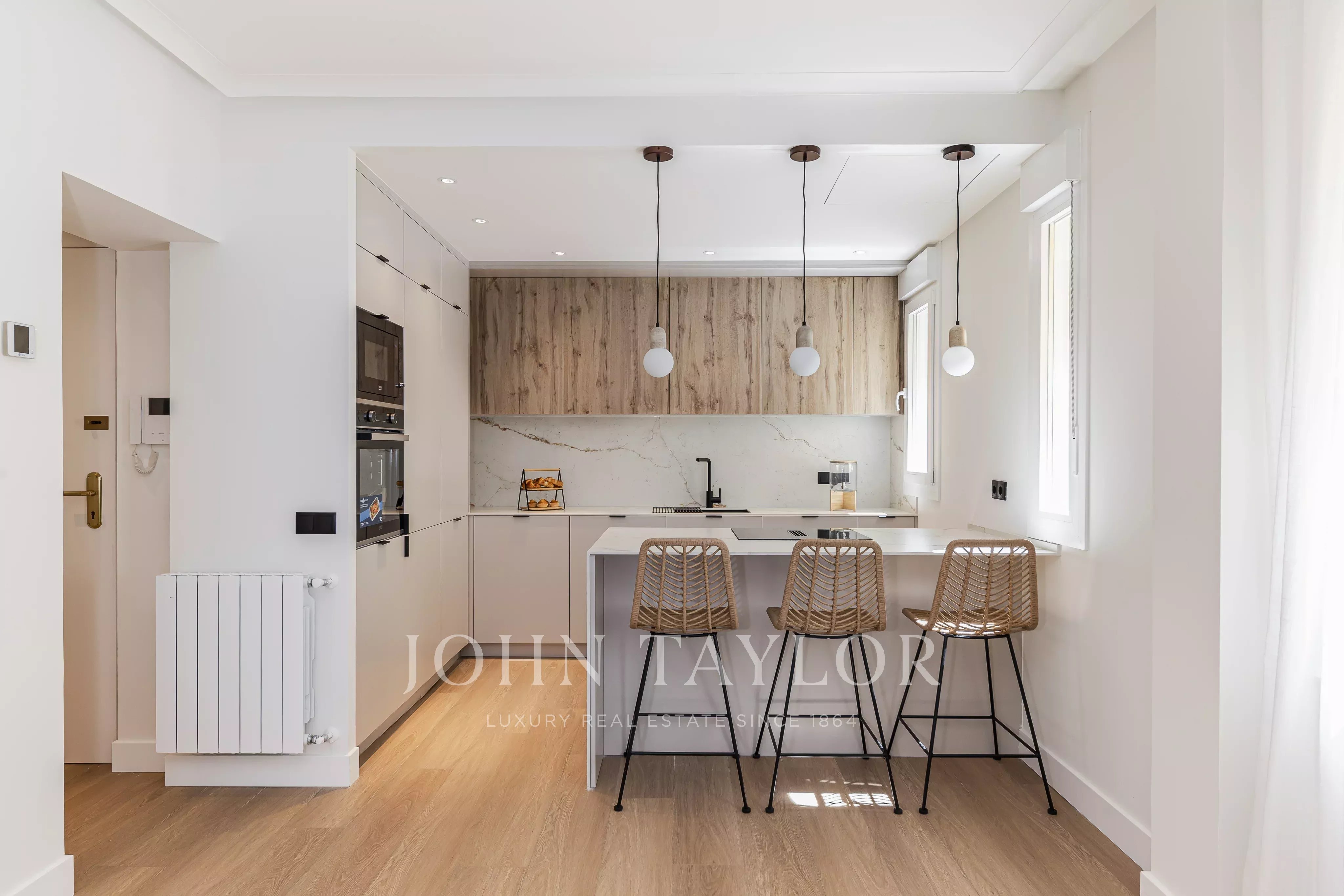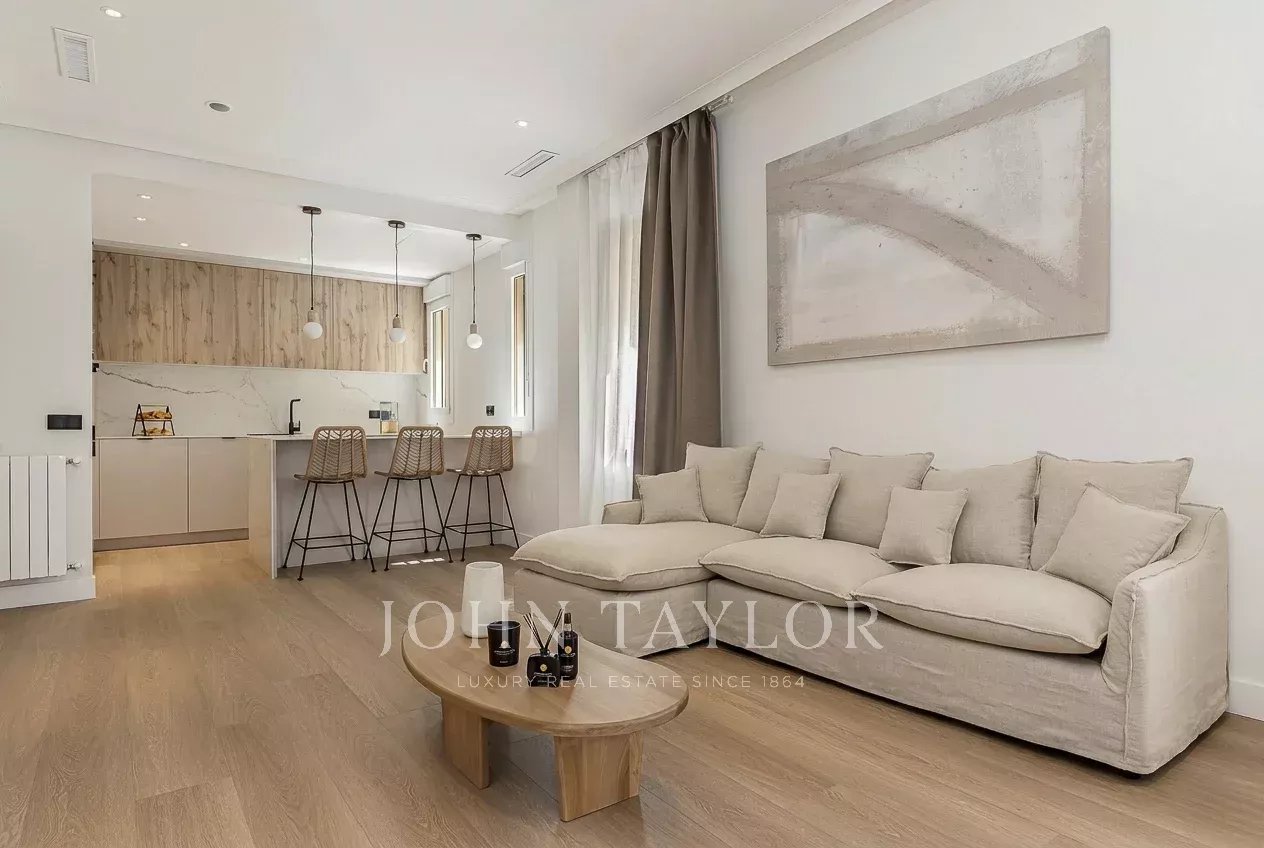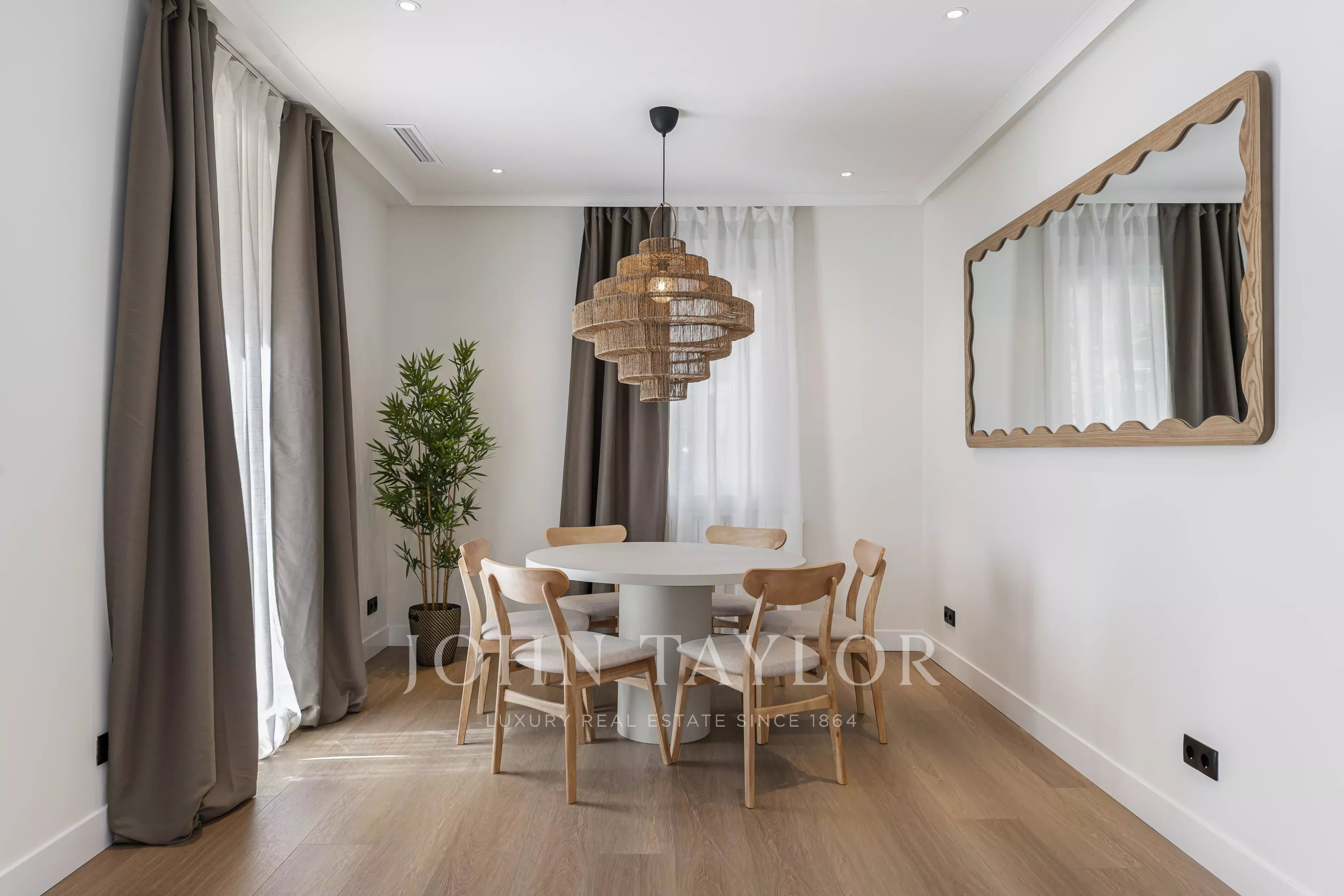 Découvrez ce magnifique appartement de 147,05 m² situé dans le prestigieux quartier de Chamberí Almagro, à Madrid. Il dispose de deux chambres lumineuses, parfaites pour un couple ou une petite famille, ainsi que d’un grand séjour décloisonné ouvert sur une salle à manger élégante et décorée avec goût. Les finitions modernes, le mobilier haut de gamme et la climatisation assurent un confort optimal tout au long de l’année.